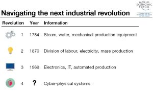 विश्व आर्थिक मंच (WEF) ने चतुर्थ औद्योगिक क्रांति के लिए पाँच नए केंद्रों (Centres for the Fourth Industrial Revolution-C4IR) की स्थापना की घोषणा की है, जिनमें एक भारत के आंध्र प्रदेश में स्थापित किया जाएगा।