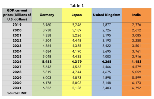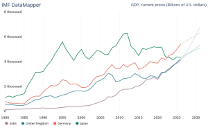 अंतरराष्ट्रीय मुद्रा कोष (IMF) द्वारा जारी नवीनतम वर्ल्ड इकोनॉमिक आउटलुक (WEO) के अनुसार, भारतीय अर्थव्यवस्था विश्व में छठे सबसे बड़े स्थान पर खिसक गई है, जबकि जापान और यूनाइटेड किंगडम (UK) ने इसे पीछे छोड़ दिया है।