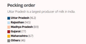 पिछले दस वर्षों में देश में दुग्ध उत्पादन में 63% से अधिक की वृद्धि हुई है, जो 146 मिलियन टन से बढ़कर 239 मिलियन टन से अधिक हो गया है।