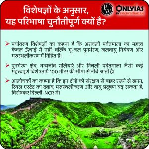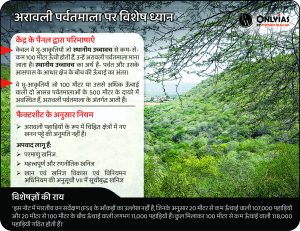हाल ही में केंद्र ने अरावली पहाड़ियों की परिभाषा में बदलाव करने से इनकार किया, जिसमें सर्वोच्च न्यायालय द्वारा नए खनन पट्टों पर रोक लगाने और एक व्यापक प्रबंधन योजना को अंतिम रूप दिए जाने तक मजबूत पारिस्थितिकी संरक्षण सुनिश्चित करने हेतु न्यायालय द्वारा अनुमोदित ढाँचे का हवाला दिया गया।