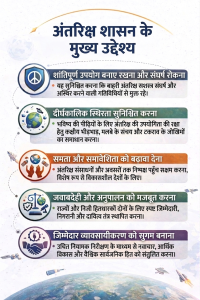 अंतरिक्ष शासन का ढाँचा कानूनी मानदंडों, संस्थागत तंत्रों, नियामक प्रणालियों और उभरते शासन उपकरणों की एक बहुस्तरीय वास्तुकला से बना है, जो राज्य-केंद्रित संधि व्यवस्था से एक खंडित, बहु-हितधारक प्रणाली में विकसित हो रहा है।