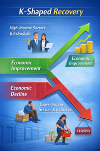 भारत 2025-26 में 7.6% की अनुमानित वृद्धि दर के साथ विश्व की सबसे तेज़ी से बढ़ती प्रमुख अर्थव्यवस्था है, फिर भी यह K-आकार की आर्थिक पुनर्प्राप्ति का अनुभव कर रहा है।