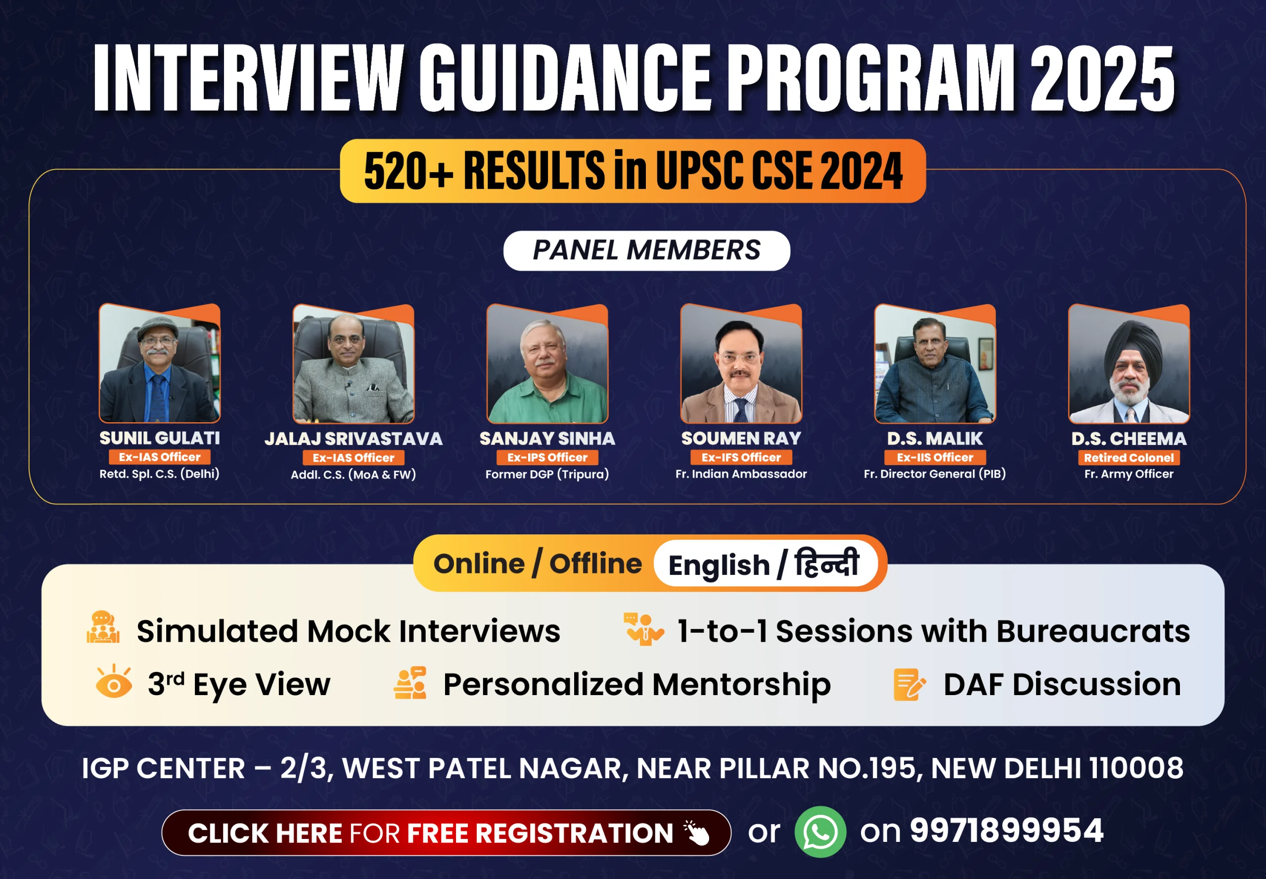 PWOnlyIAS is conducting an ‘Interview Guidance Program (IGP)’ for all aspirants who have cleared the UPSC CSE (Mains) Examination, 2025.