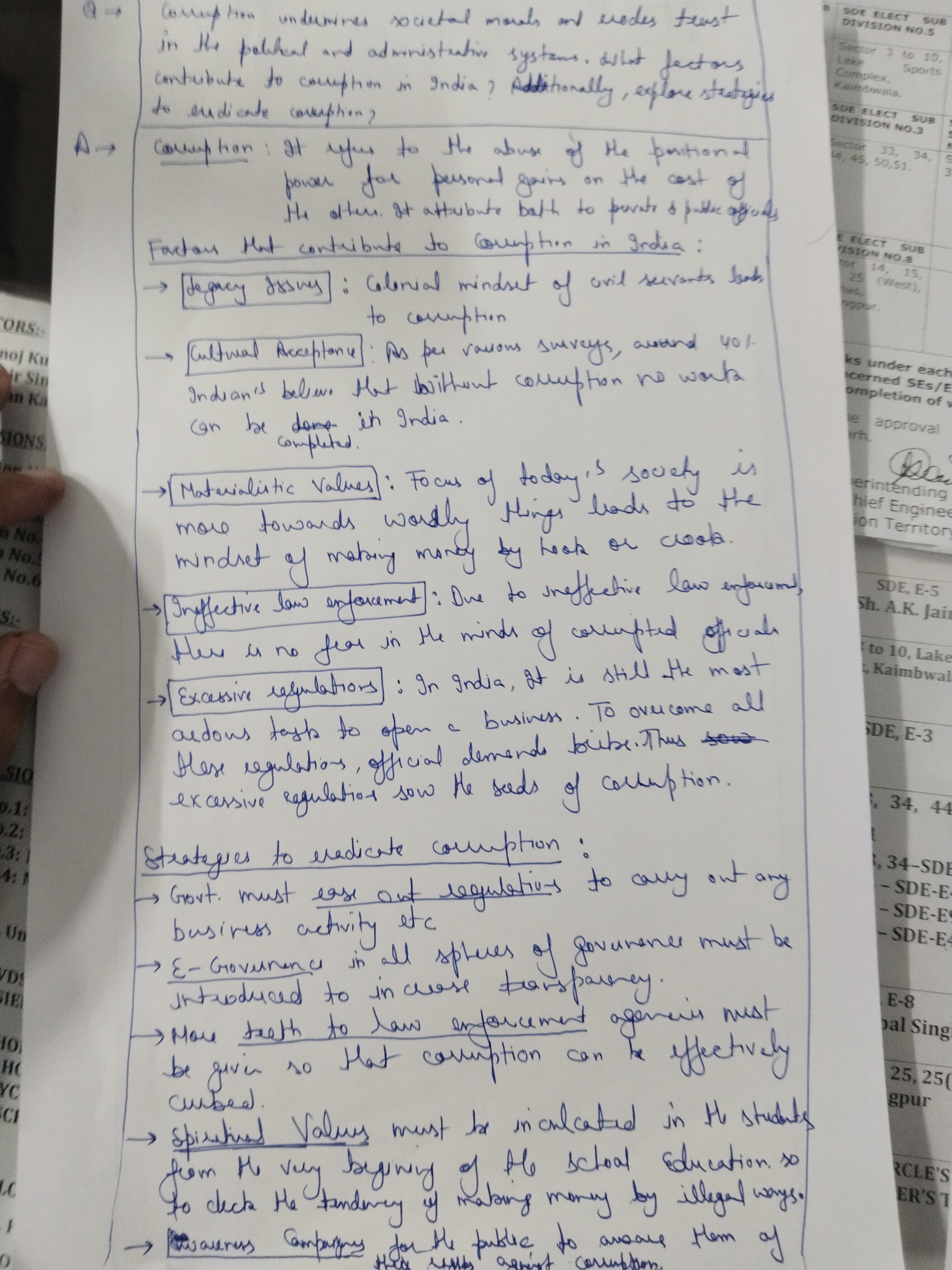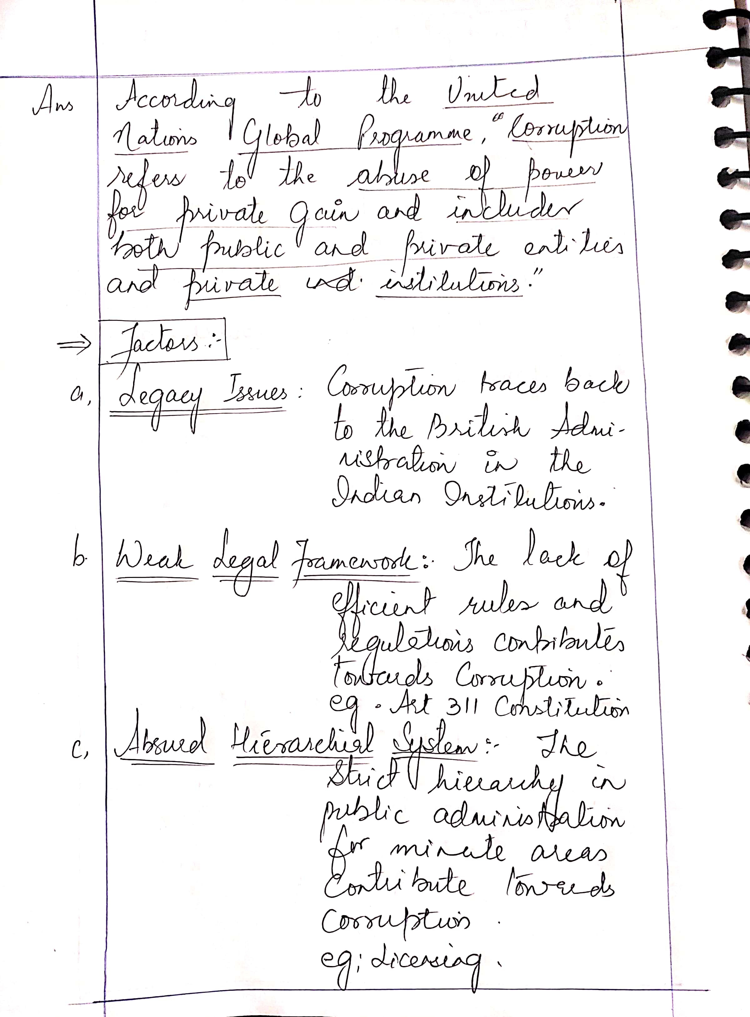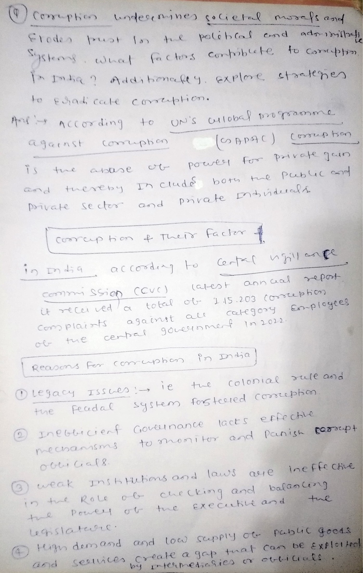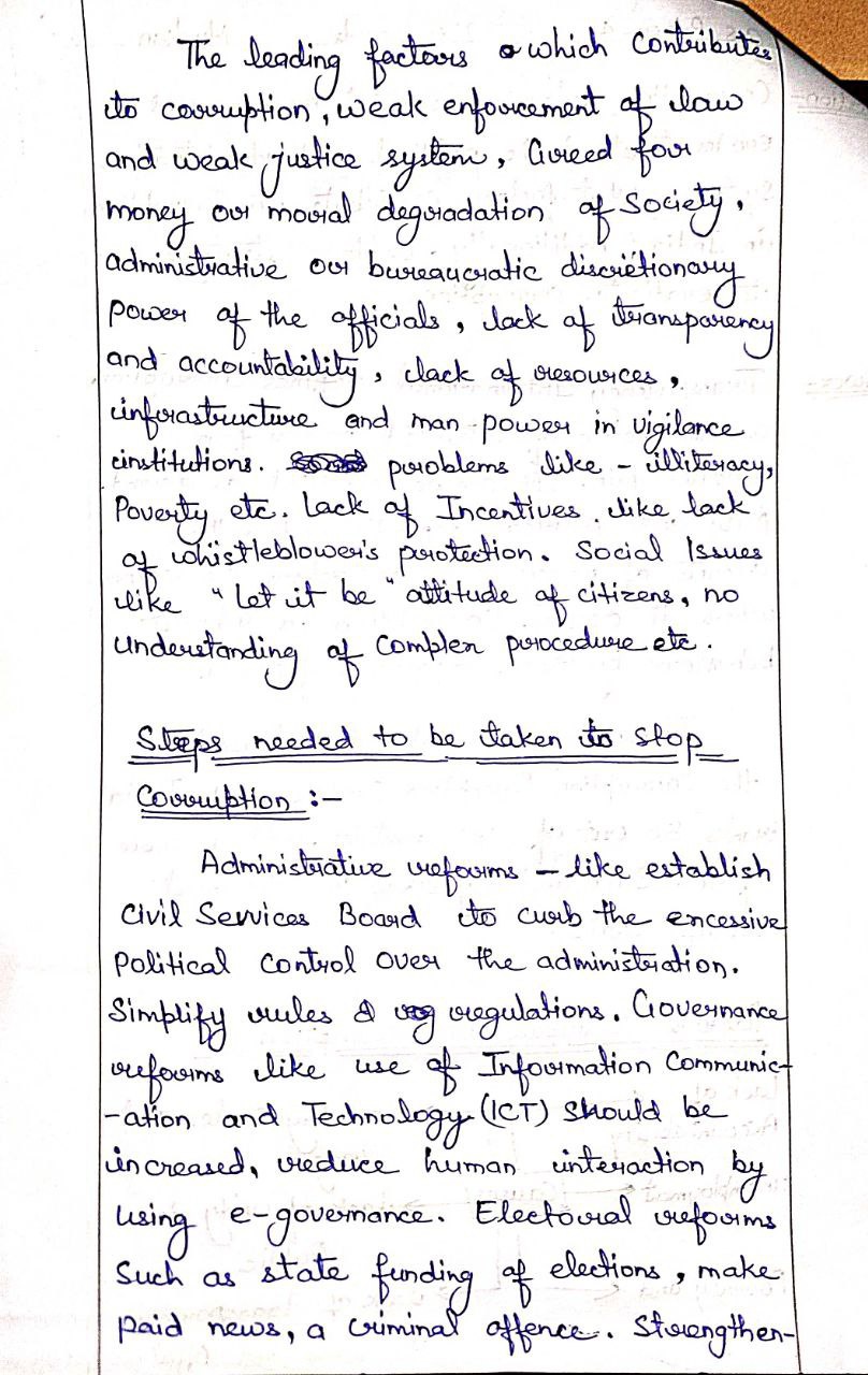 - Discuss the factors contributing to corruption in India.