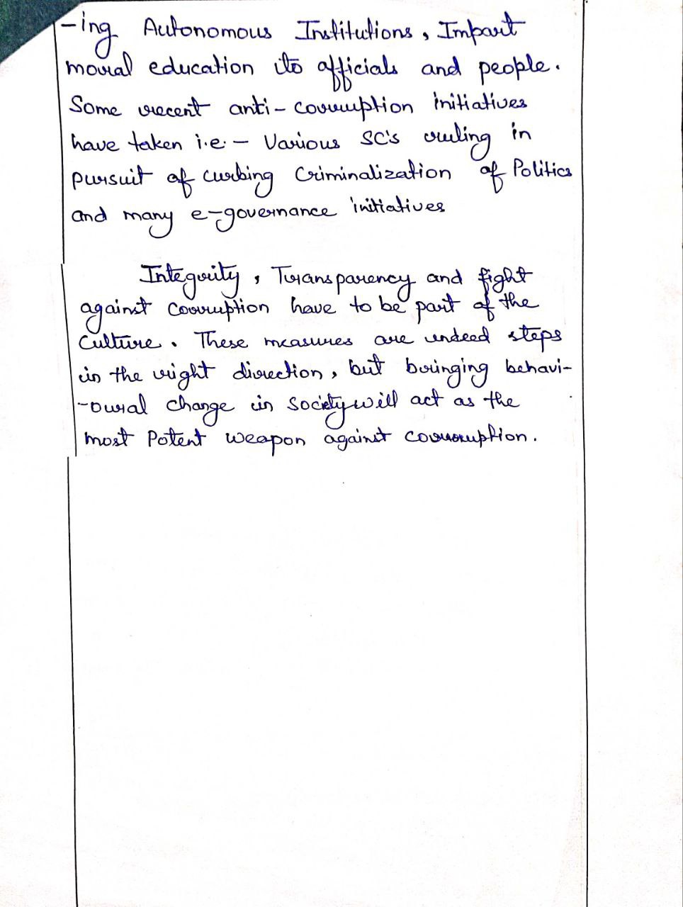 - Weak and ineffective legal and institutional frameworks have contributed to the rampant corruption in India.
