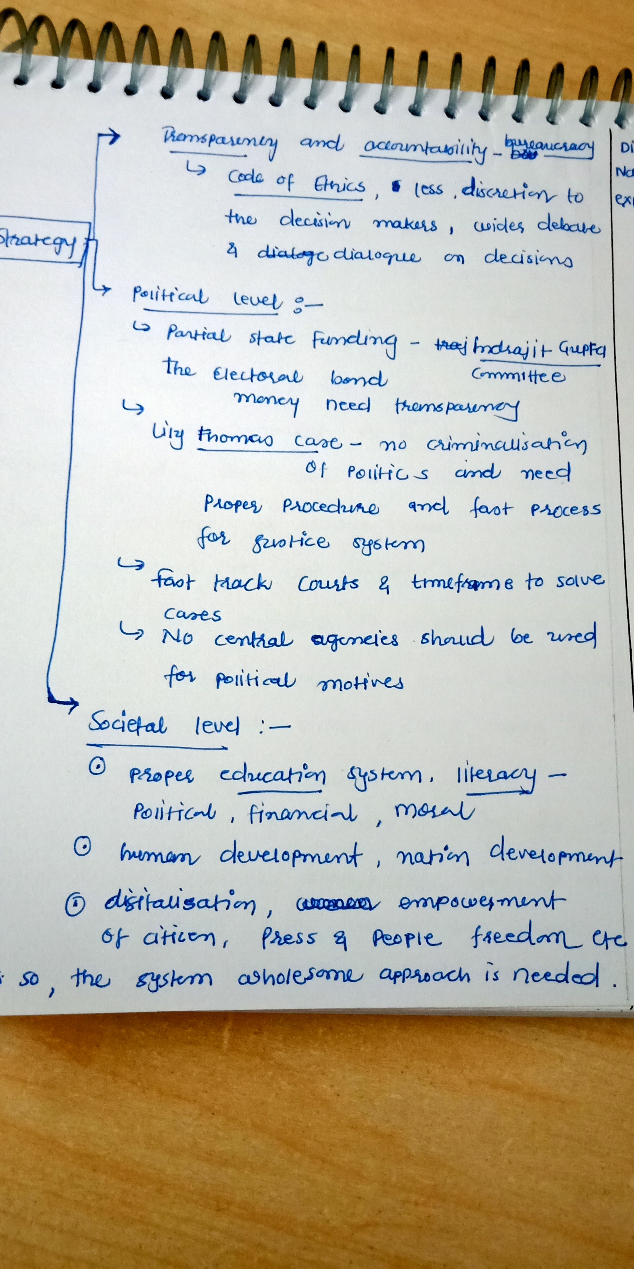 - Implementing reforms to reduce the influence of money and muscle power in politics, and ensuring transparency in political funding.