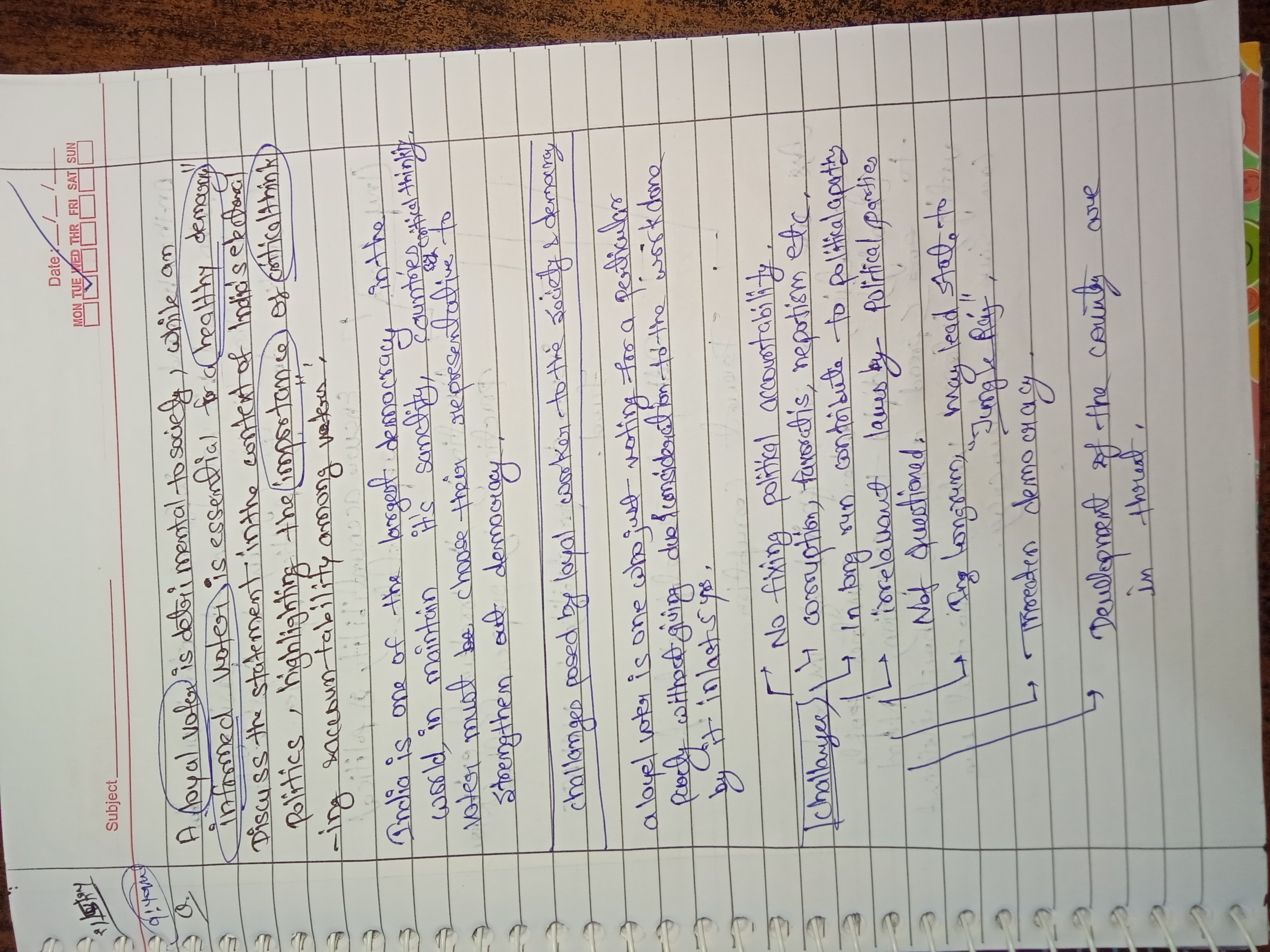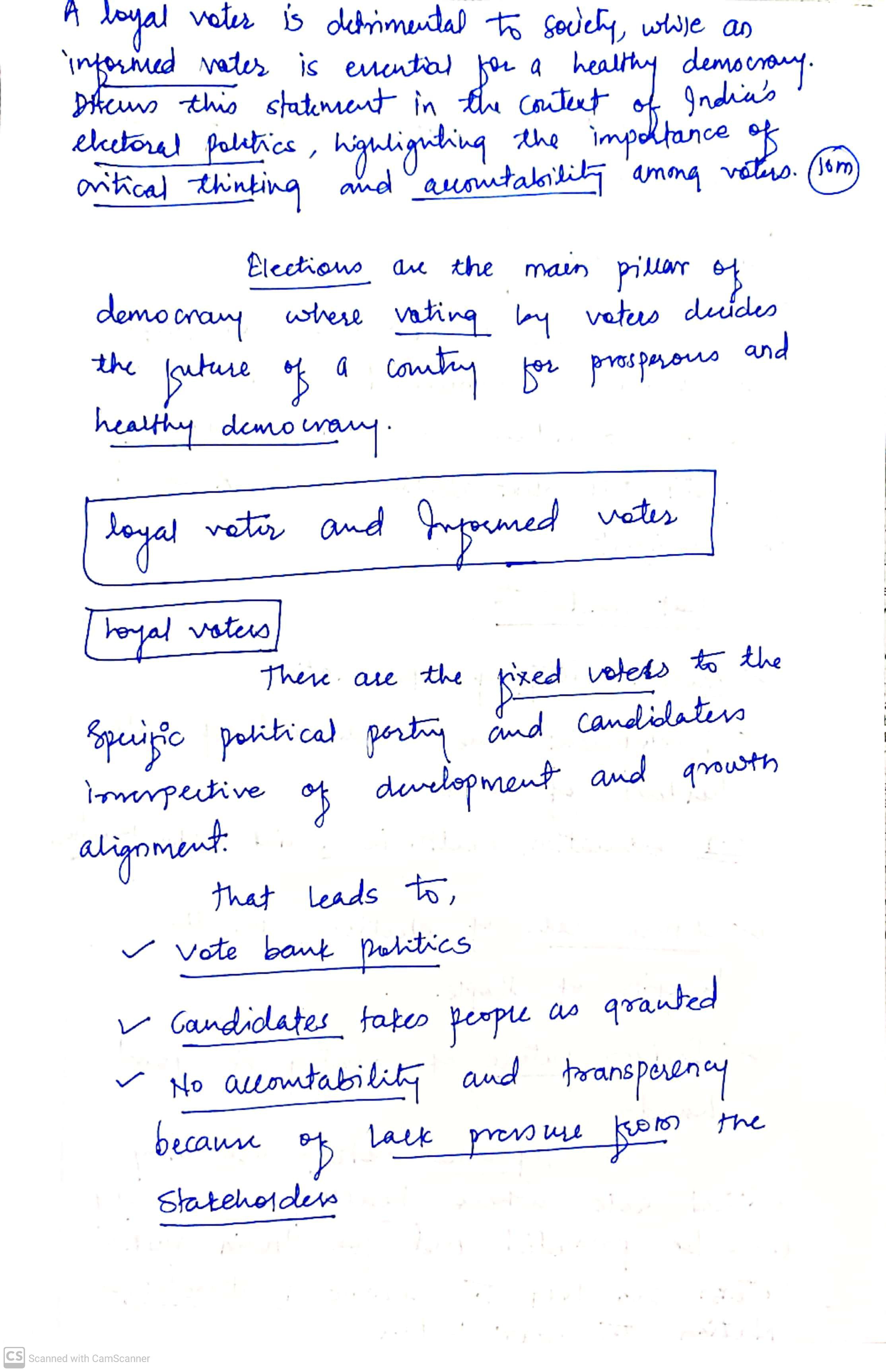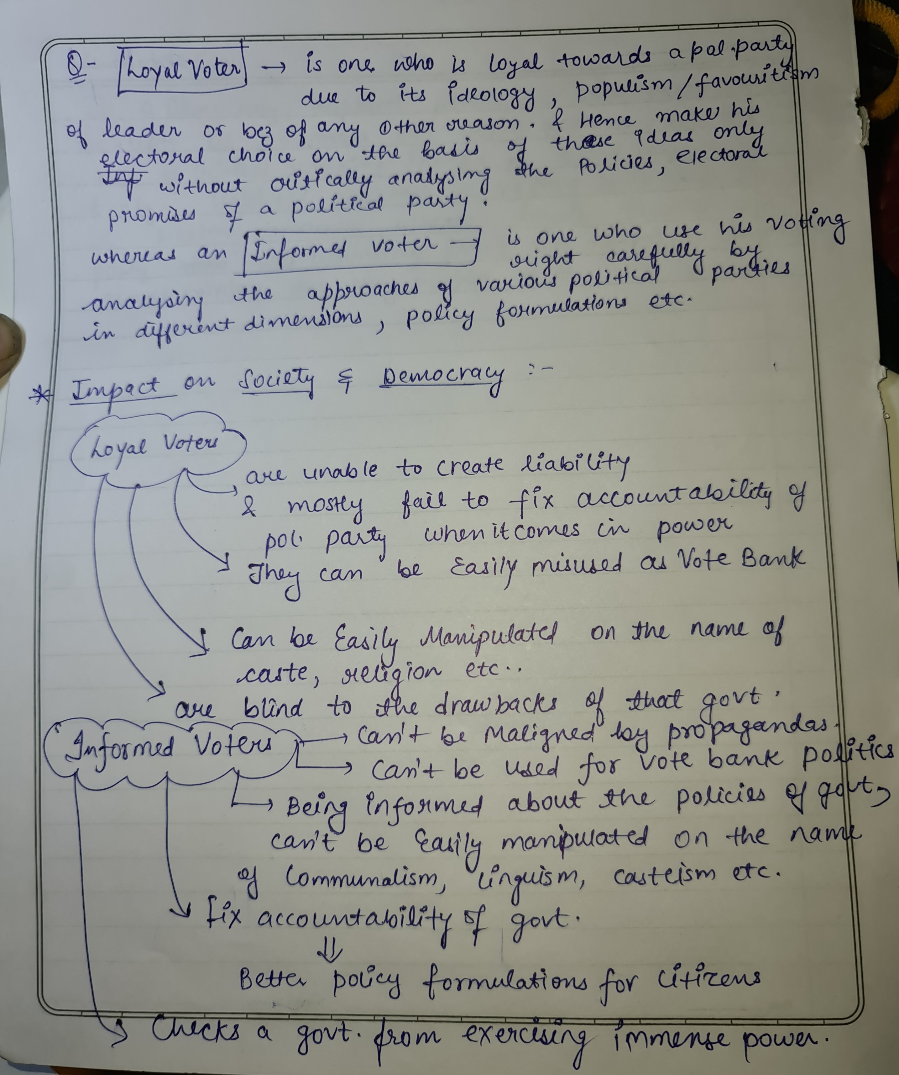 - Introduction: Explain the role of voters in democracy. Differentiate between loyal and informed voters.