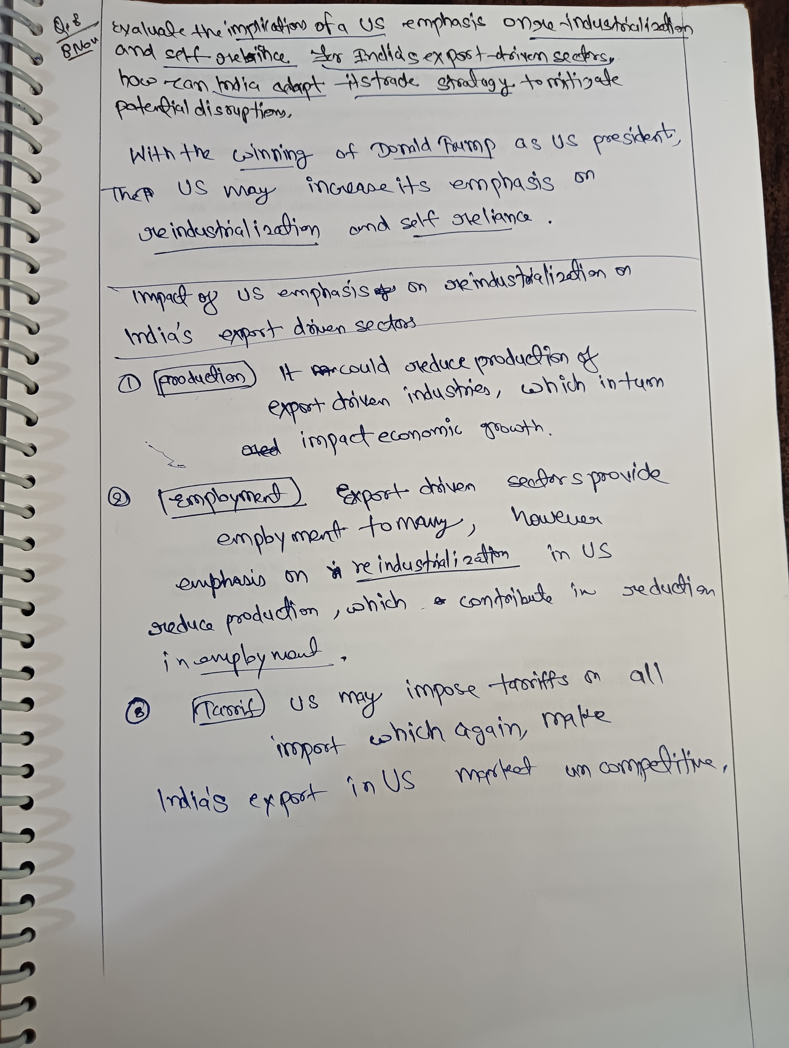- Evaluate the impact of a US emphasis on self -reliance for India’s export-driven sectors.