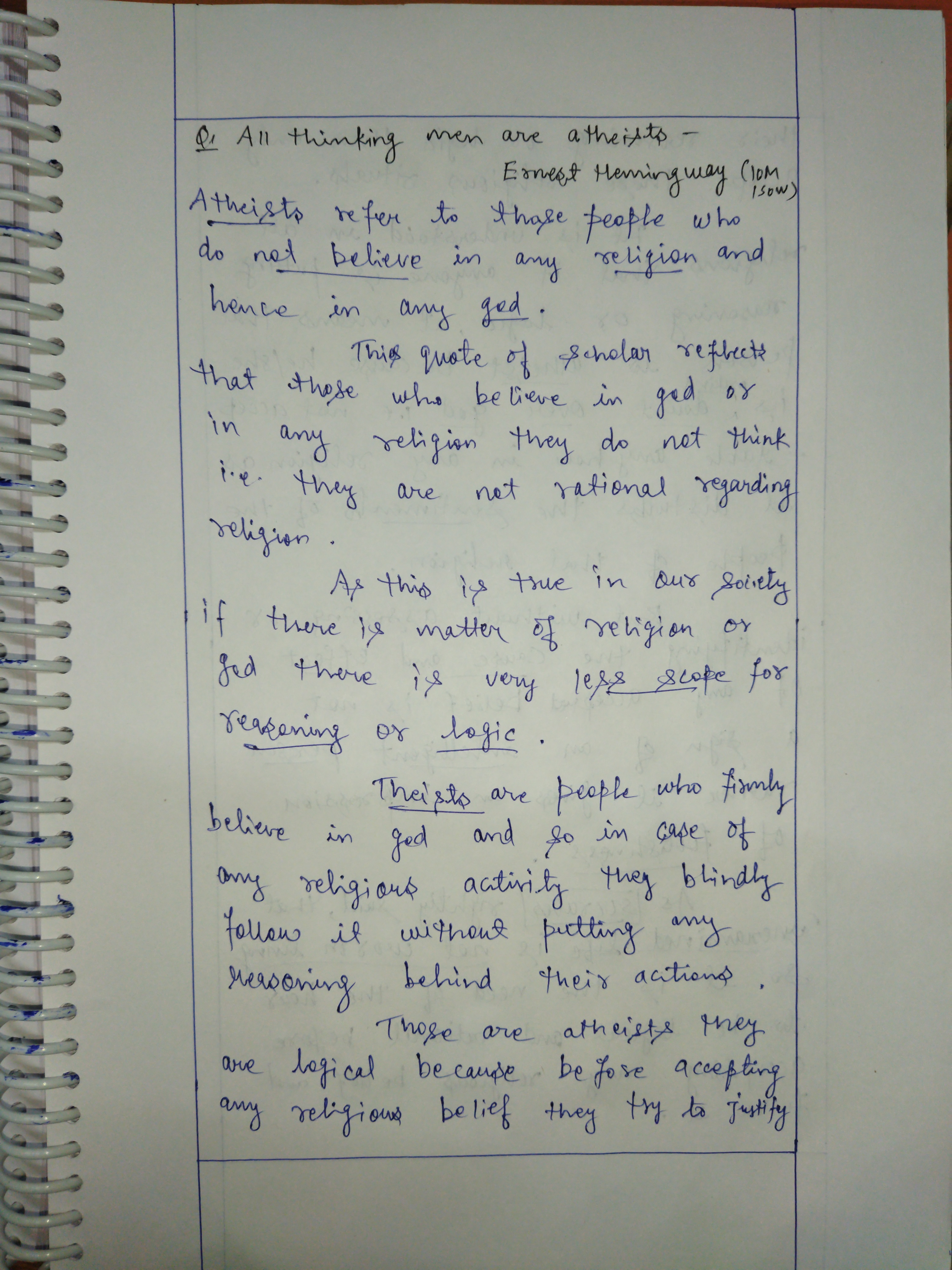 - Introduction: Begin by contextualizing Ernest Hemingway’s statement, highlighting its philosophical implications and the apparent dichotomy it suggests between intellectualism and religious belief.