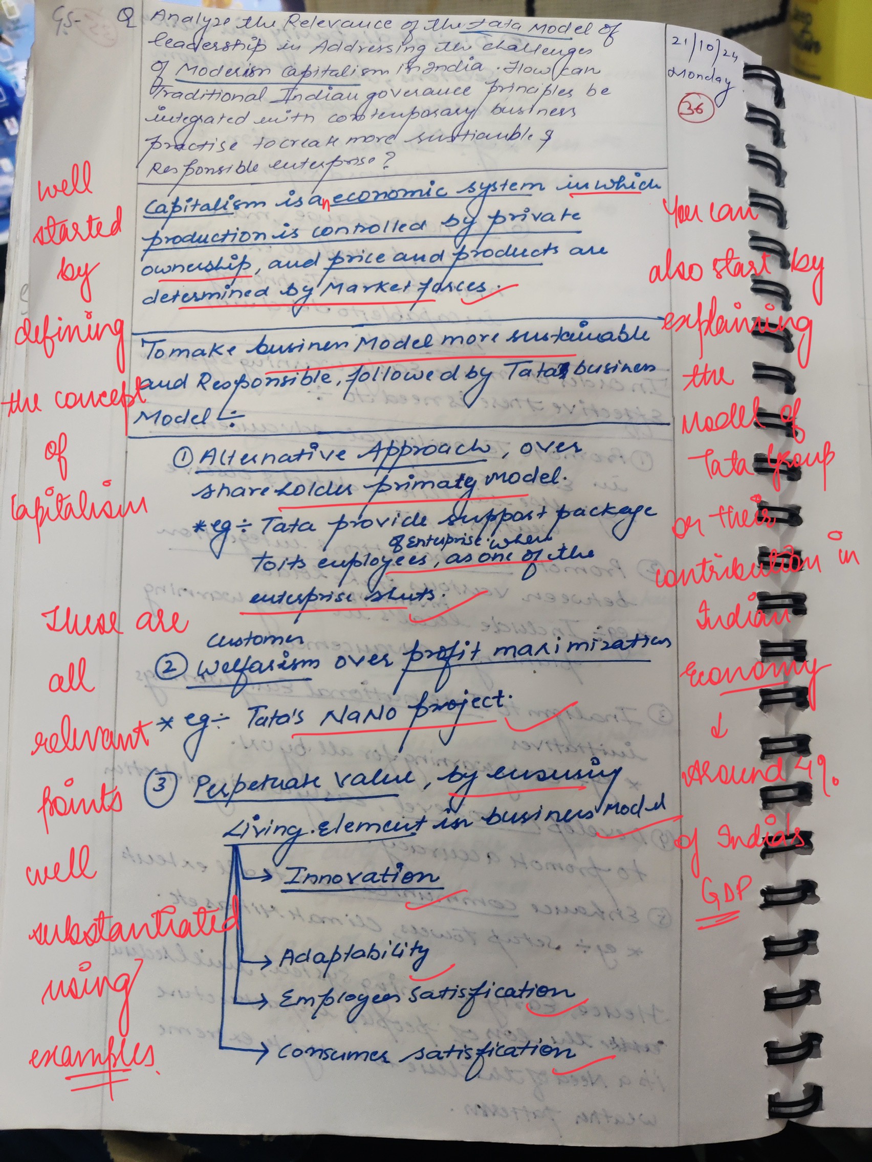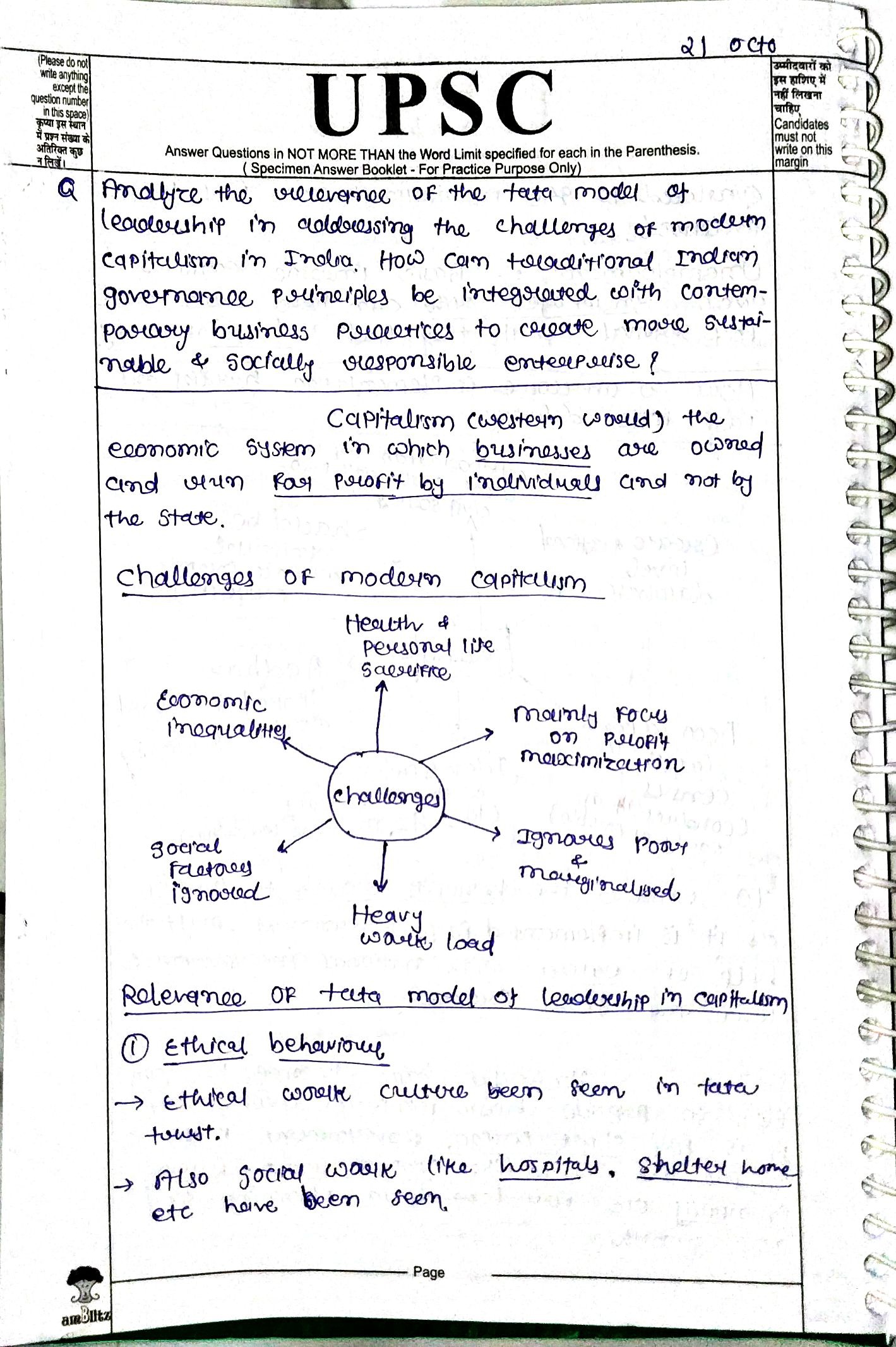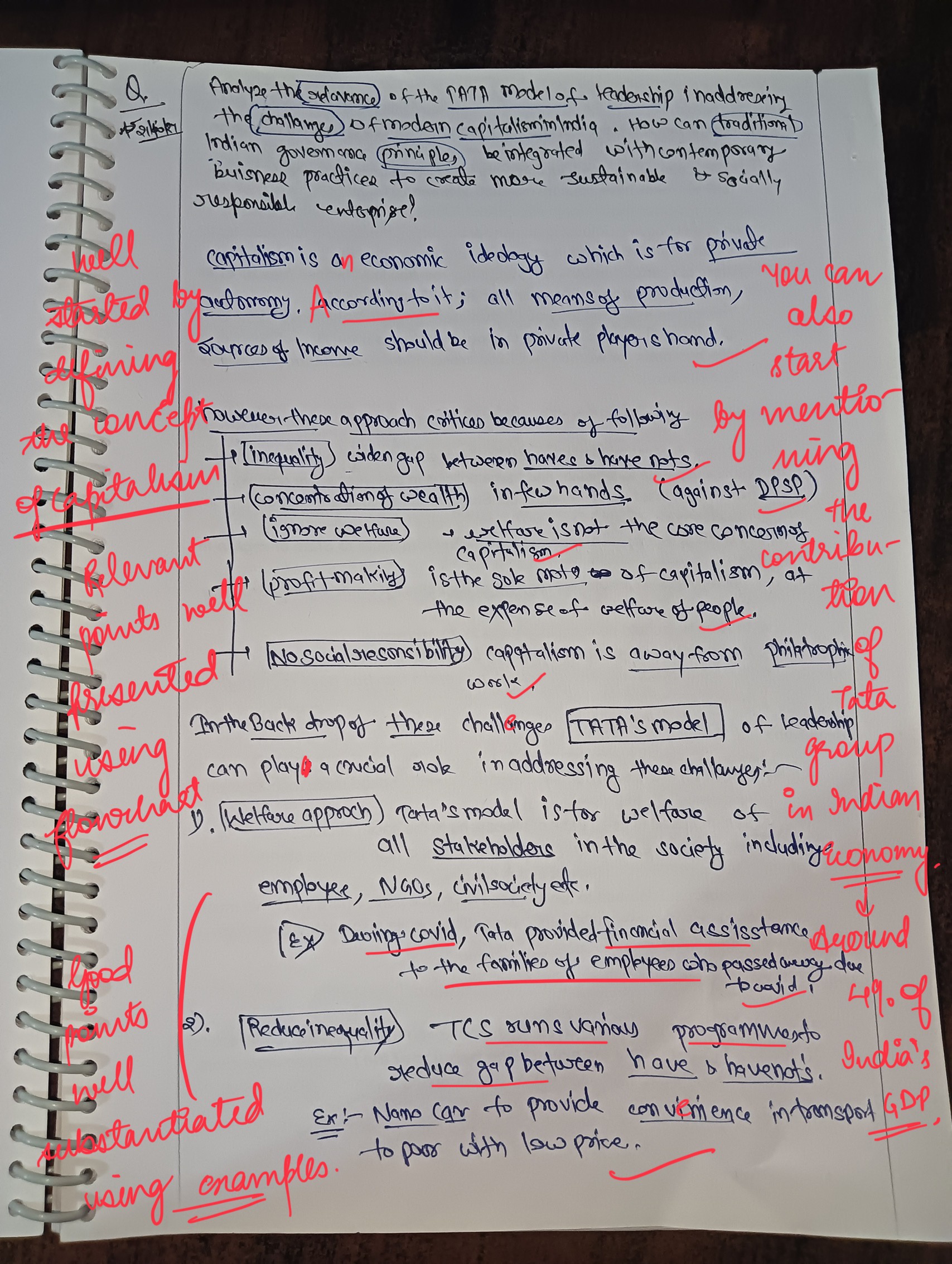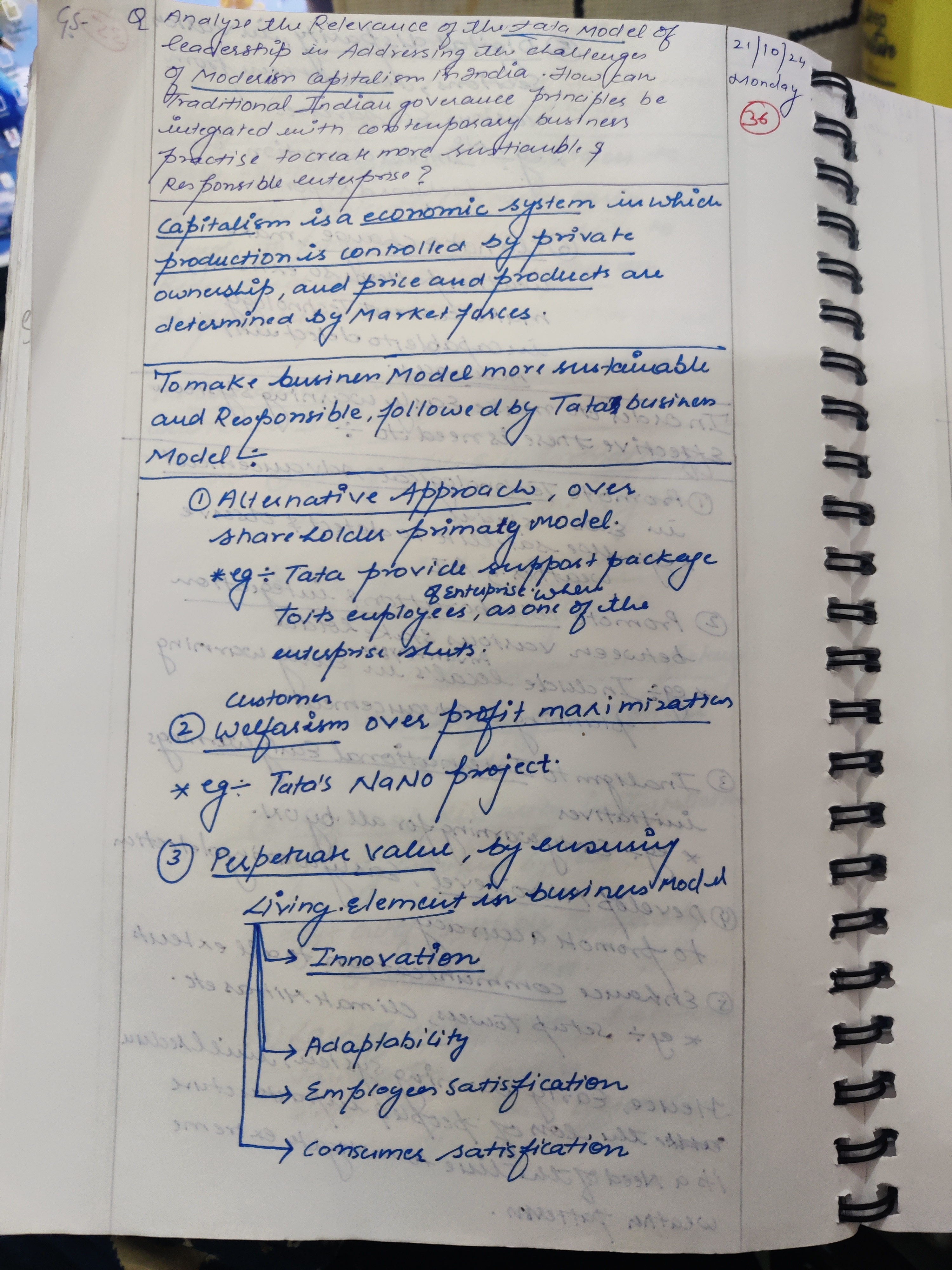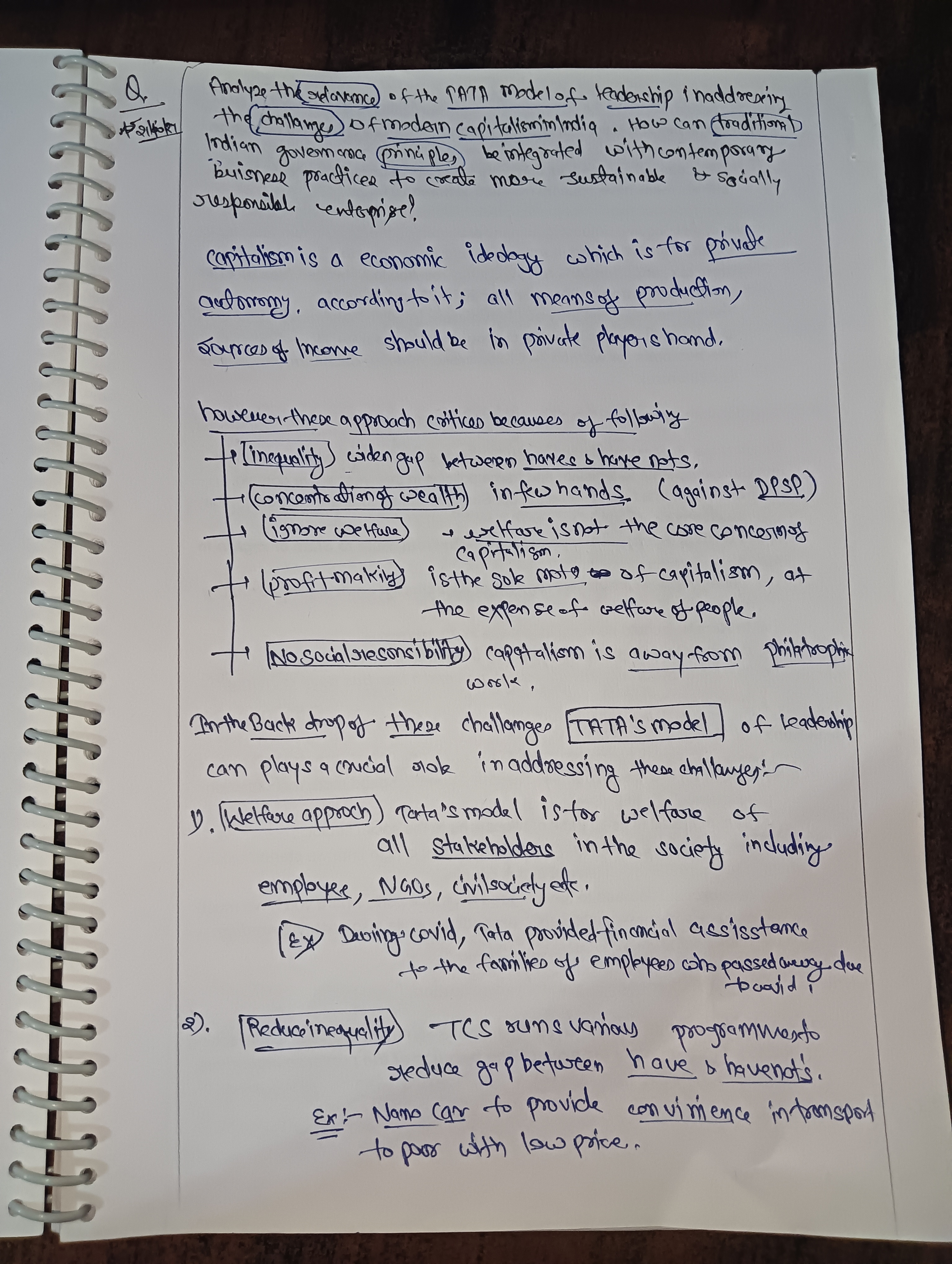 - Analyse the relevance of the Tata model of leadership in addressing the challenges of modern capitalism in India.