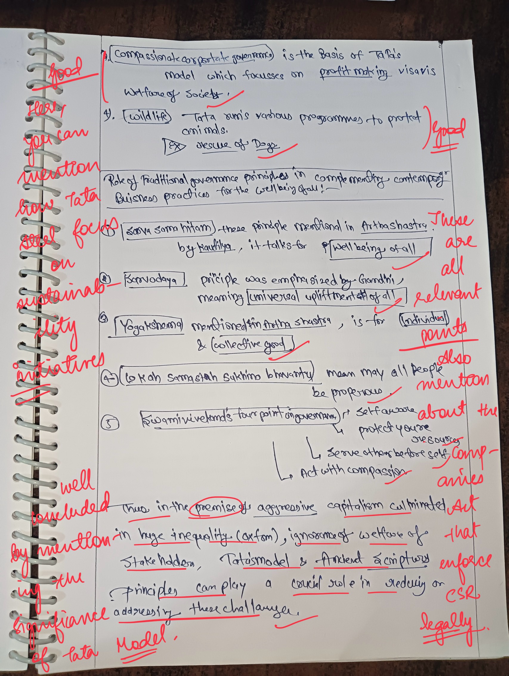 - Discuss how traditional Indian governance principles can be integrated with contemporary business practices to create more sustainable and socially responsible enterprises.