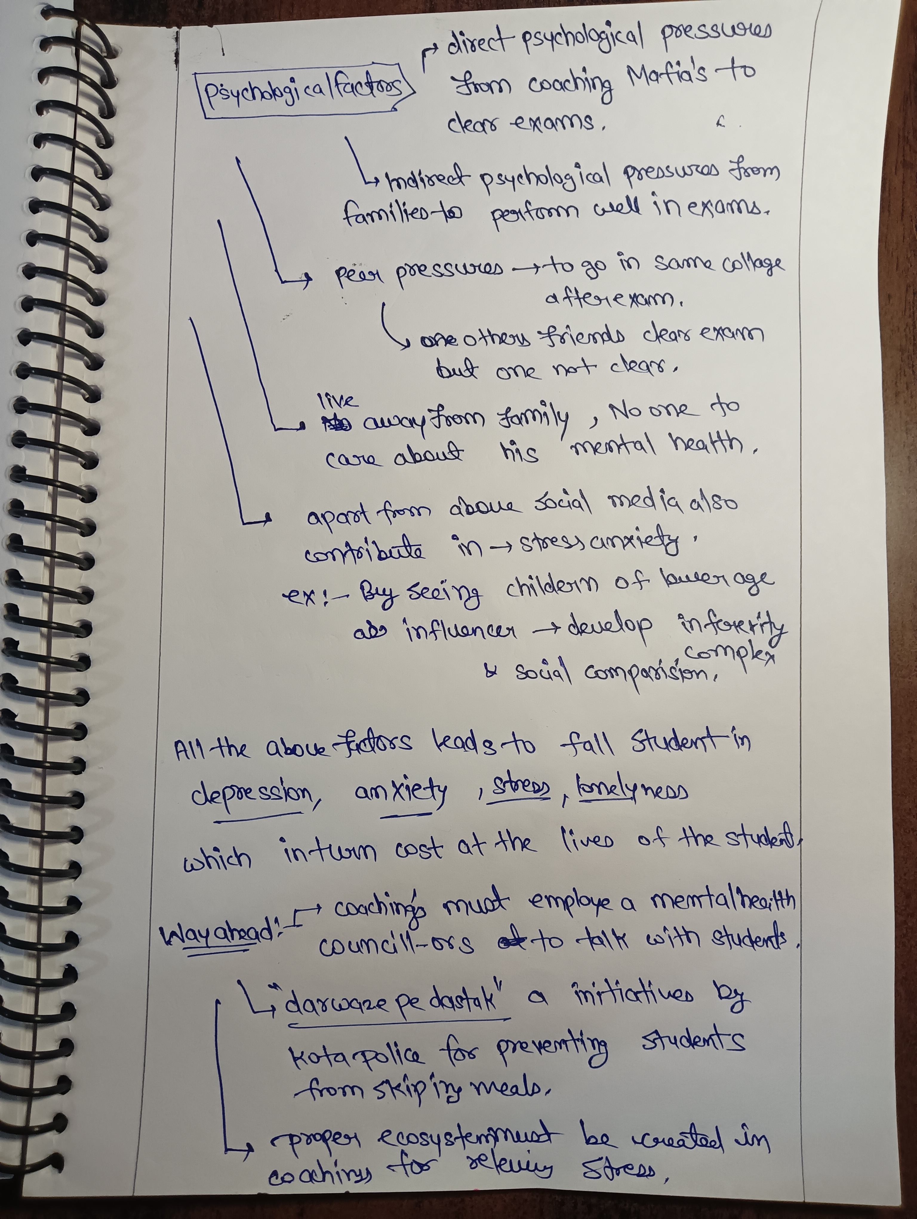 - Mention the mental health issues like stress, anxiety, and isolation students face due to academic pressures and lack of support.