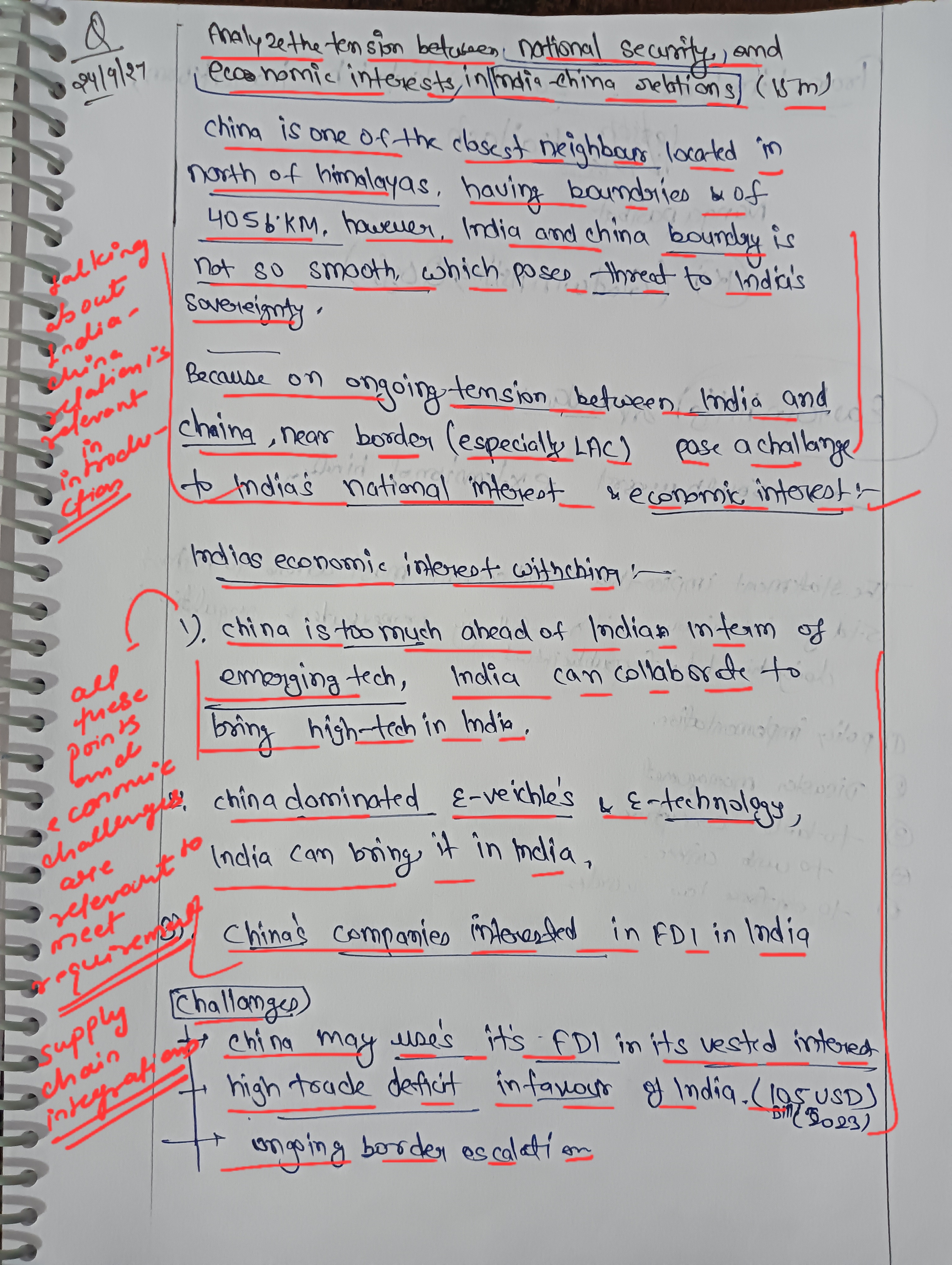 India-China relations are shaped by both national security concerns and economic interests, creating a complex dynamic between cooperation and competition. While trade ties have expanded significantly, the unresolved border disputes, military build-ups, and strategic mistrust present significant challenges. Balancing economic engagement with national security remains a crucial issue for India, as the two nations continue to navigate geopolitical tensions alongside economic interdependence.