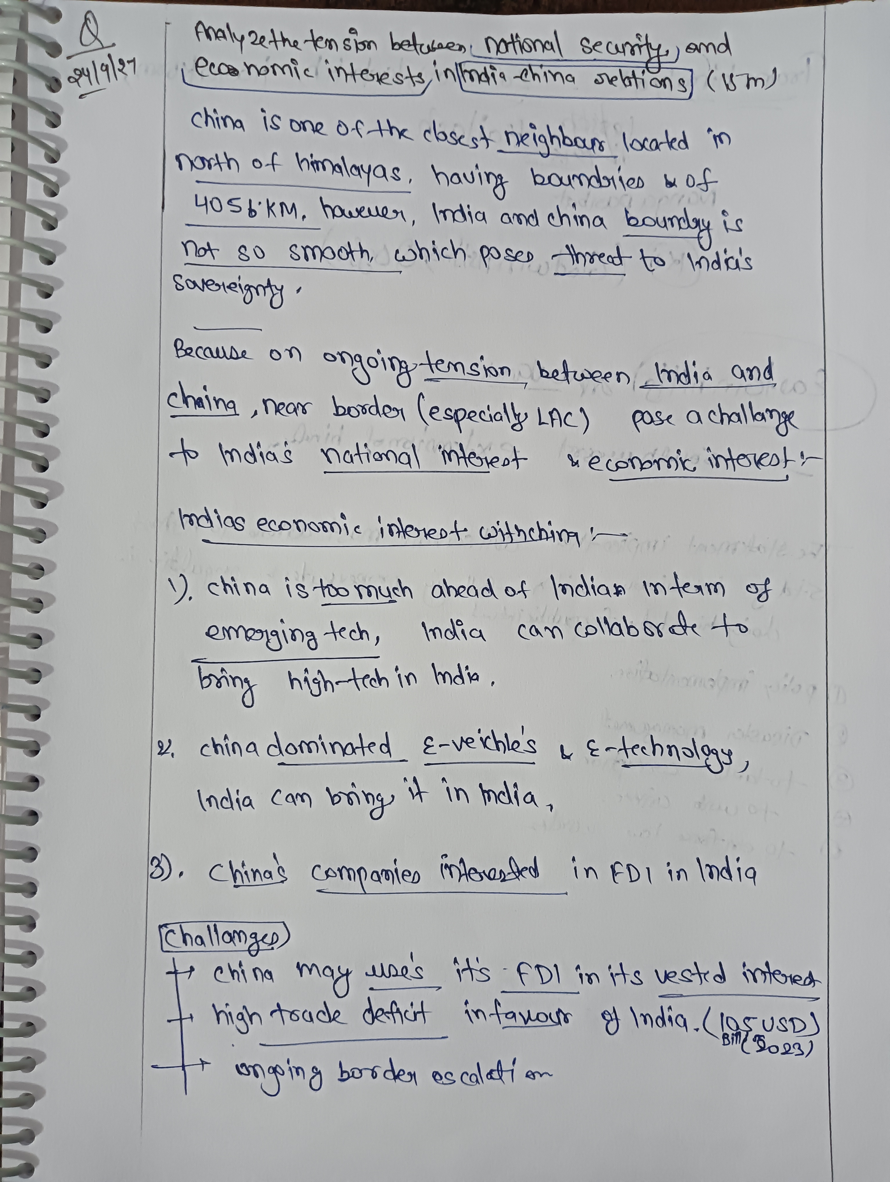 For example: The banning of Chinese apps like TikTok and restrictions on Huawei expansion reflect India’s cybersecurity concerns.