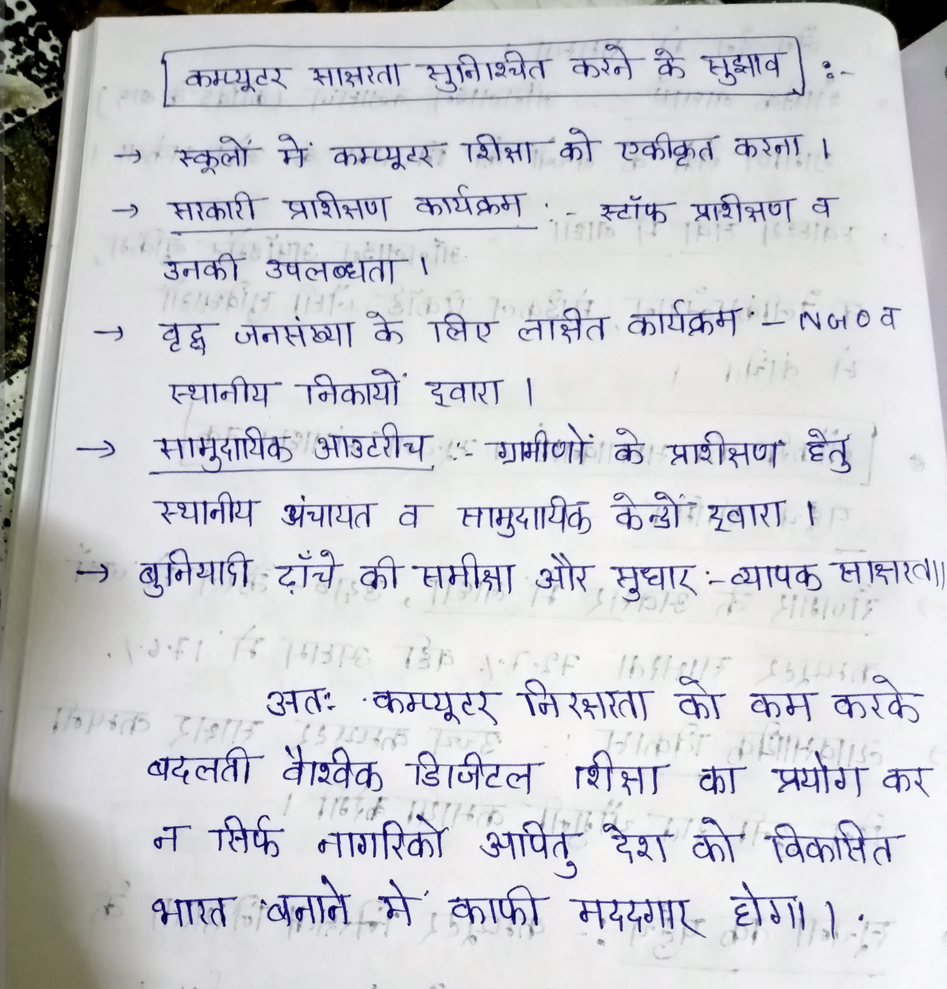 - कंप्यूटर साक्षरता सुनिश्चित करने के उपाय सुझाएँ।