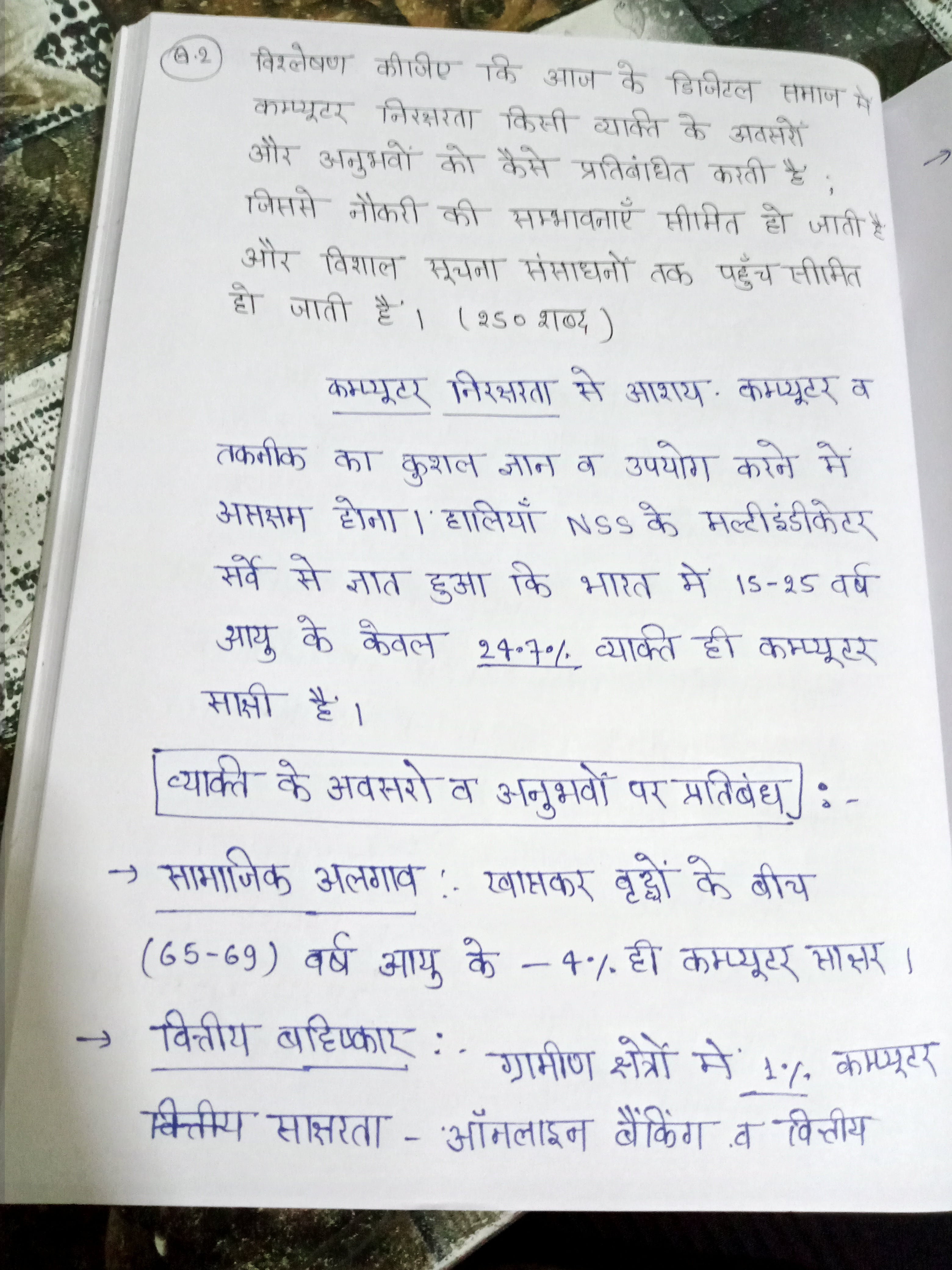 - कंप्यूटर निरक्षरता के कारण व्यक्ति के अवसरों और अनुभवों पर पड़ने वाले प्रतिबंधों का विश्लेषण कीजिए।