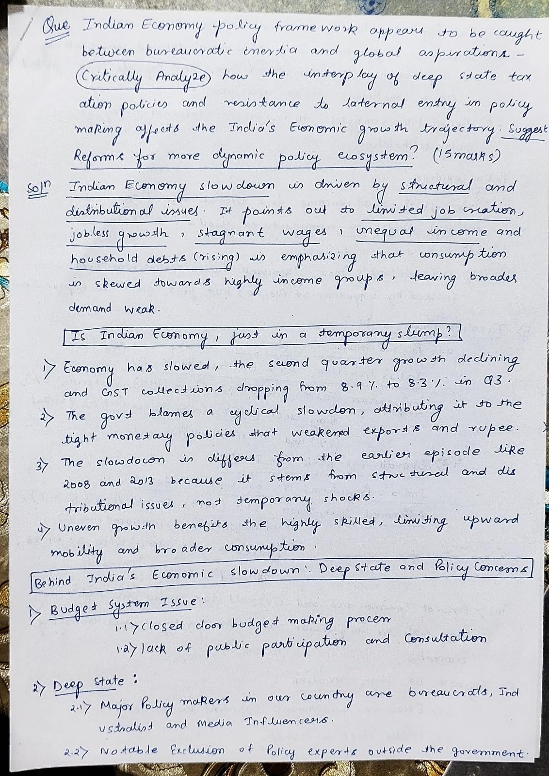- इस बात पर प्रकाश डालिए कि किस प्रकार भारत का आर्थिक नीतिगत ढाँचा, प्रशासनिक जड़ता और वैश्विक आकांक्षाओं के बीच फंसा हुआ प्रतीत होता है।