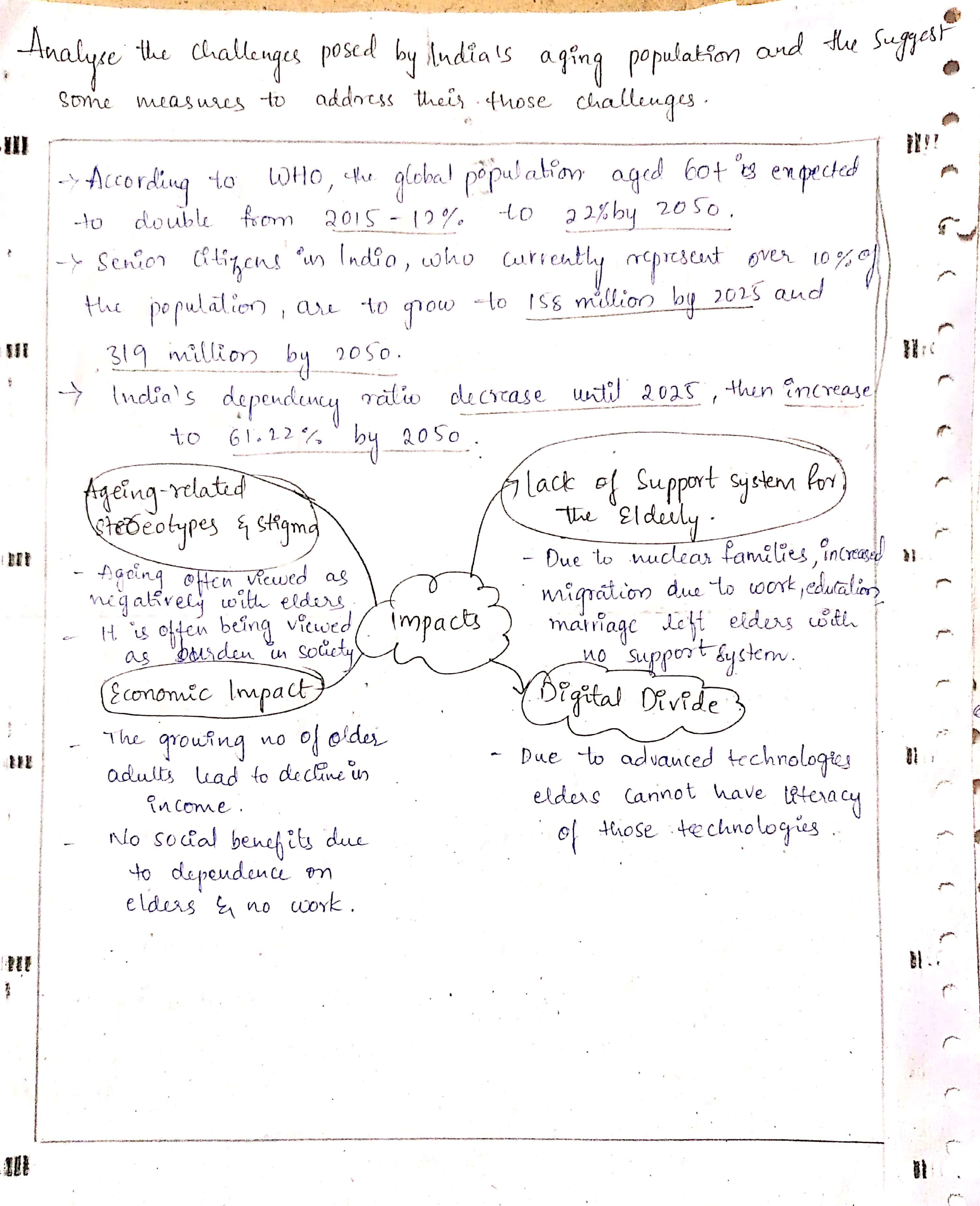 - Introduction: Start with the observation that India’s elderly population is on the rise, projected to double by 2050, posing significant socio-economic challenges.