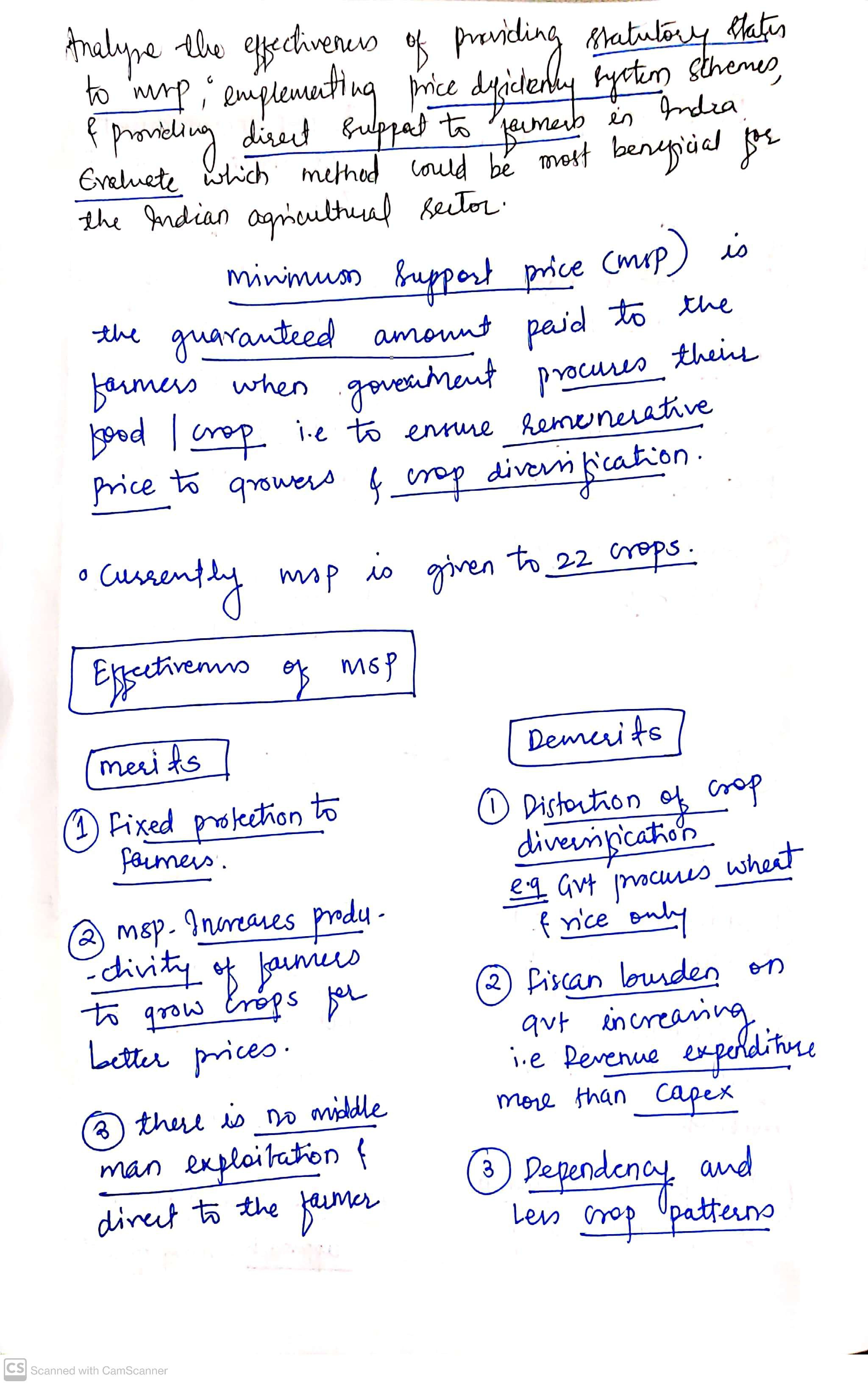 MSP(Minimum Support Price) is a type of subsidies provided by the government, to save formers from loss.