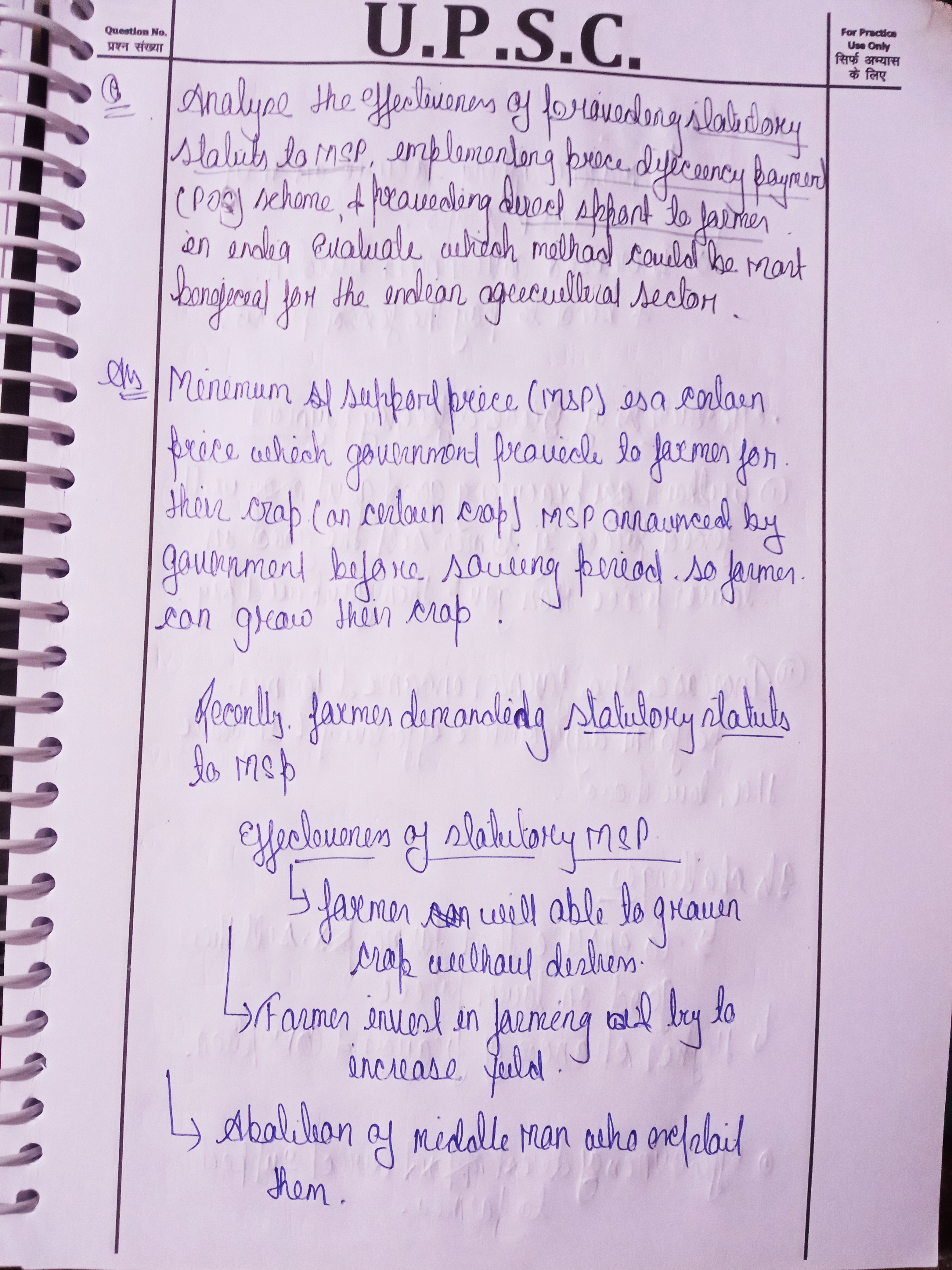 - Benefits: MSP guarantees a minimum price to farmers for their crops, providing income security and protecting them from market price fluctuations. It also promotes food security by encouraging the production of staple crops.