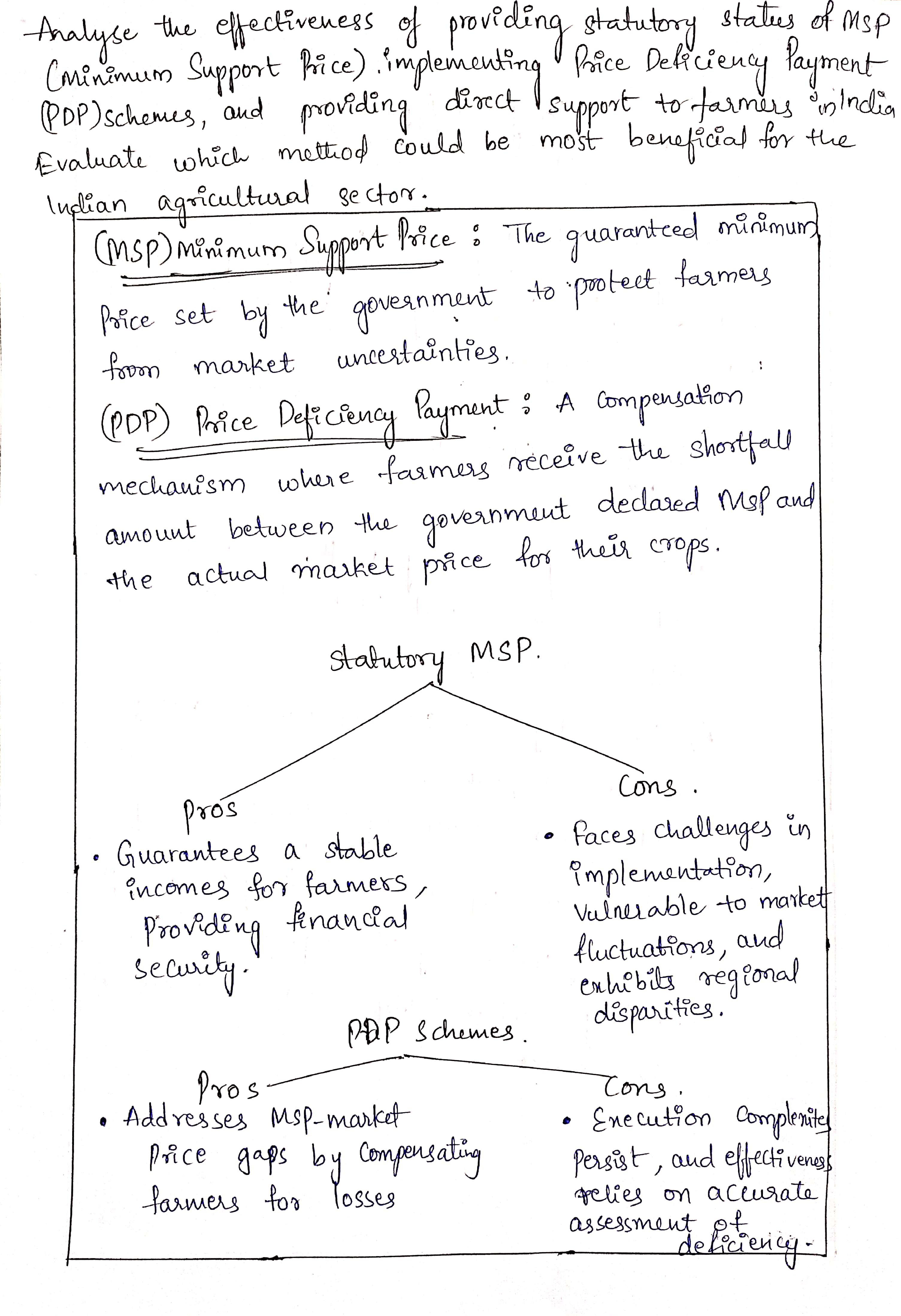 - Benefits: PDP decreases the need for government procurement, storage, and disposal under the Public Distribution System (PDS), potentially making cropping patterns more responsive to consumer needs.