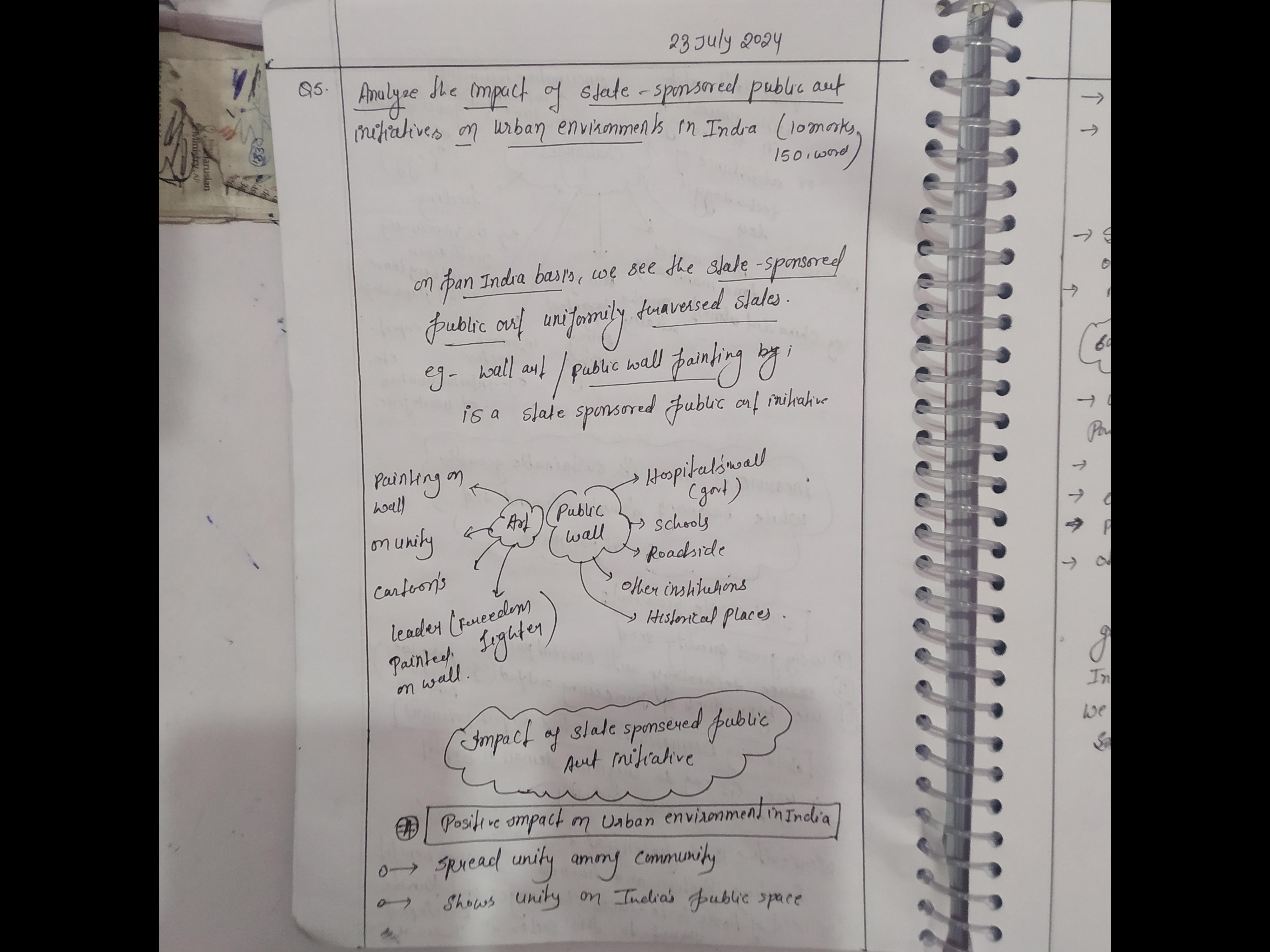 - Analyse the positive impacts of State-sponsored Public Art initiatives on urban environments in India.