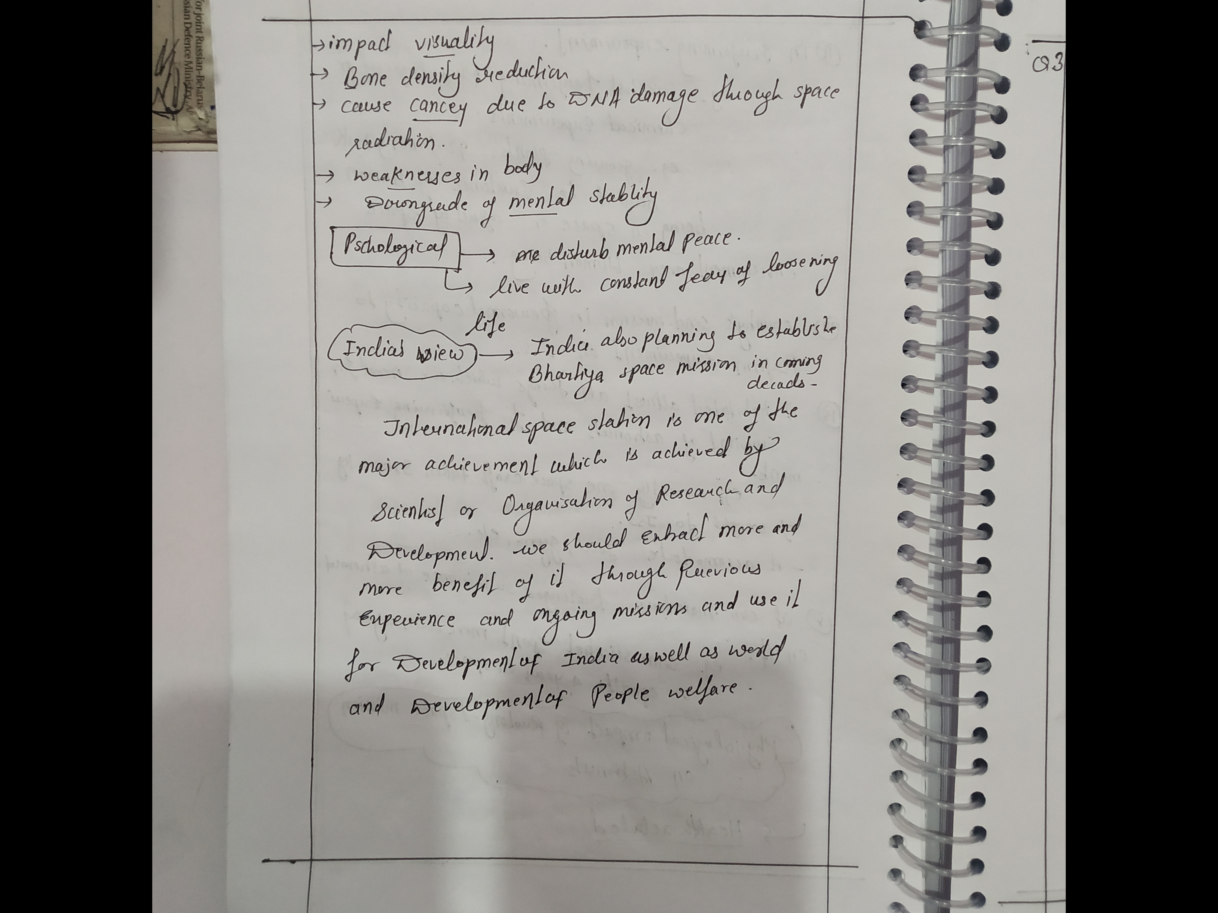 - Psychological Effects: Isolation and confinement during long missions can lead to psychological stress and mood disorders.