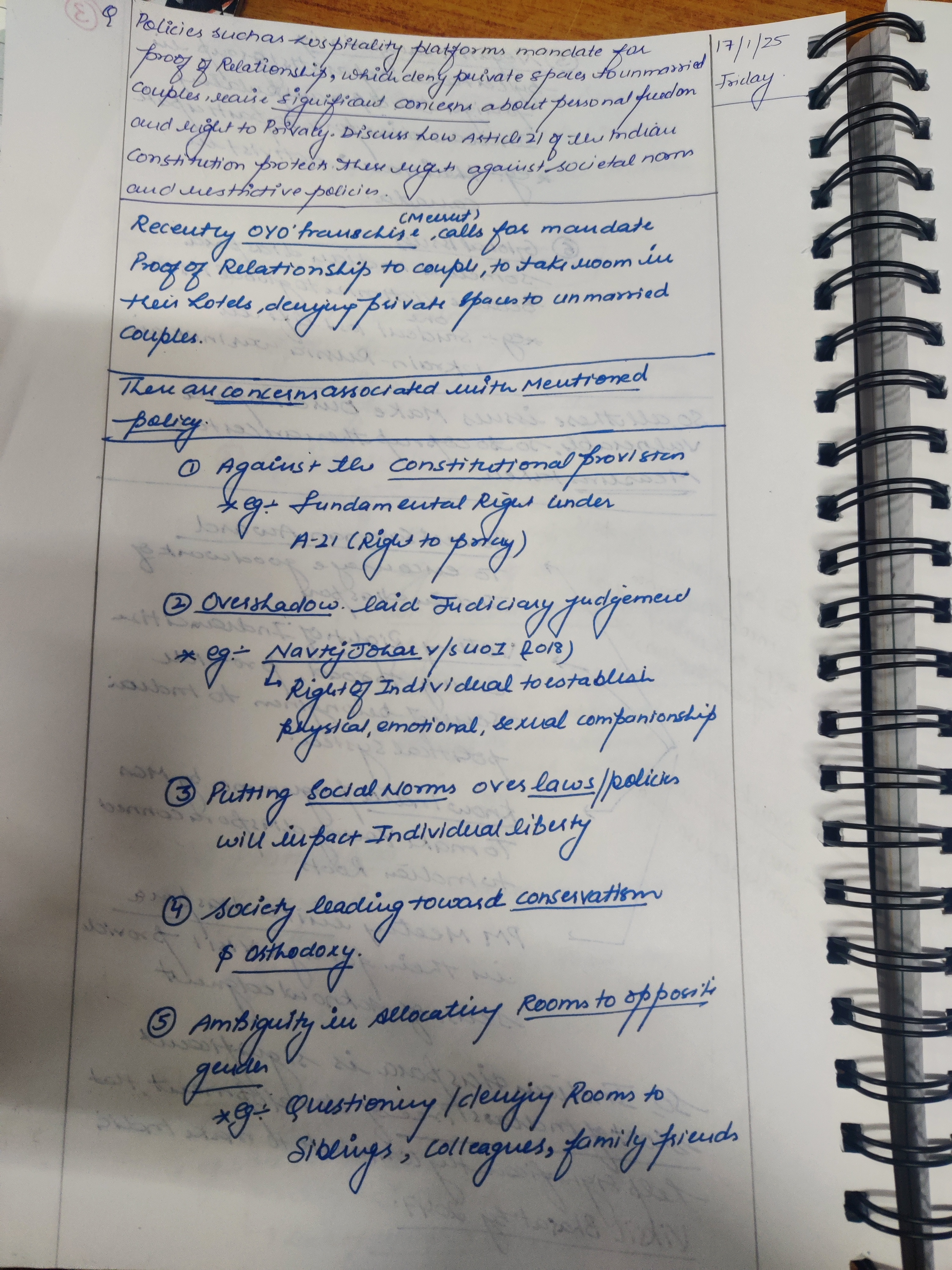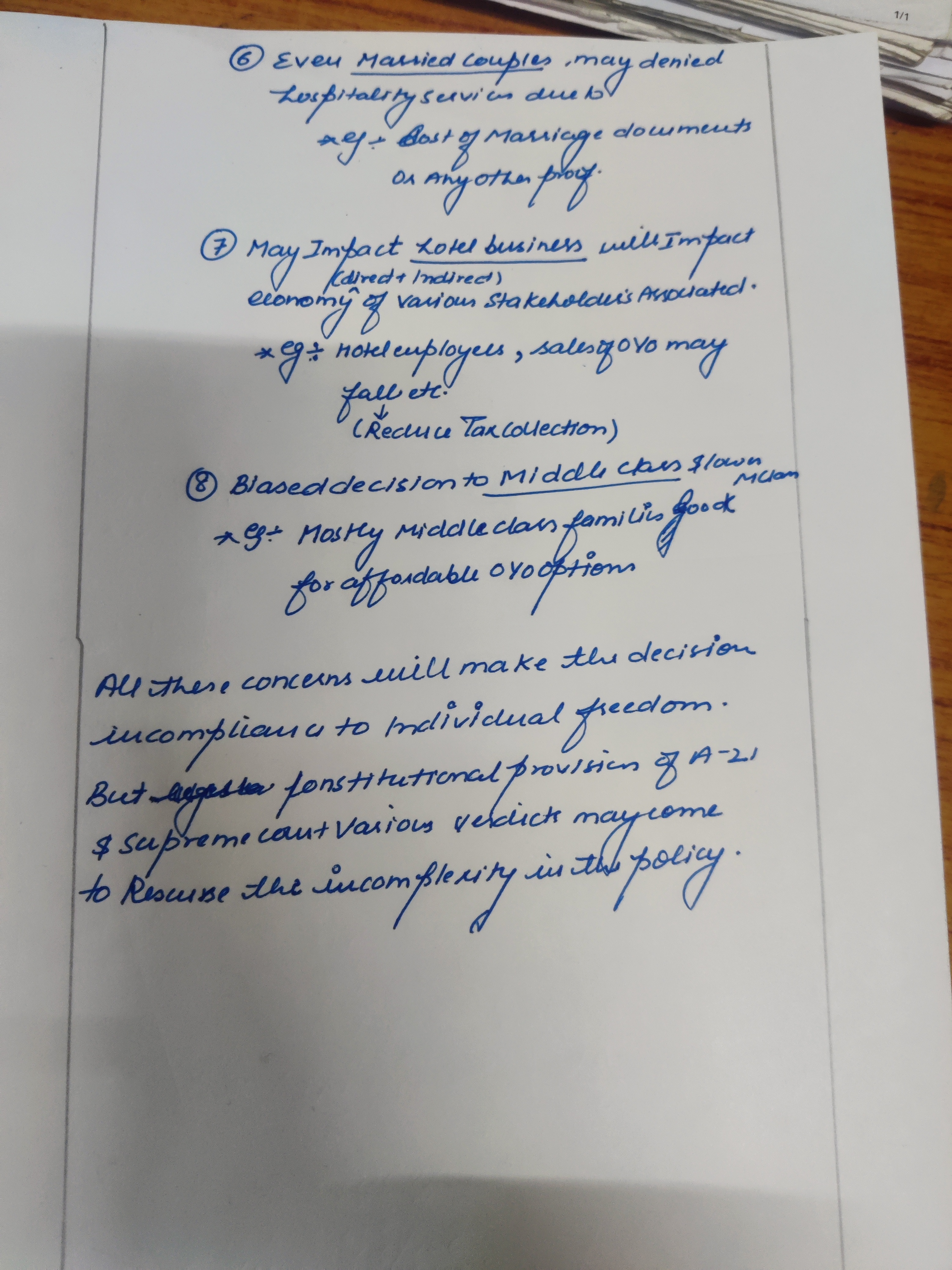 For example: The OYO policy discourages unmarried couples from accessing hotels, violating their right to privacy.