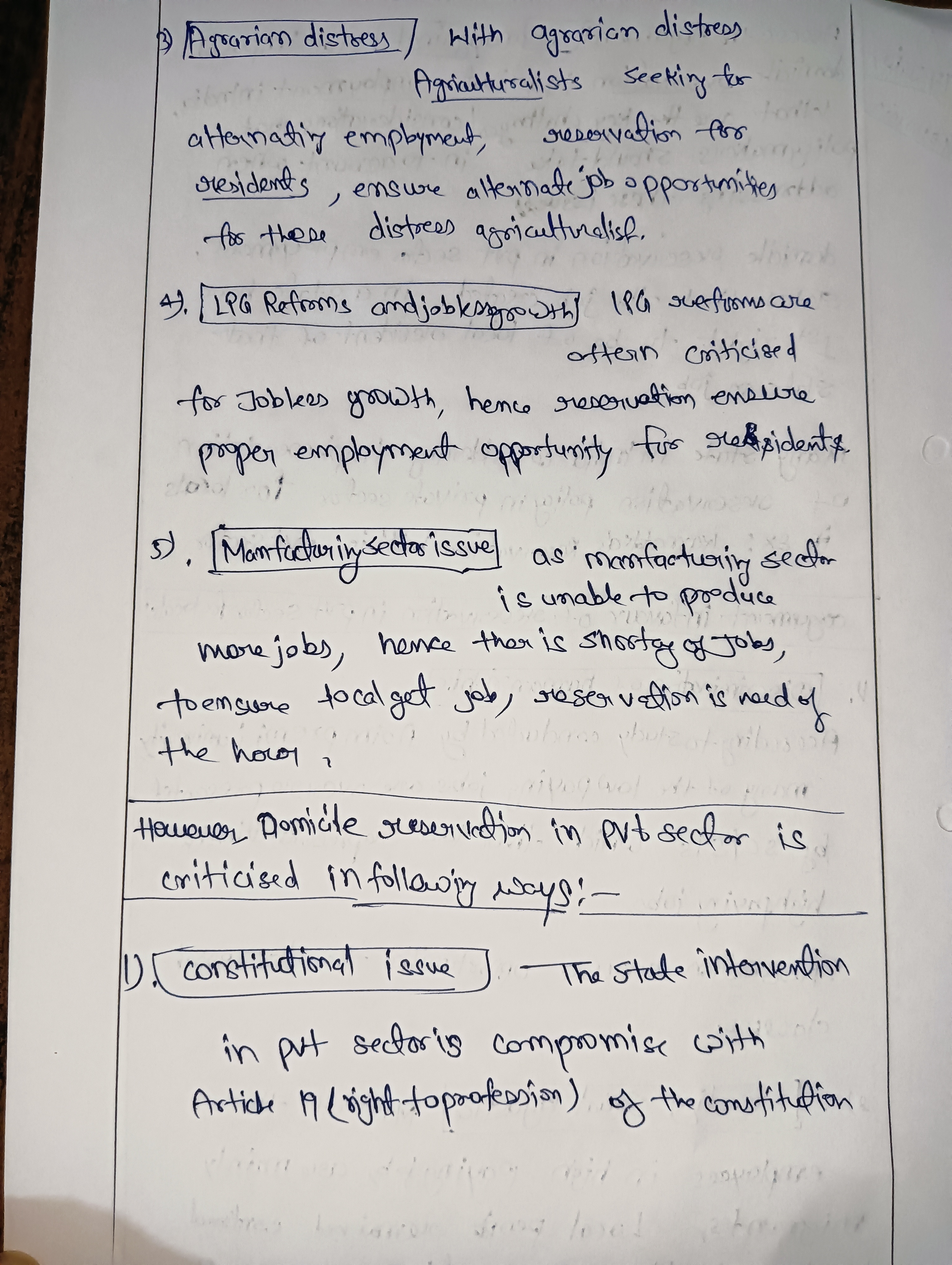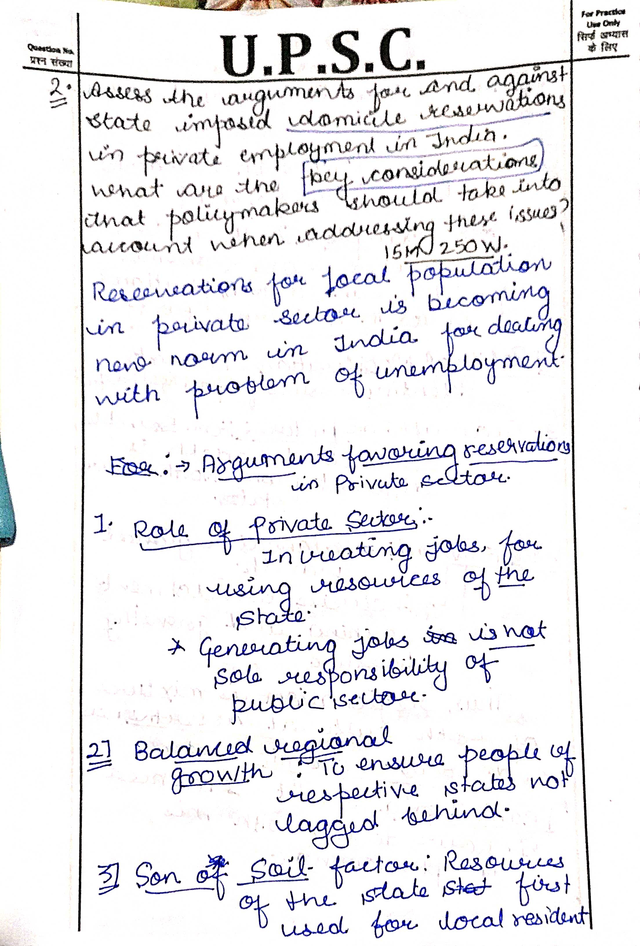 - Highlight the arguments opposing state-imposed domicile reservations in private employment in India.