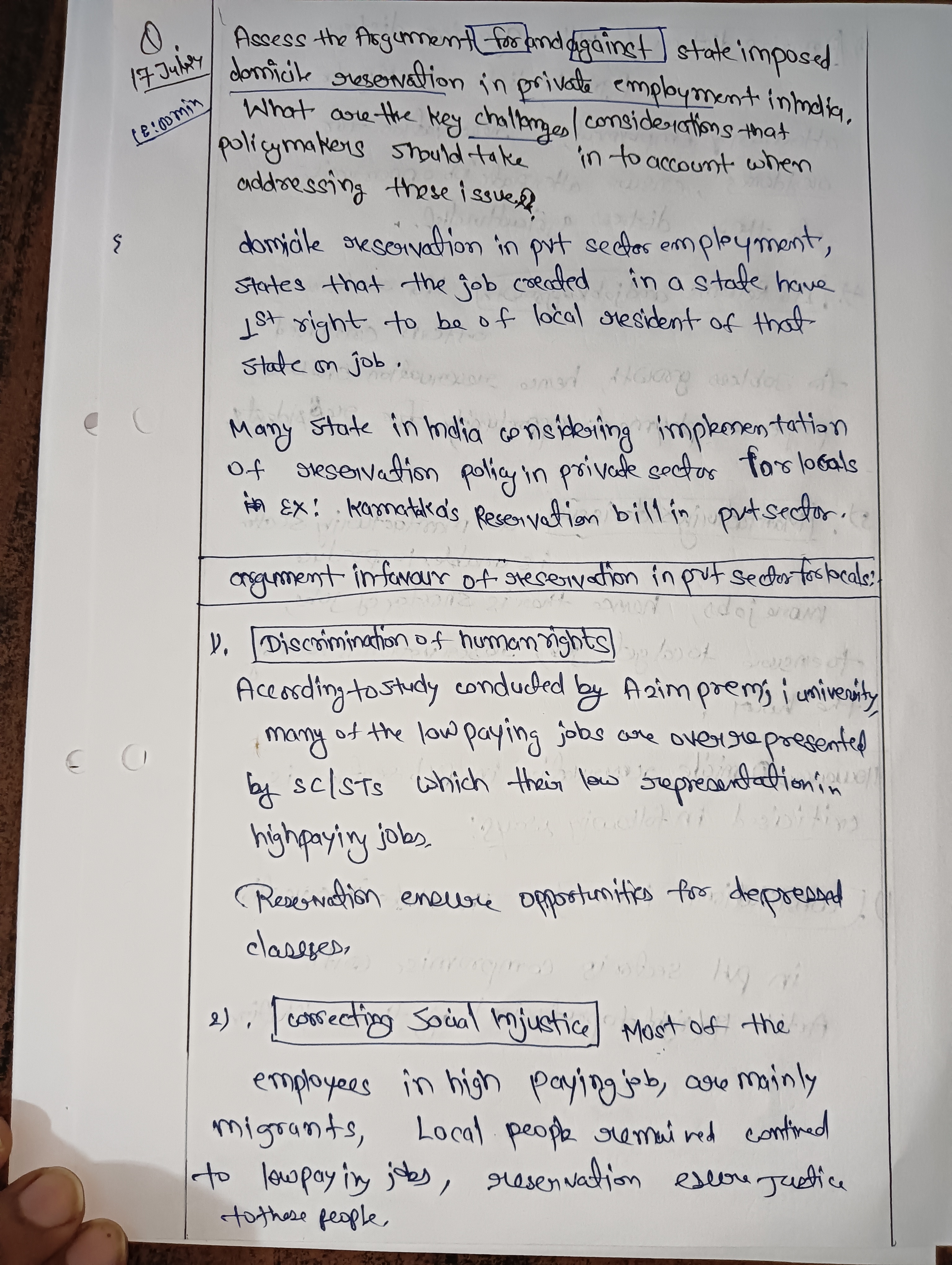 - Assess the arguments supporting state-imposed domicile reservations in private employment in India.