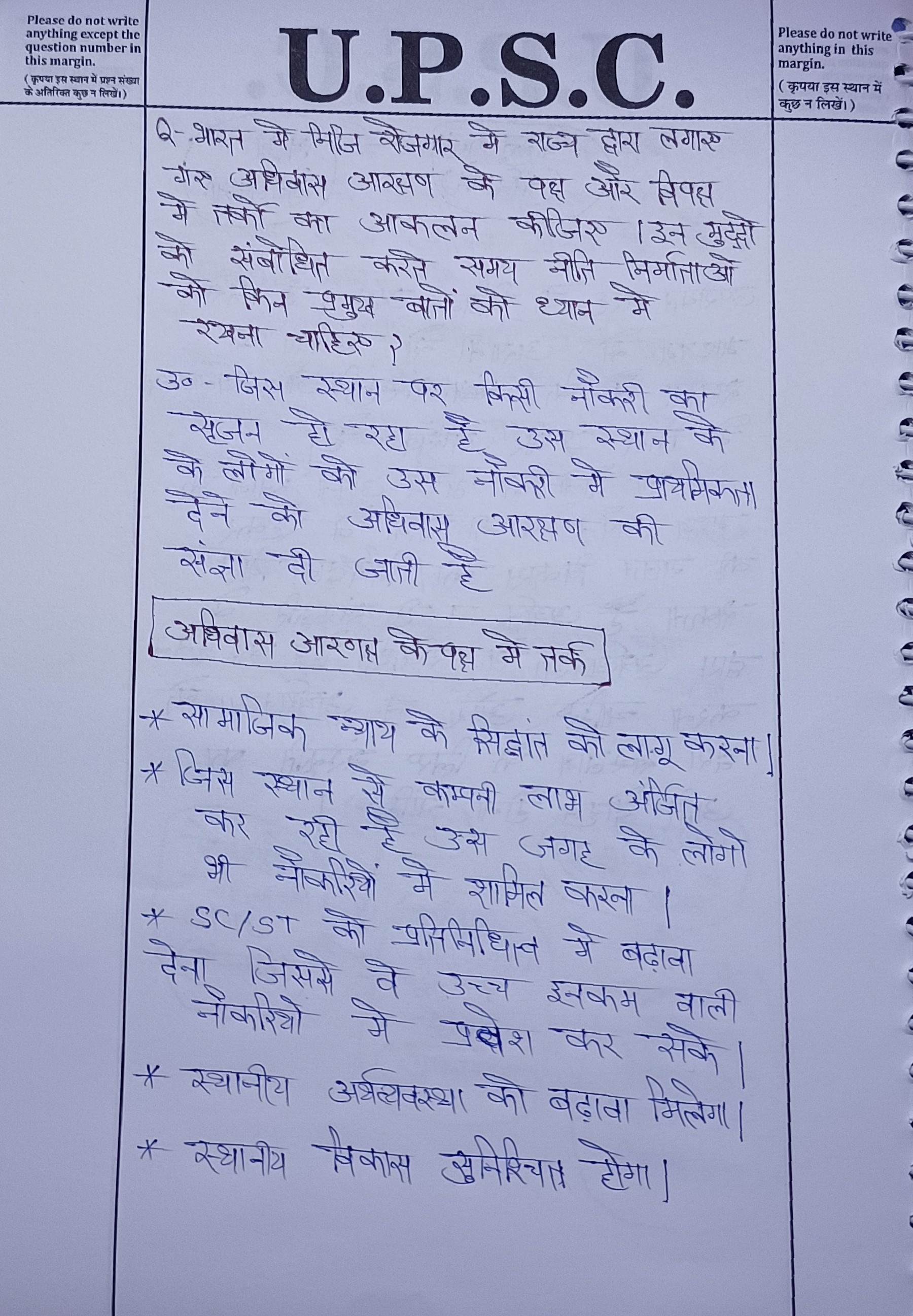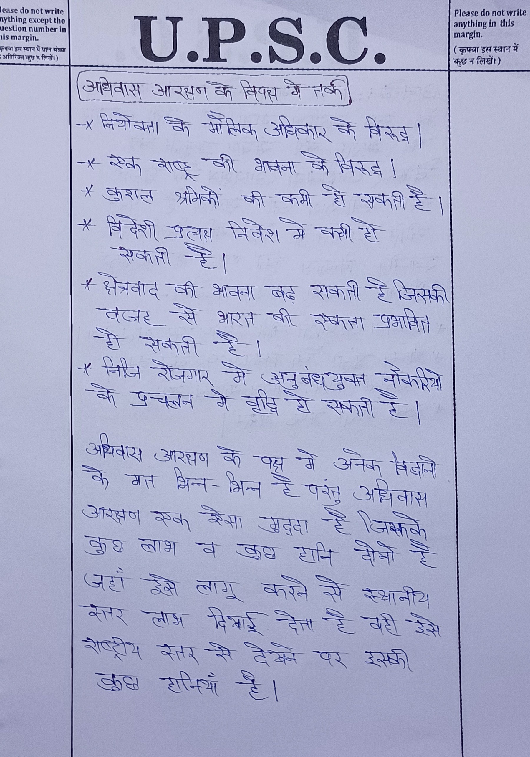 Q. भारत में निजी रोजगार में राज्य द्वारा लगाए गए अधिवास आरक्षण के पक्ष और विपक्ष में तर्कों का आकलन कीजिए। इन मुद्दों को संबोधित करते समय नीति निर्माताओं को किन प्रमुख बातों को ध्यान में रखना चाहिए? (15 अंक, 250 शब्द)