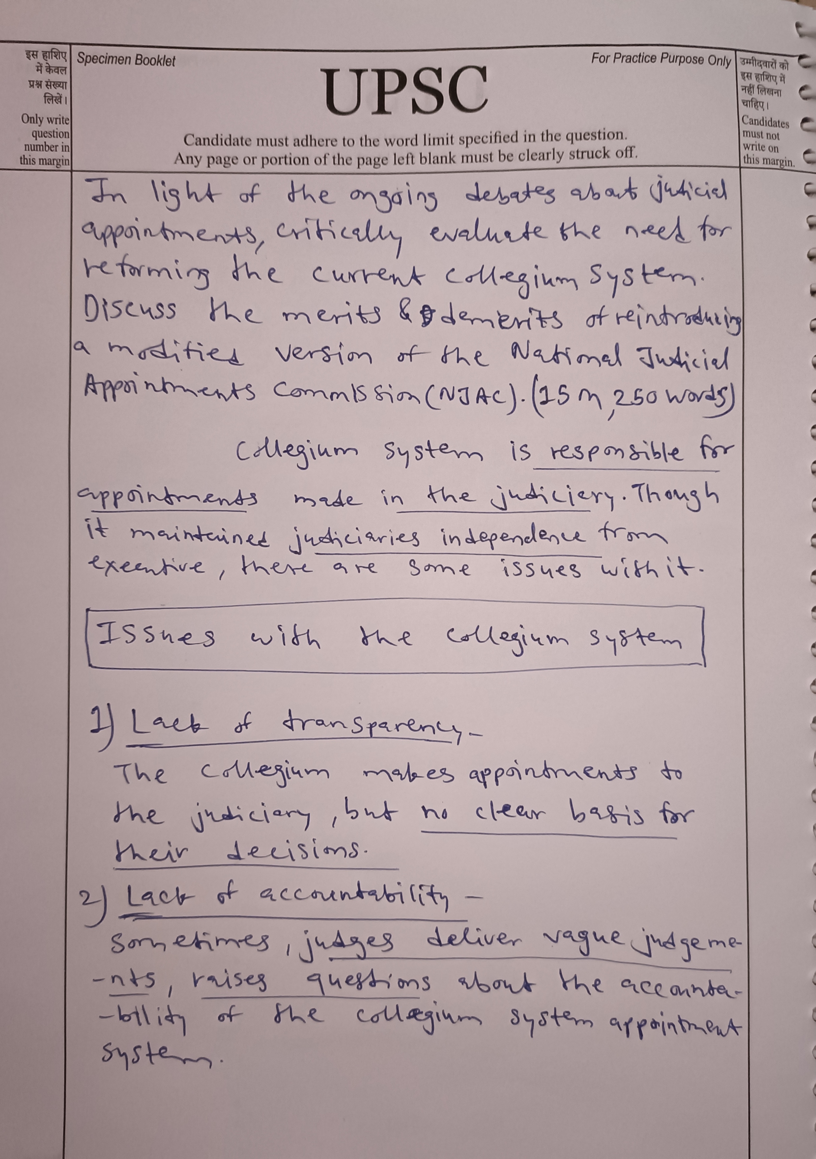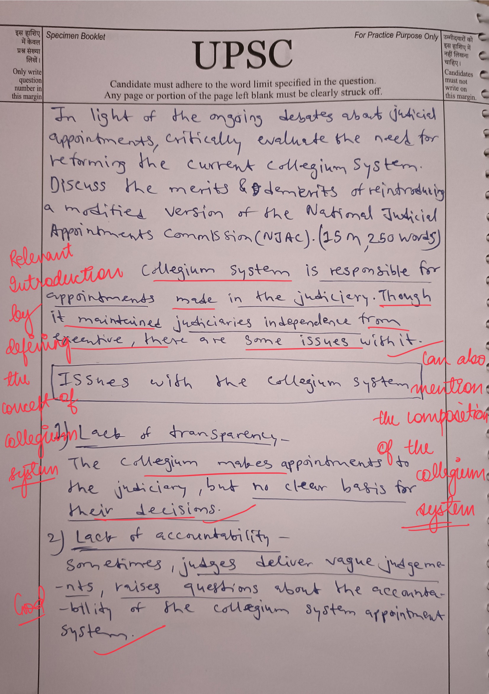 - Discuss the demerits of reintroducing a modified version of the National Judicial Appointments Commission (NJAC).