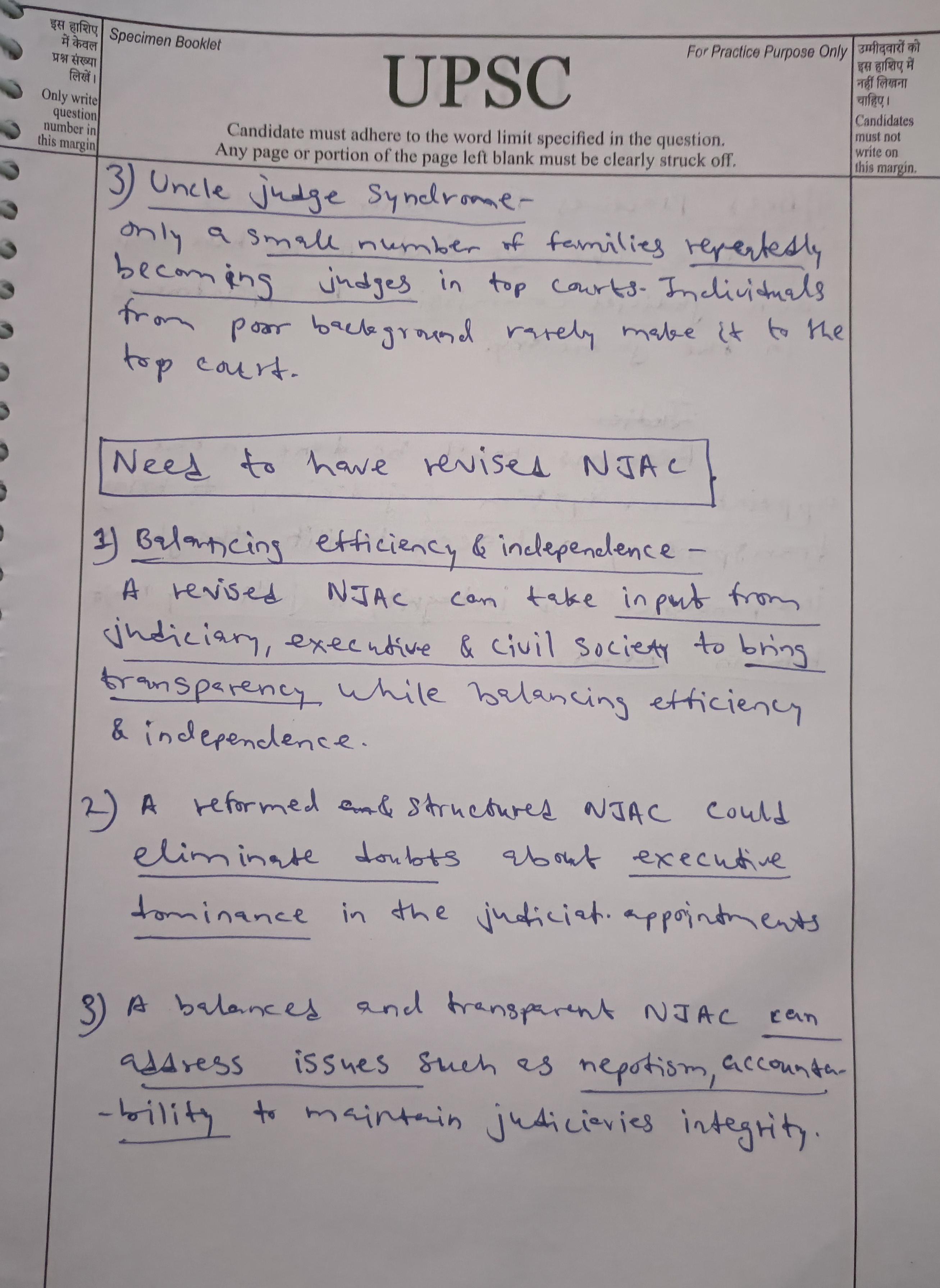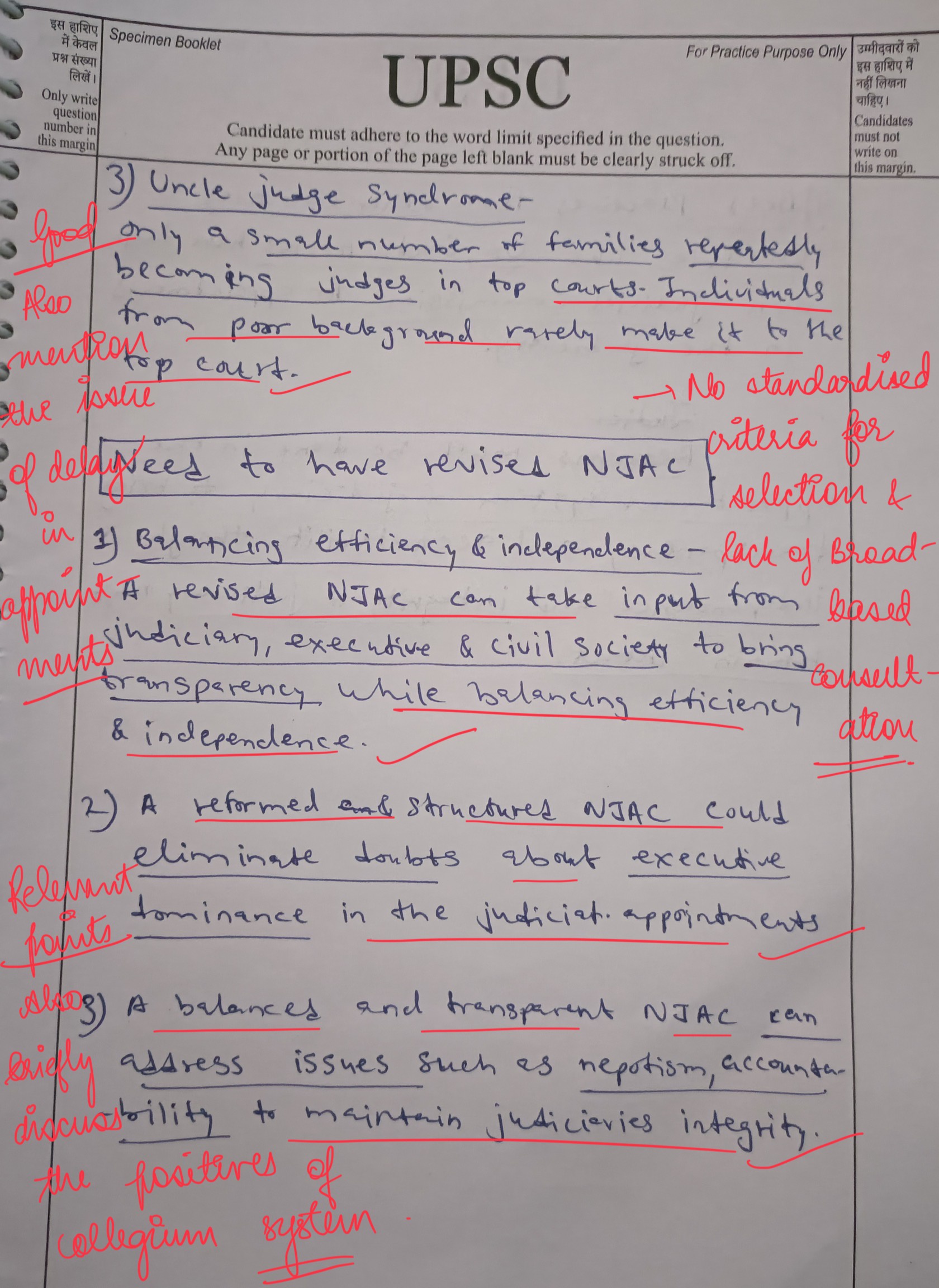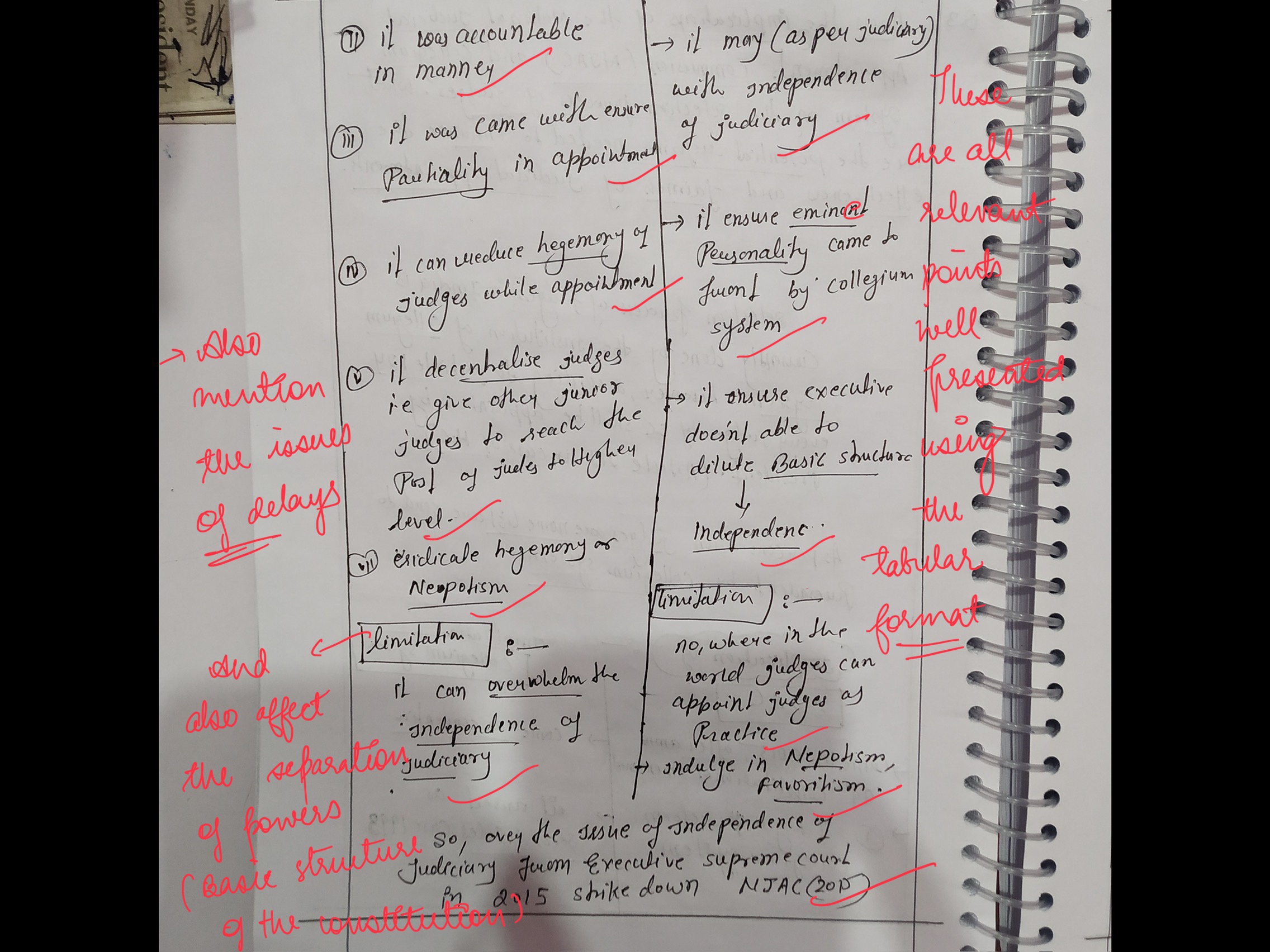 - Discuss the merits of reintroducing a modified version of the National Judicial Appointments Commission (NJAC).