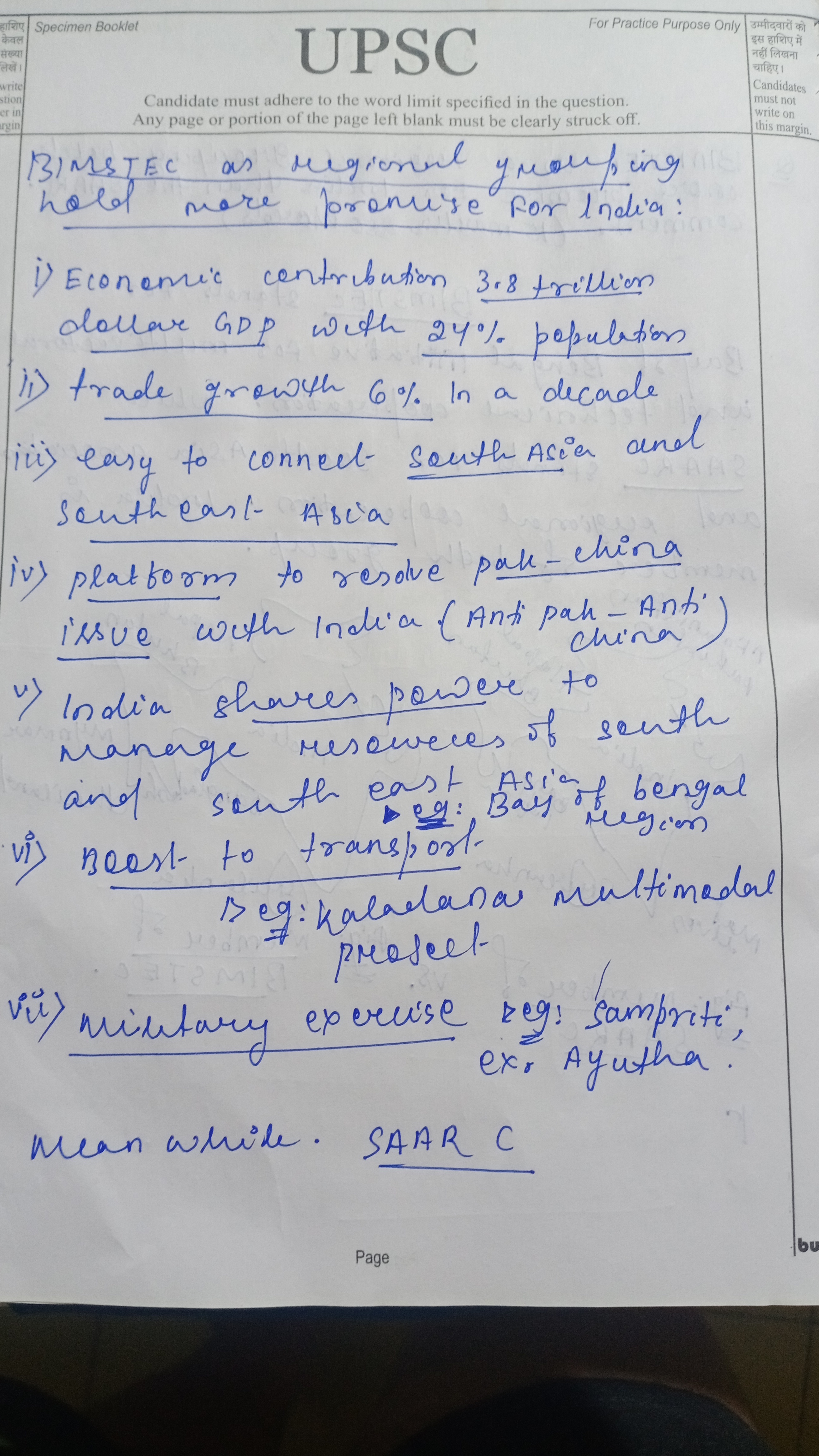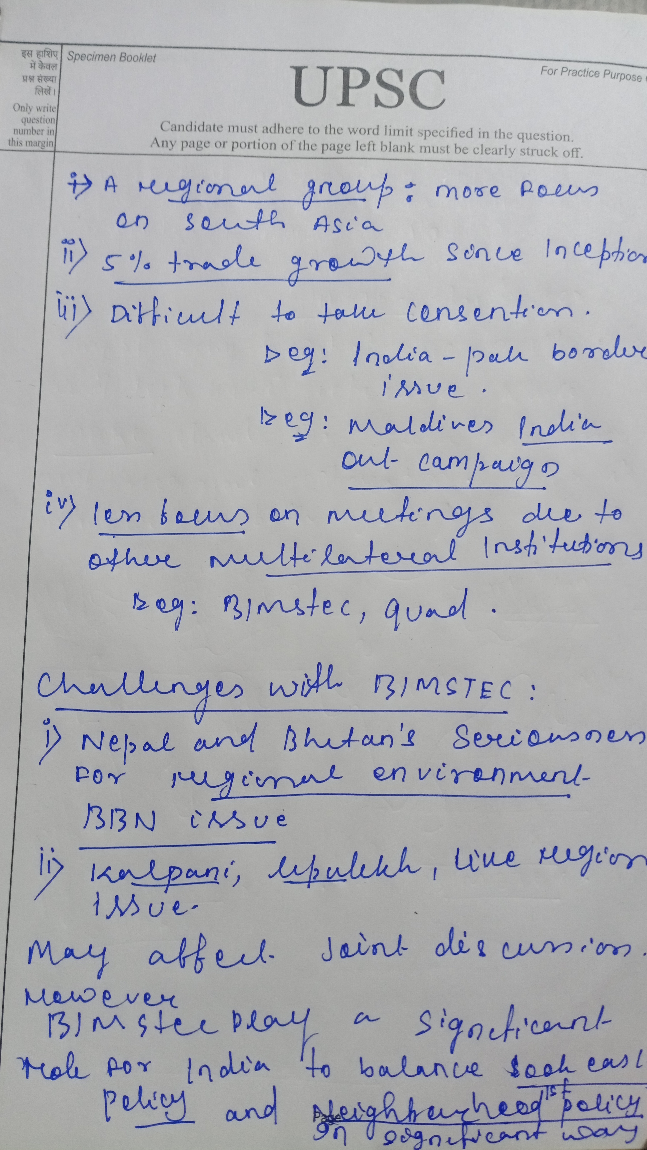 For instance: SAARC focusing on social issues, BIMSTEC on economic integration for comprehensive regional development.