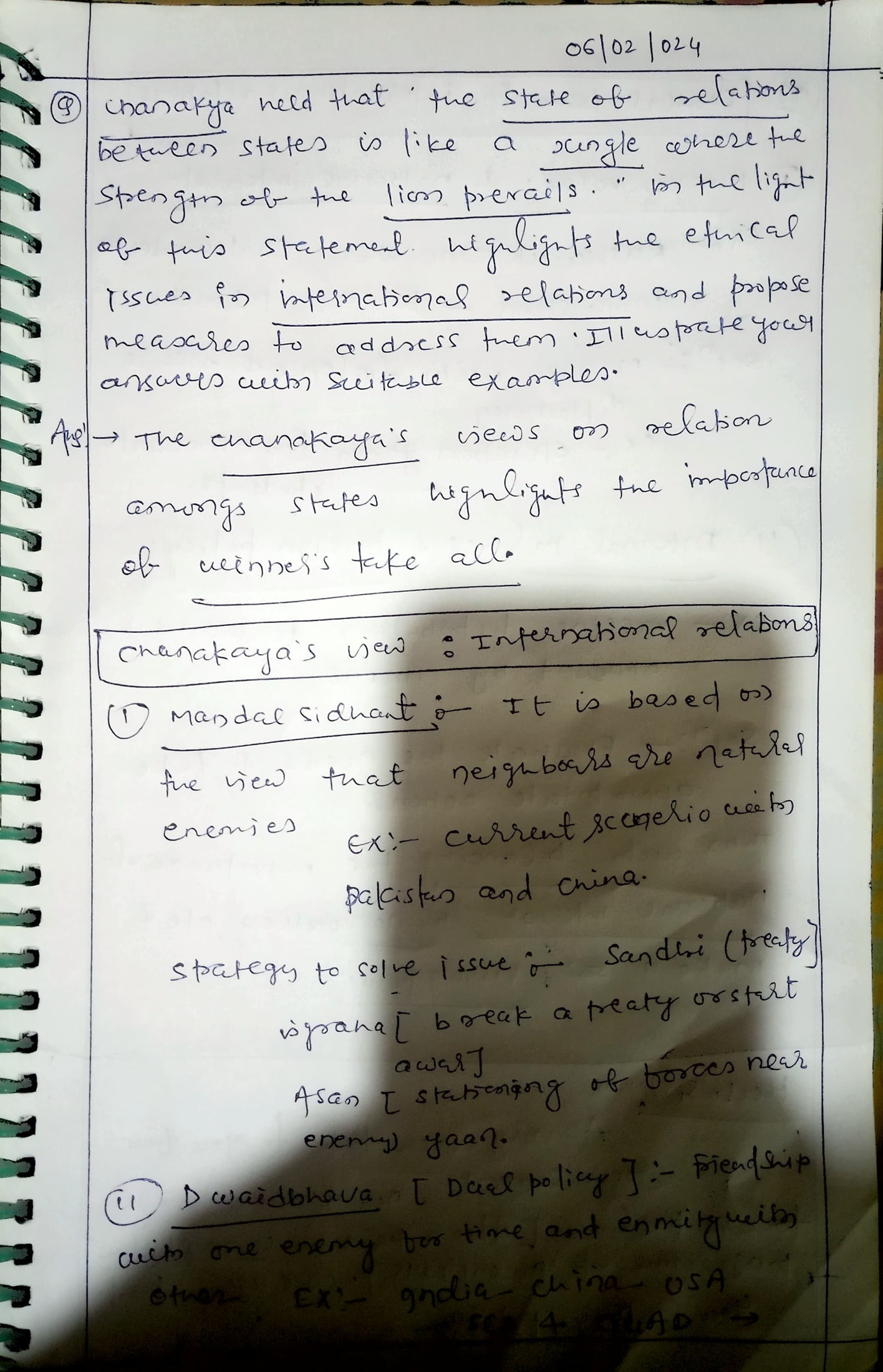 Q. Chanakya held that “the state of relations between States is like a jungle where the strength of the lion prevails.” In the light of this statement, highlight the ethical issues in international relations and propose measures to address them. Illustrate your answer with suitable examples. (10 marks, 150 words) additional