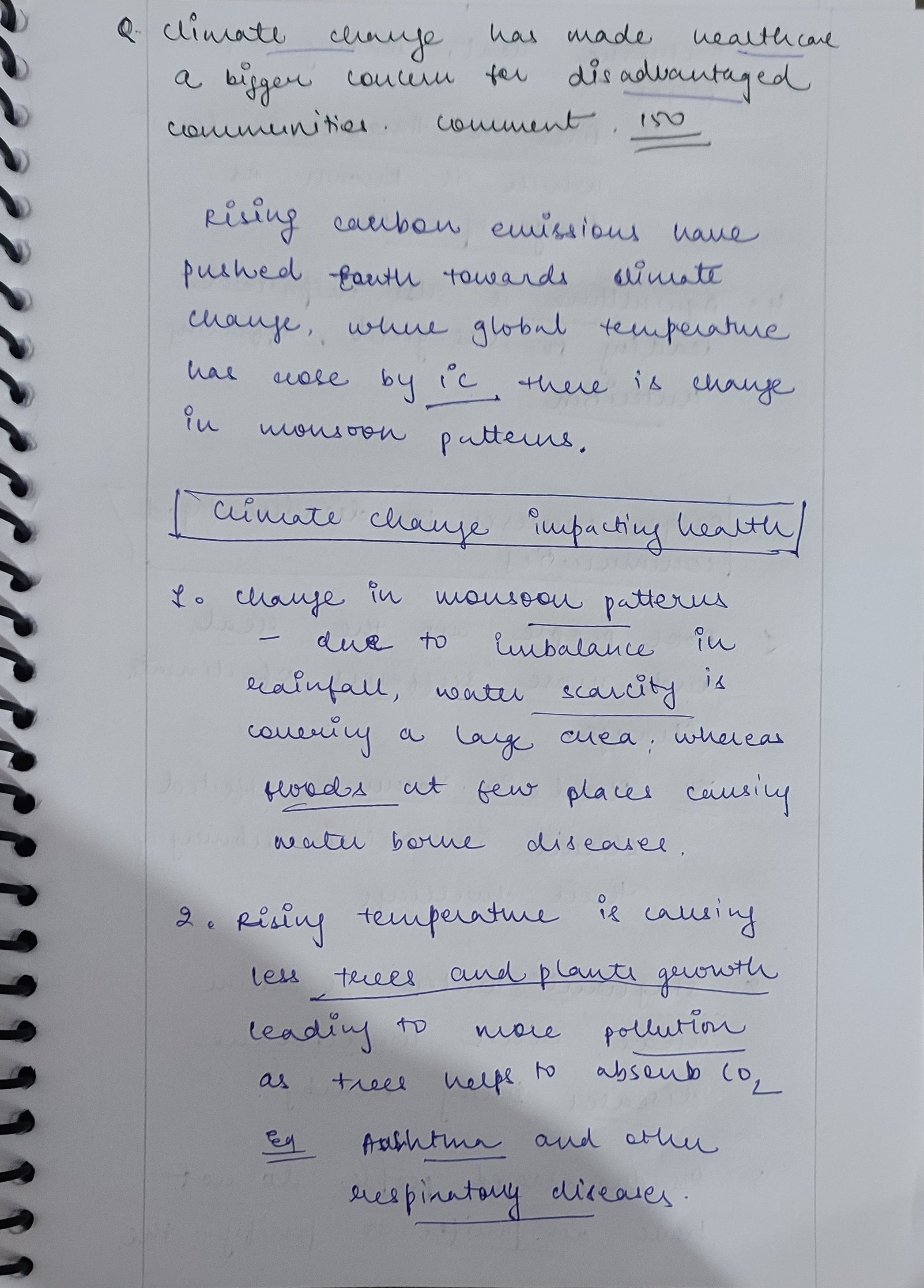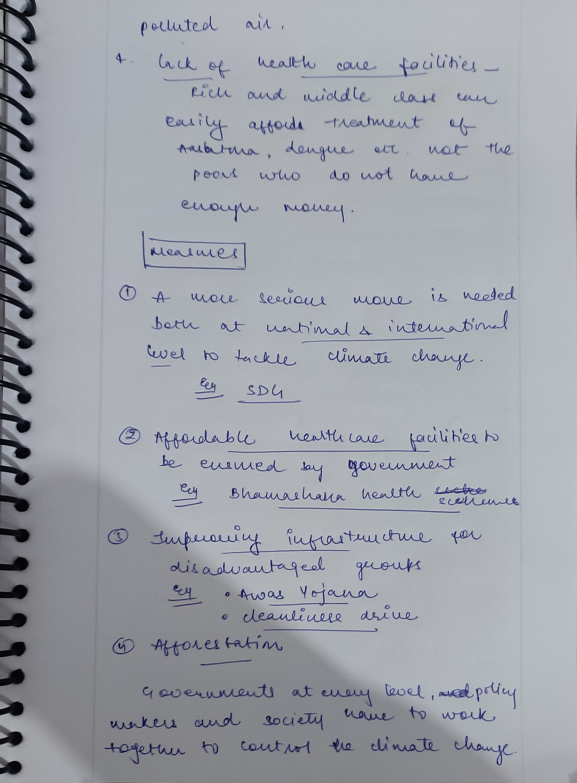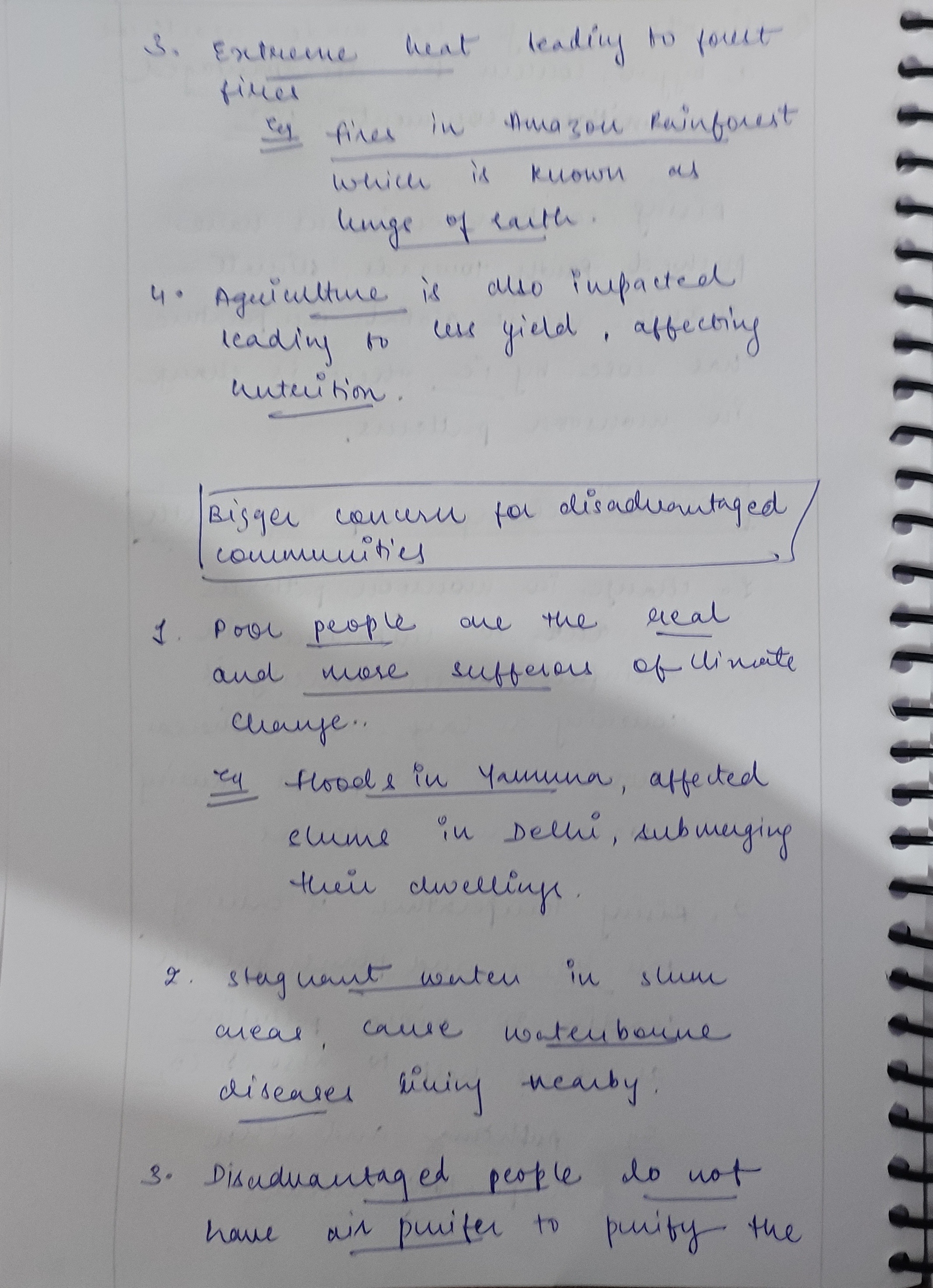 - Increased air pollution, a byproduct of climate change, has severe health implications, especially for marginalized groups in urban areas.