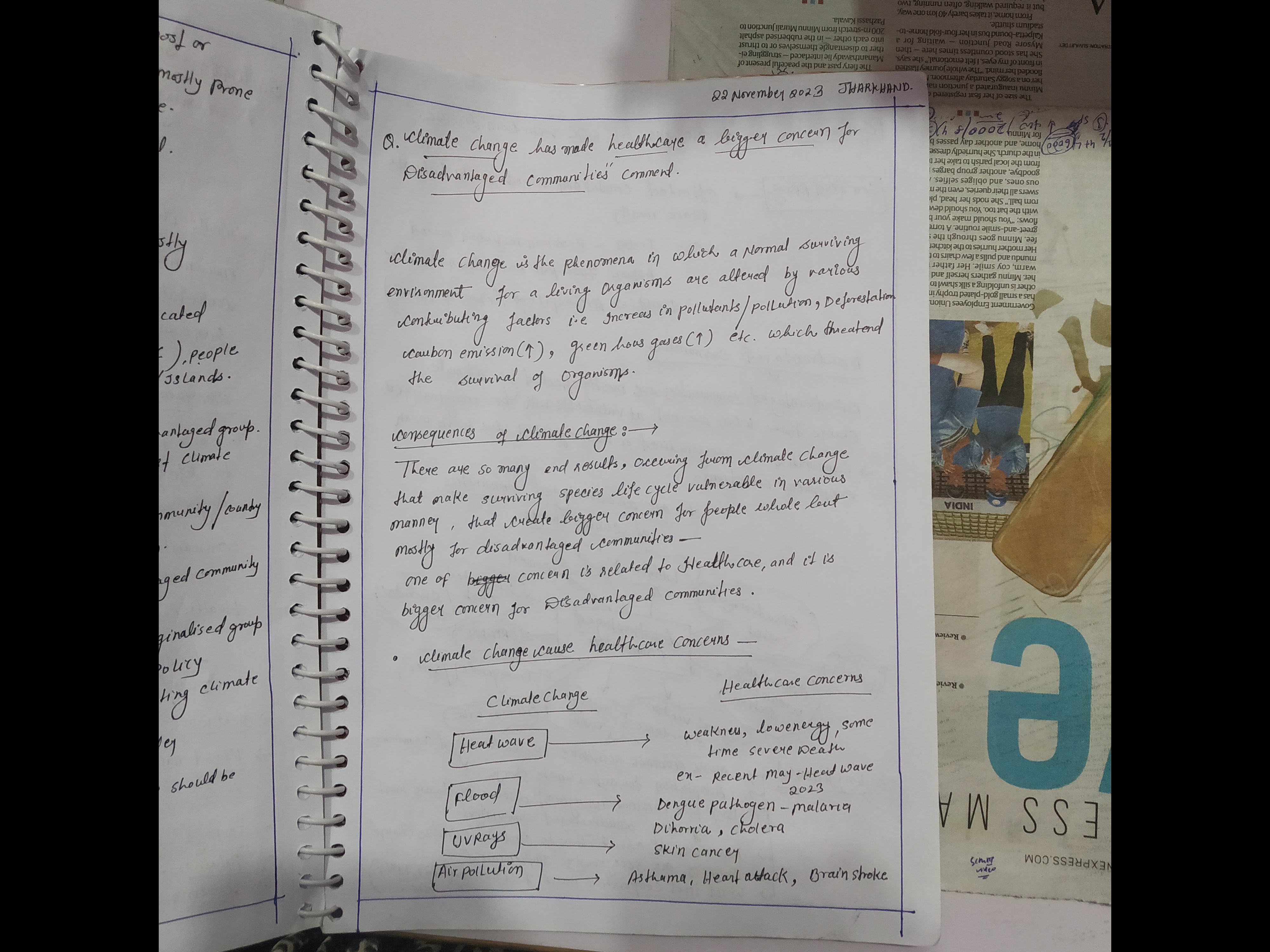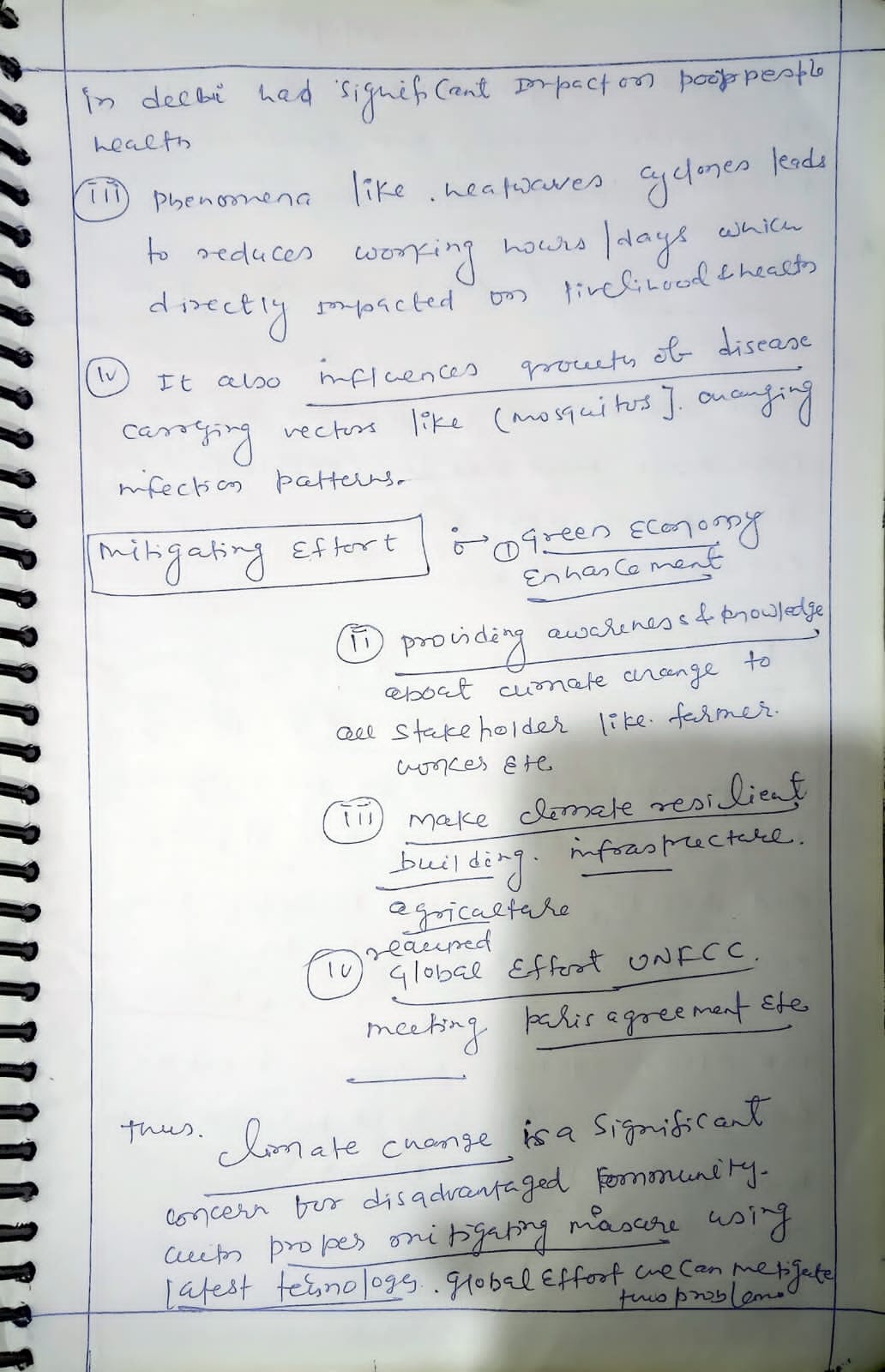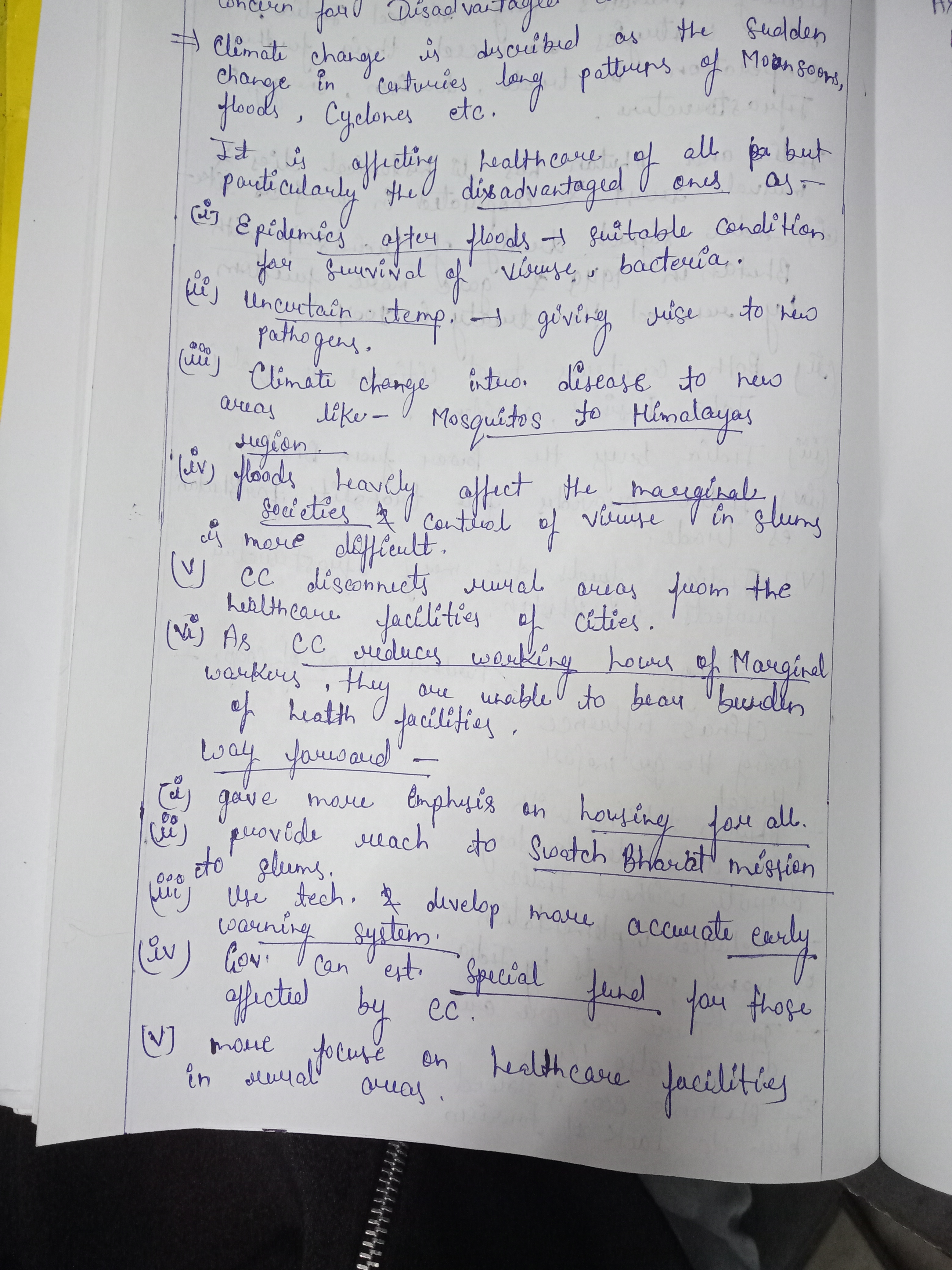 - Increased air pollution, a byproduct of climate change, has severe health implications, especially for marginalized groups in urban areas.