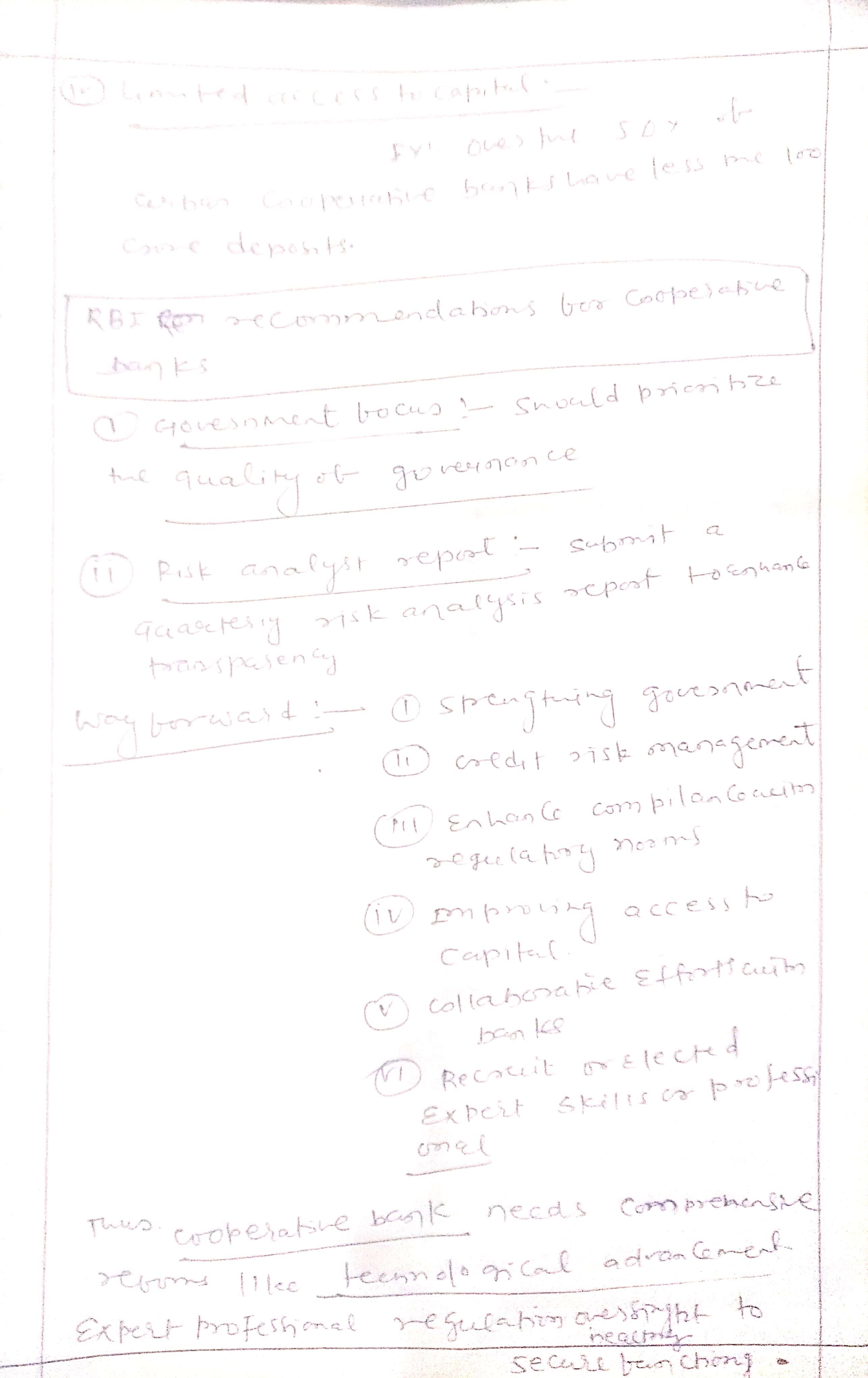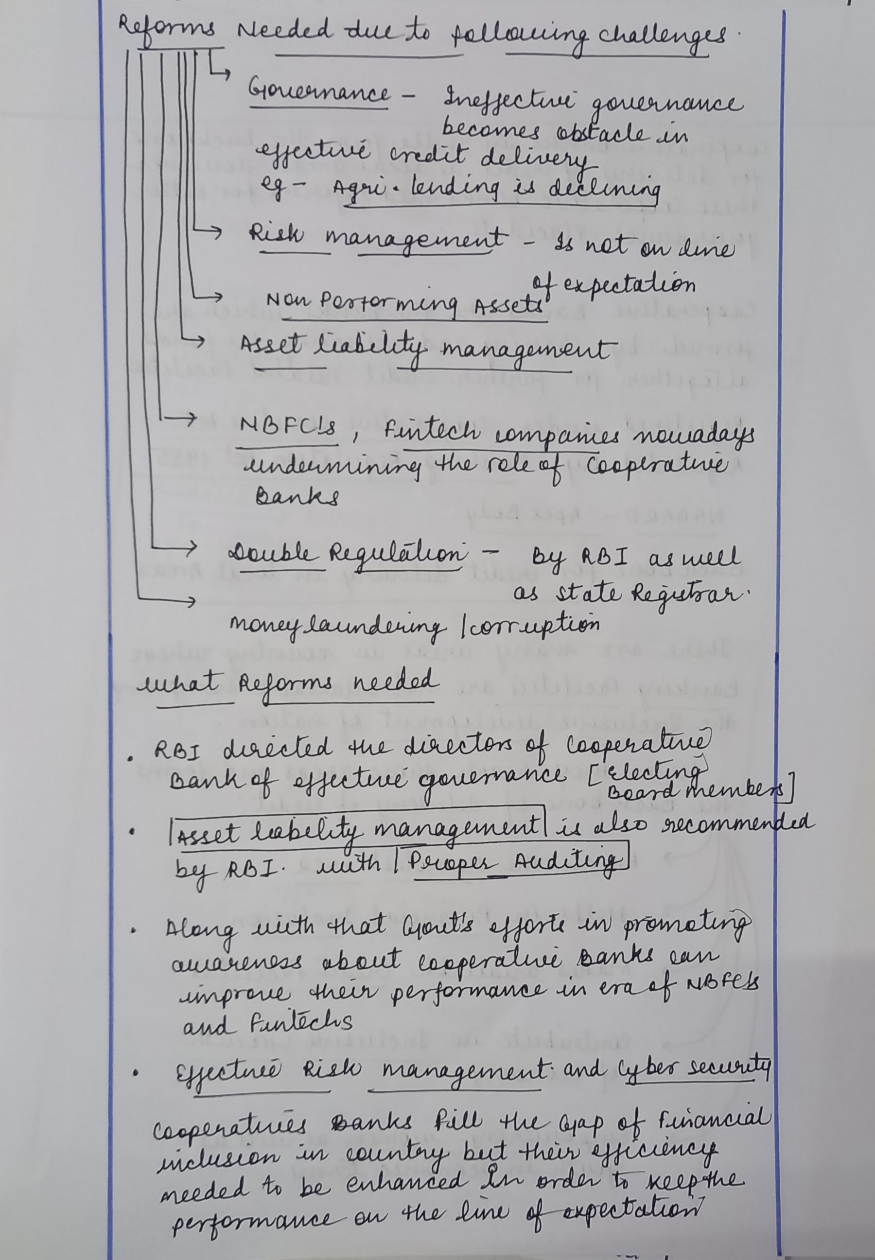 - Mention recent initiatives by the RBI and other regulatory bodies, and give examples like the consolidation of co-operative banks in Maharashtra.