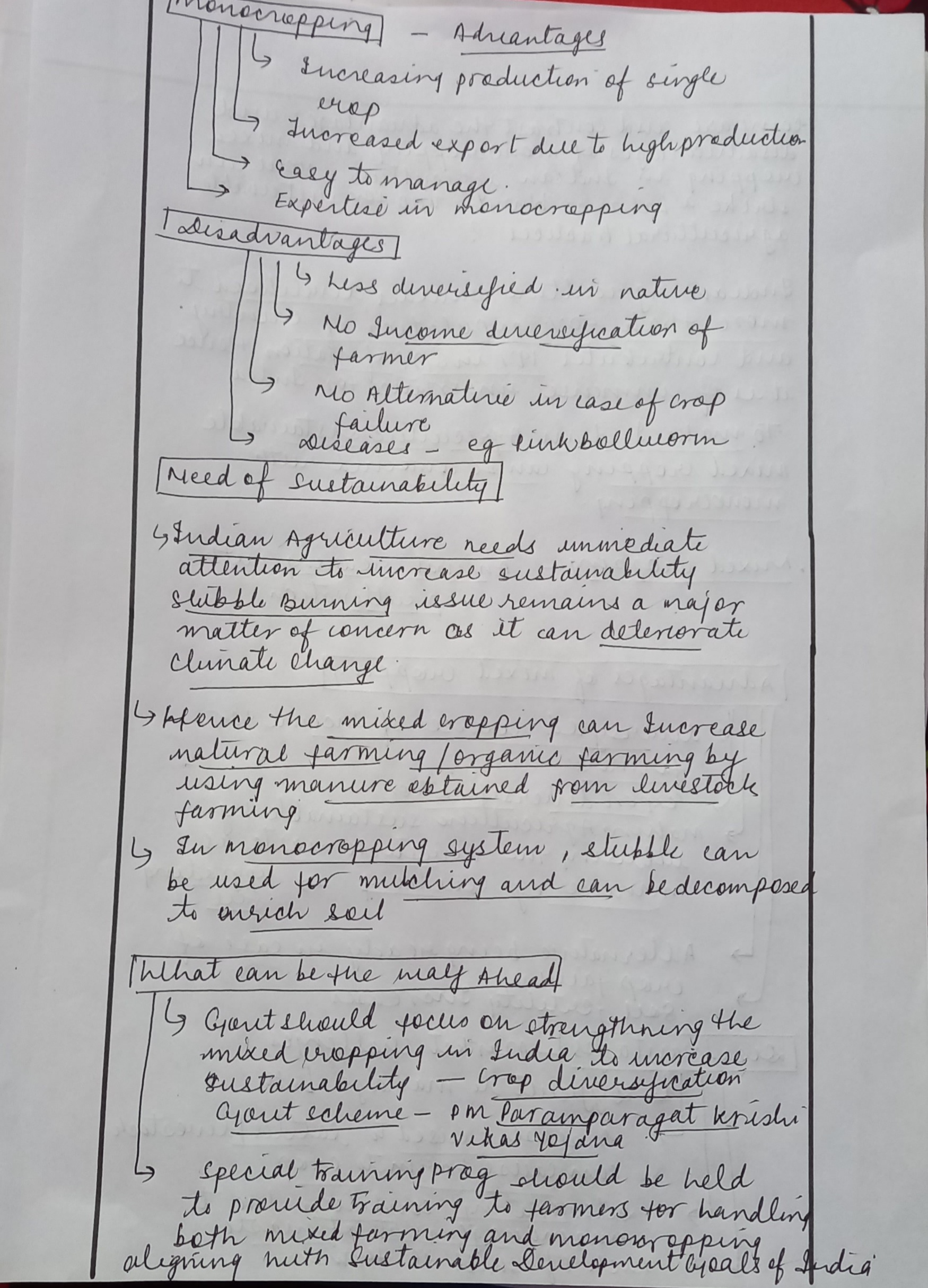 - Give an appropriate conclusion in this regard highlighting the need to balance monocropping and mixed farming in India.