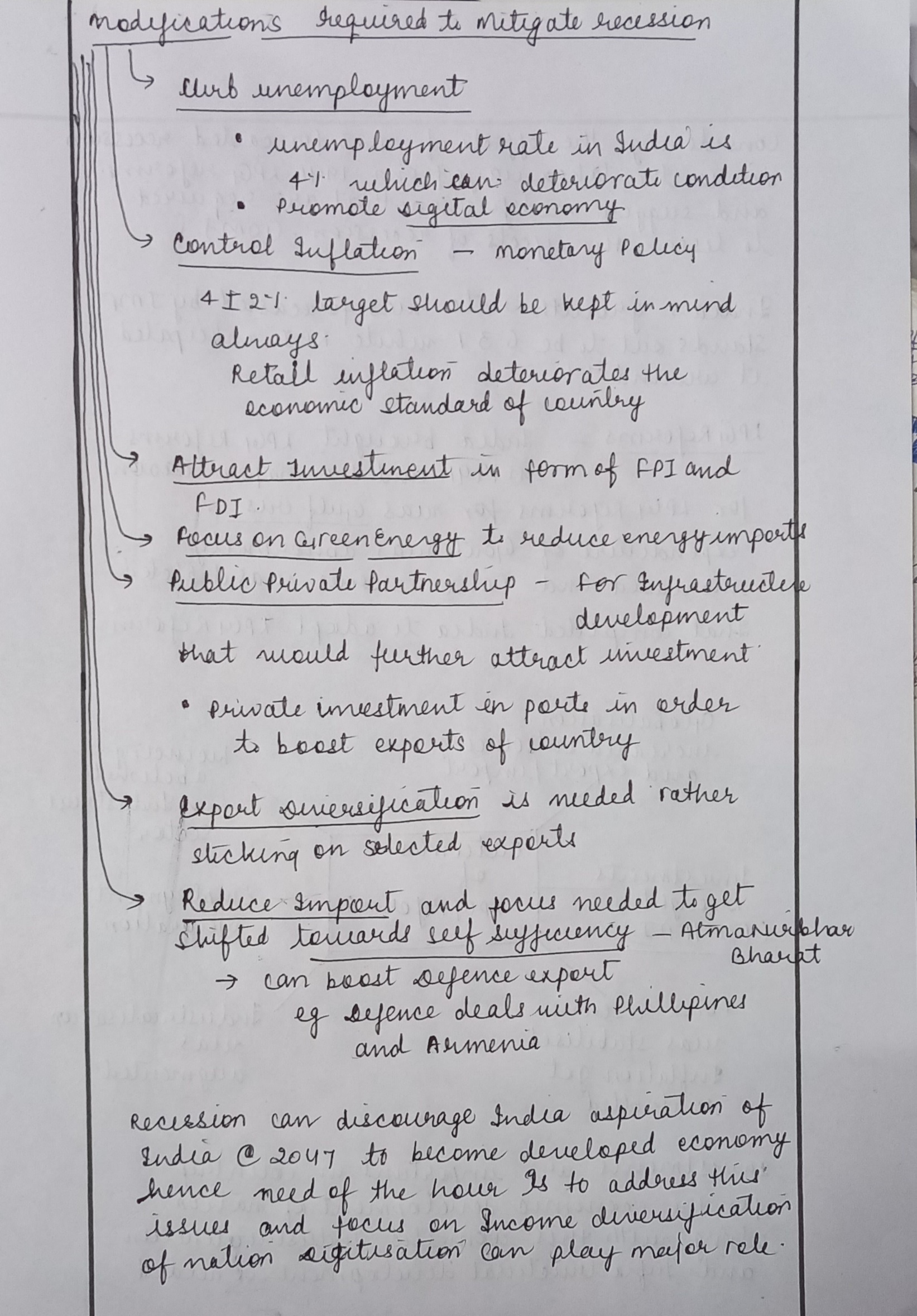 - Diversification of Economy: Post 1991, India transitioned from being a predominantly agriculture-based economy to a diversified one. The 2023 recession could be a cue to further diversify into new- age sectors like green energy, AI, and blockchain technologies.