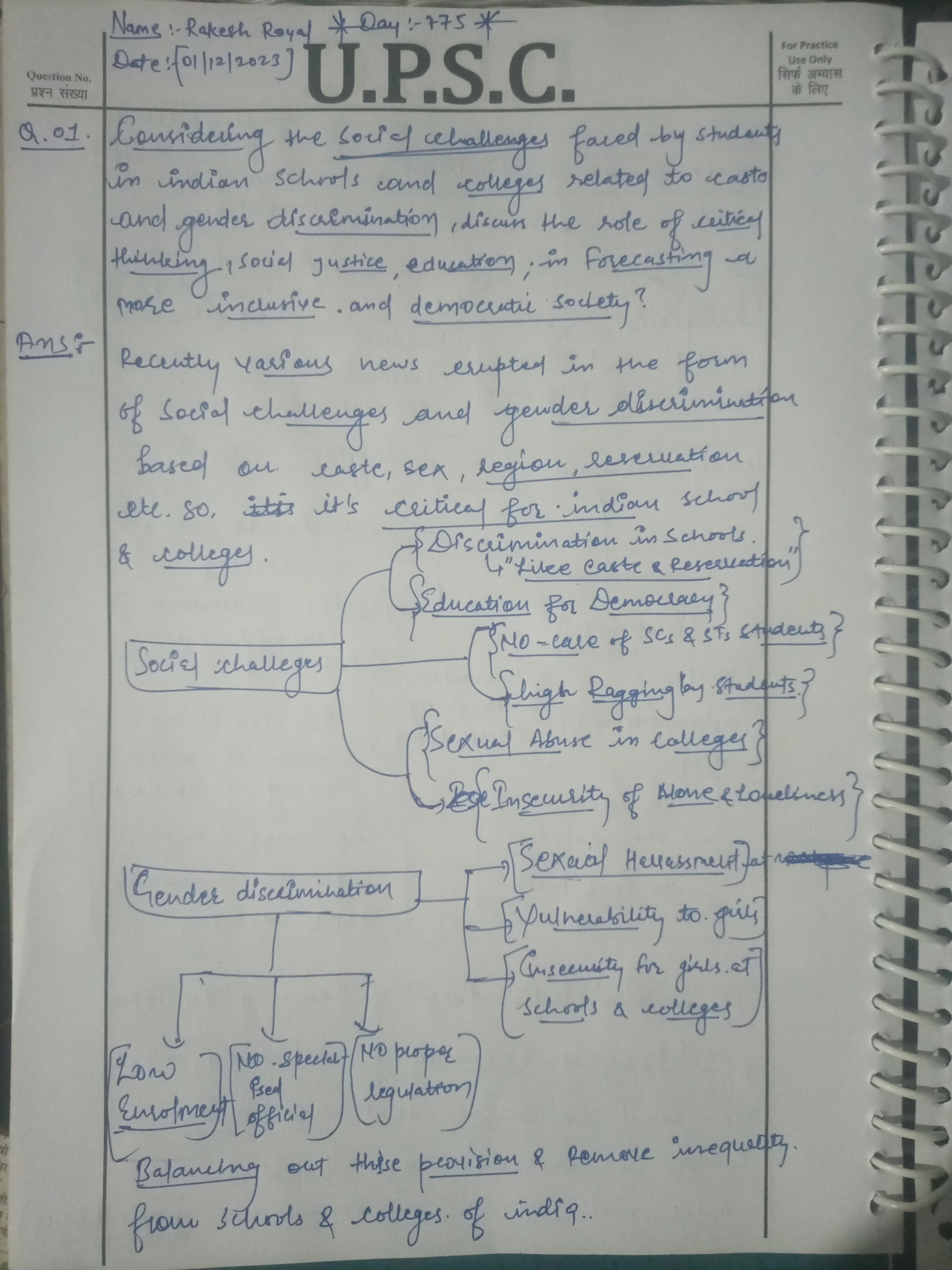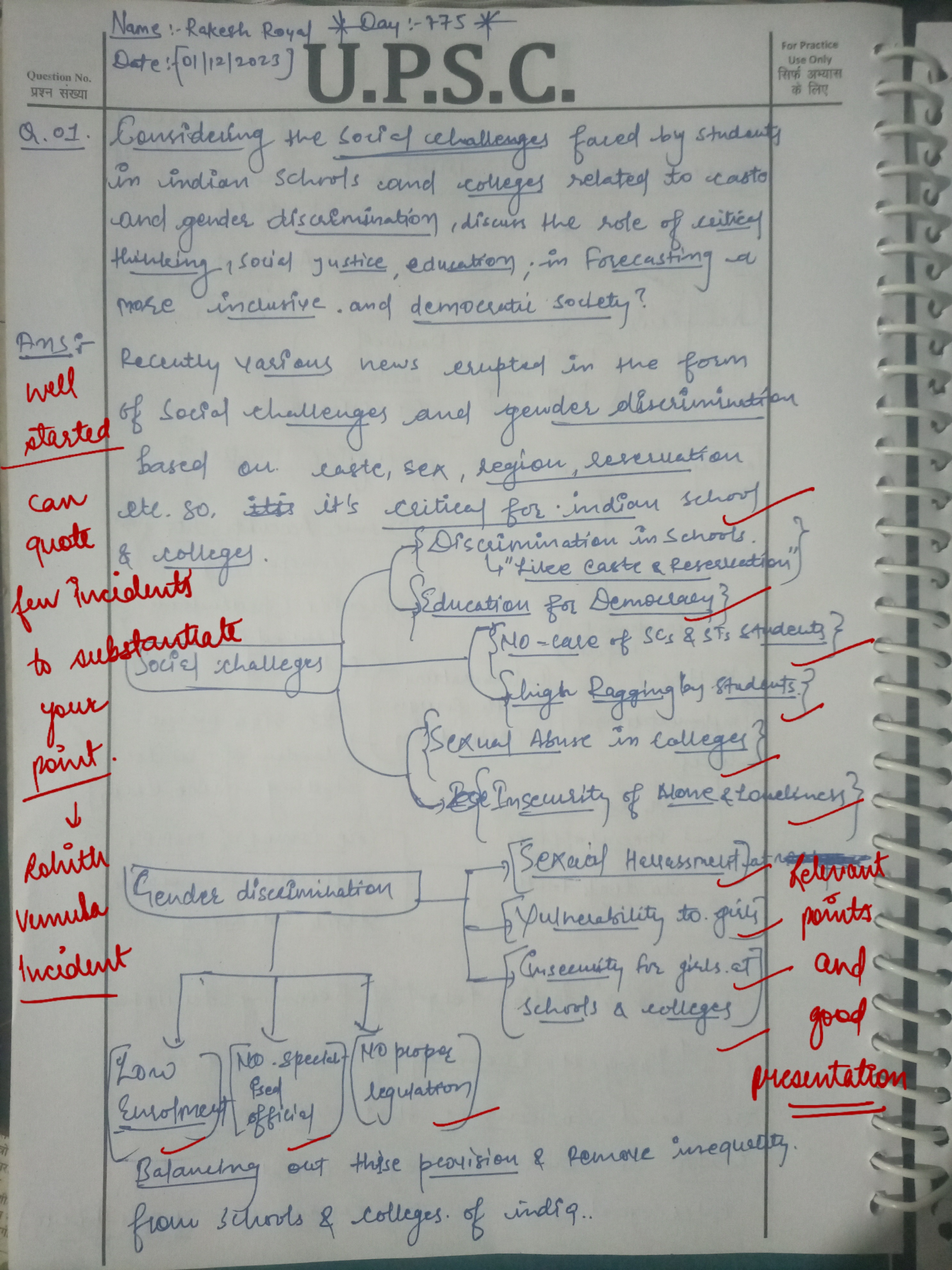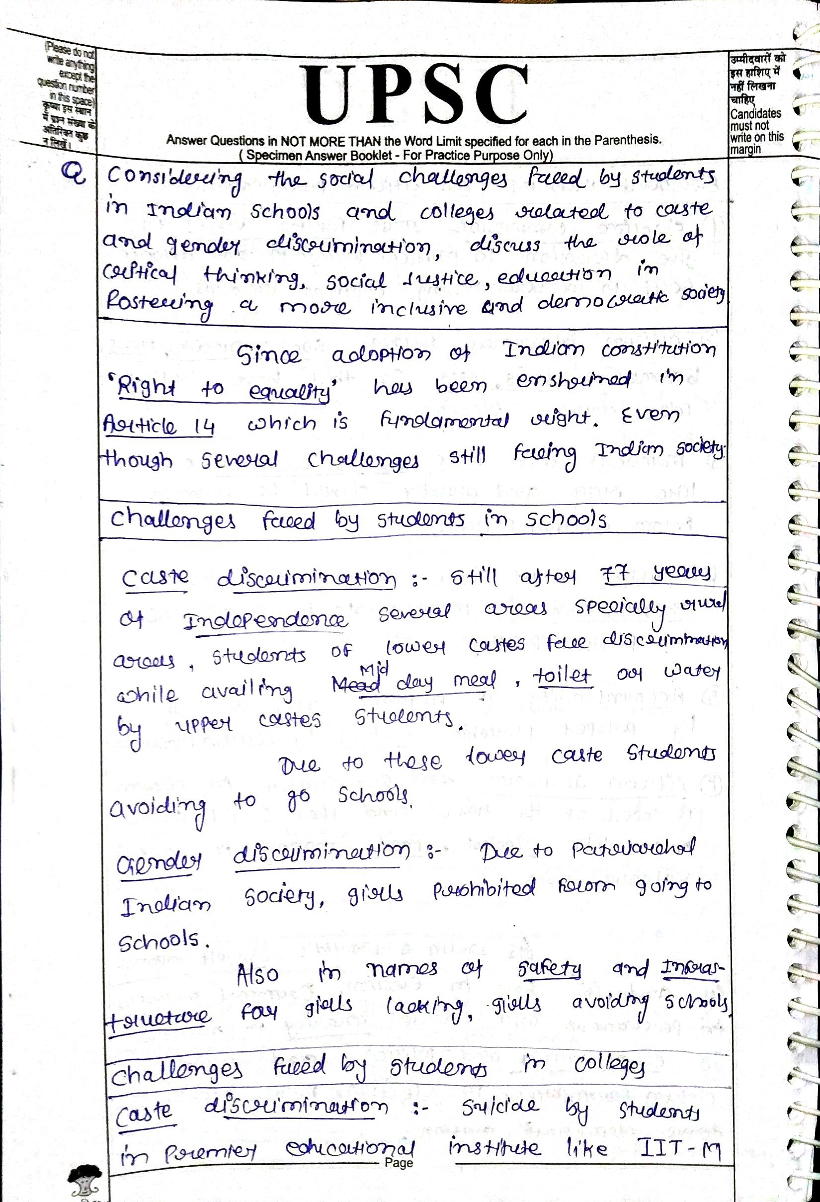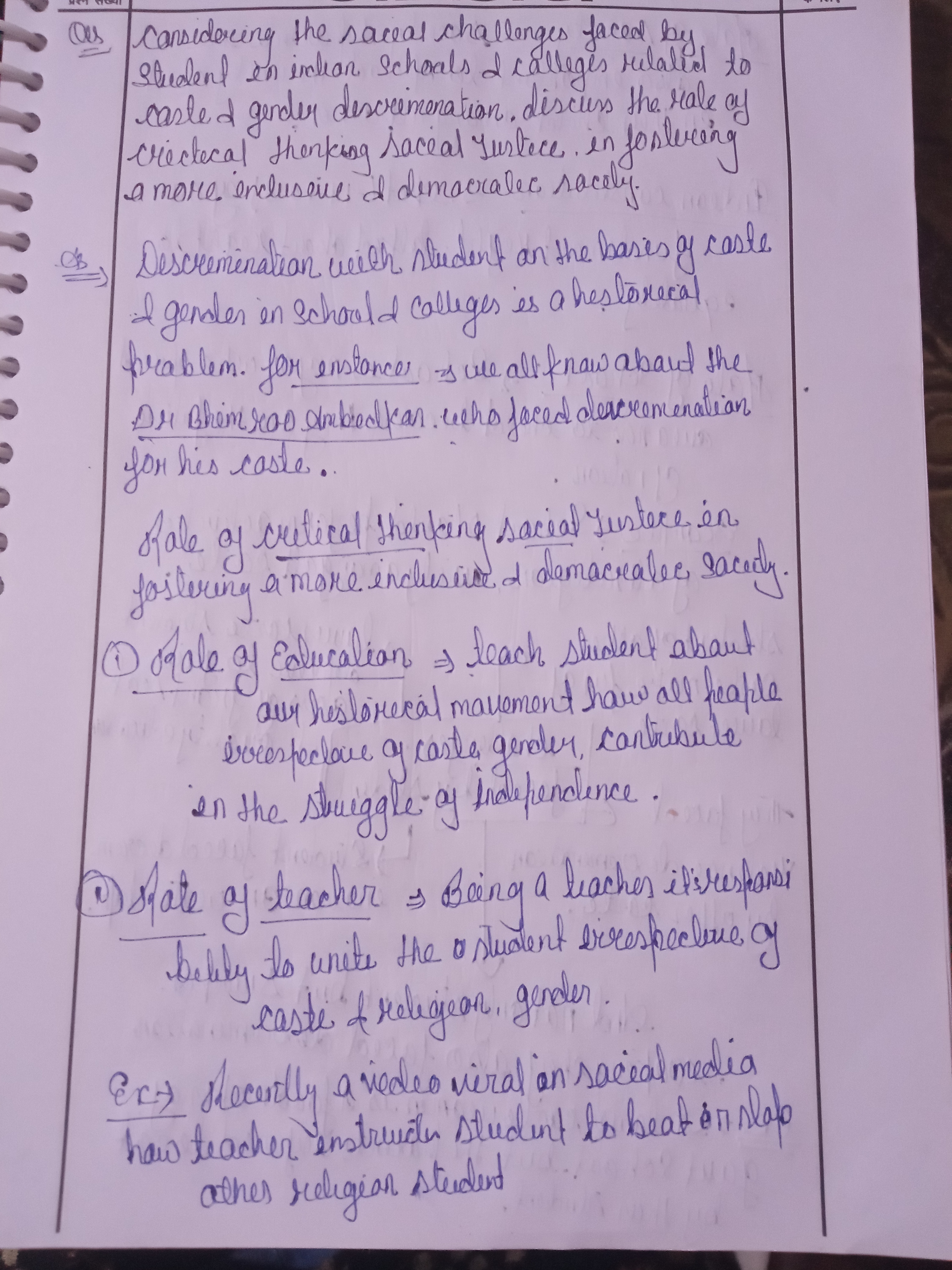 - Introduction: Begin by acknowledging the prevalence of caste and gender discrimination in Indian educational institutions and its reflection of wider social issues.
