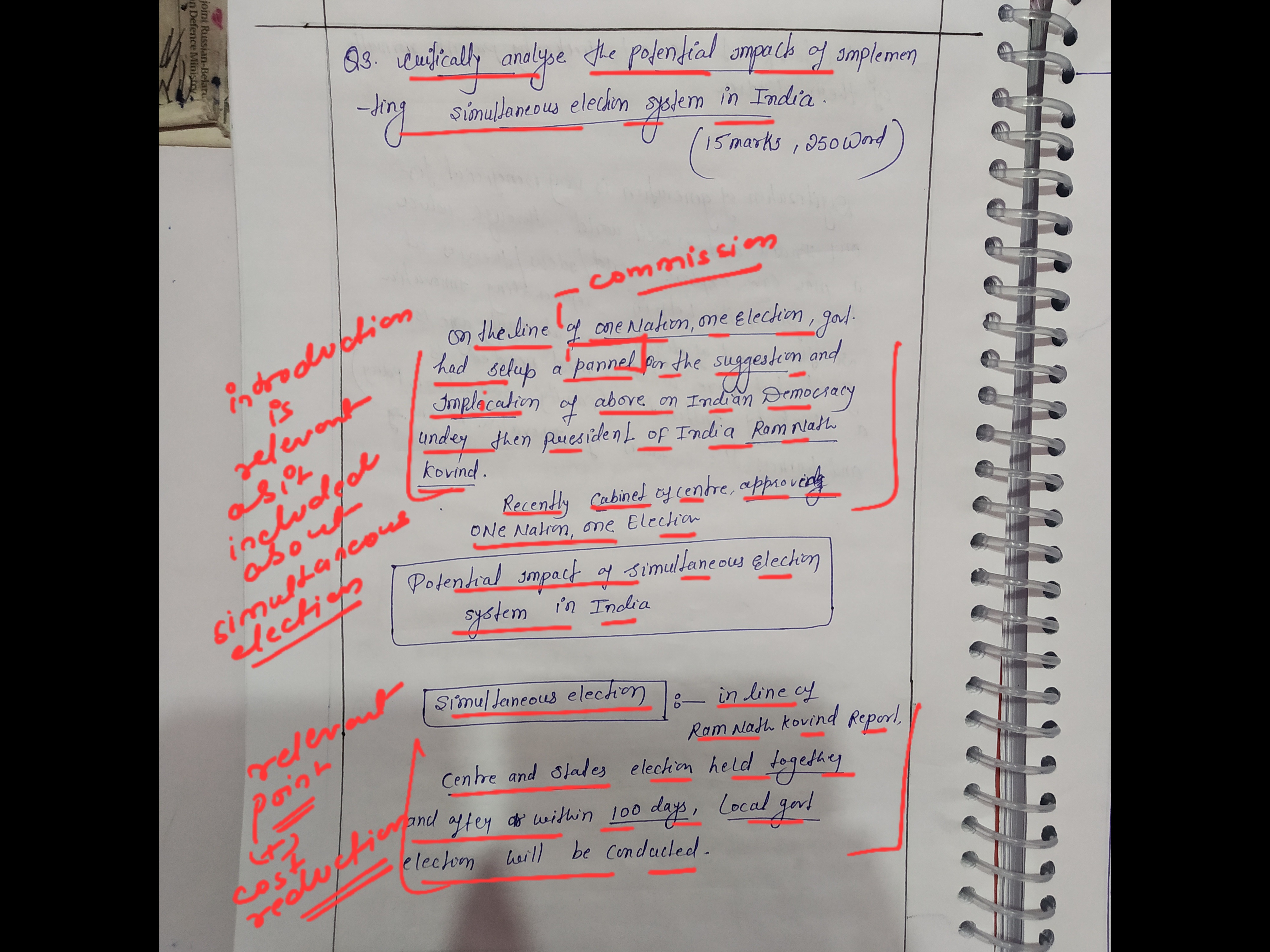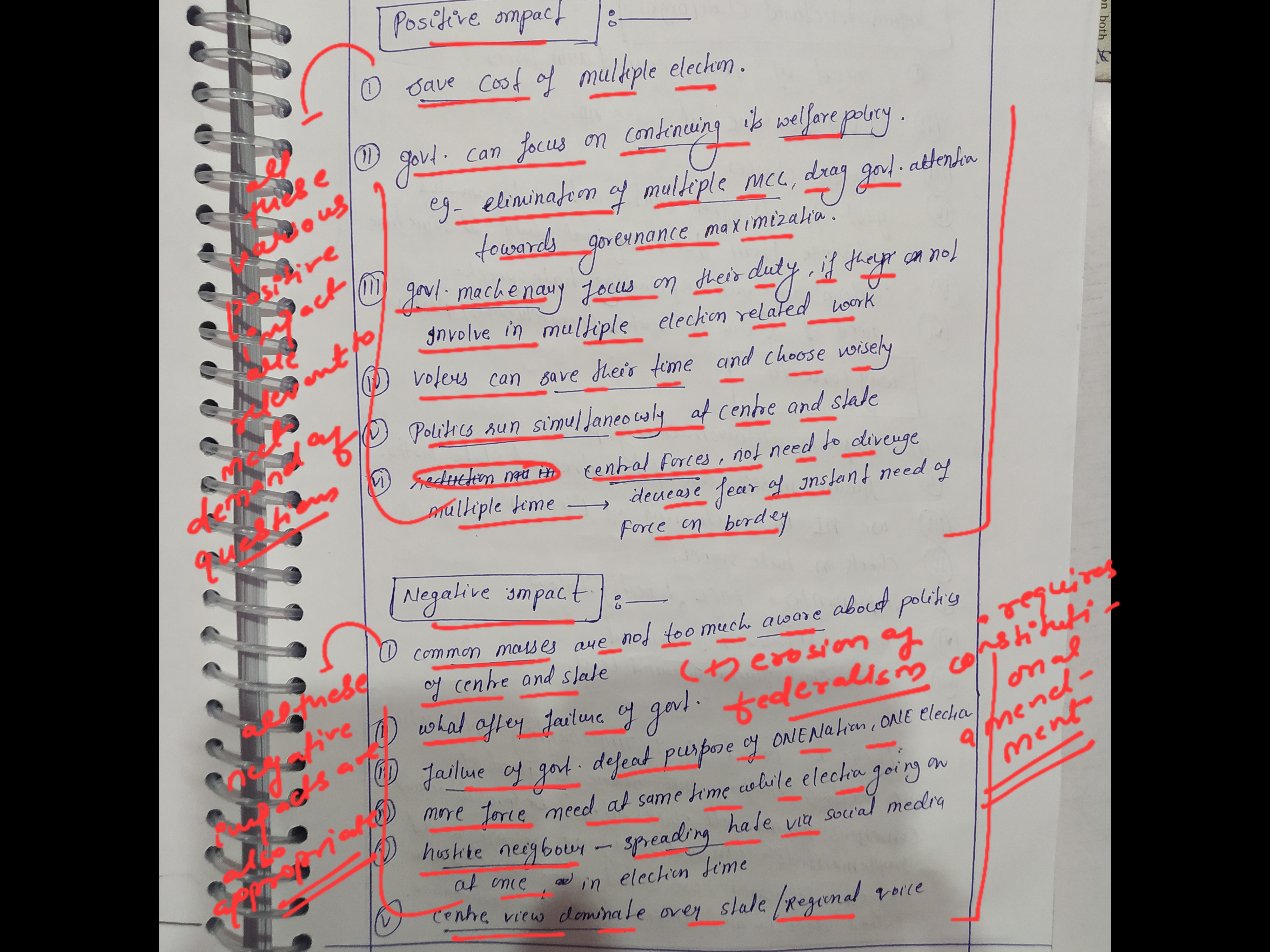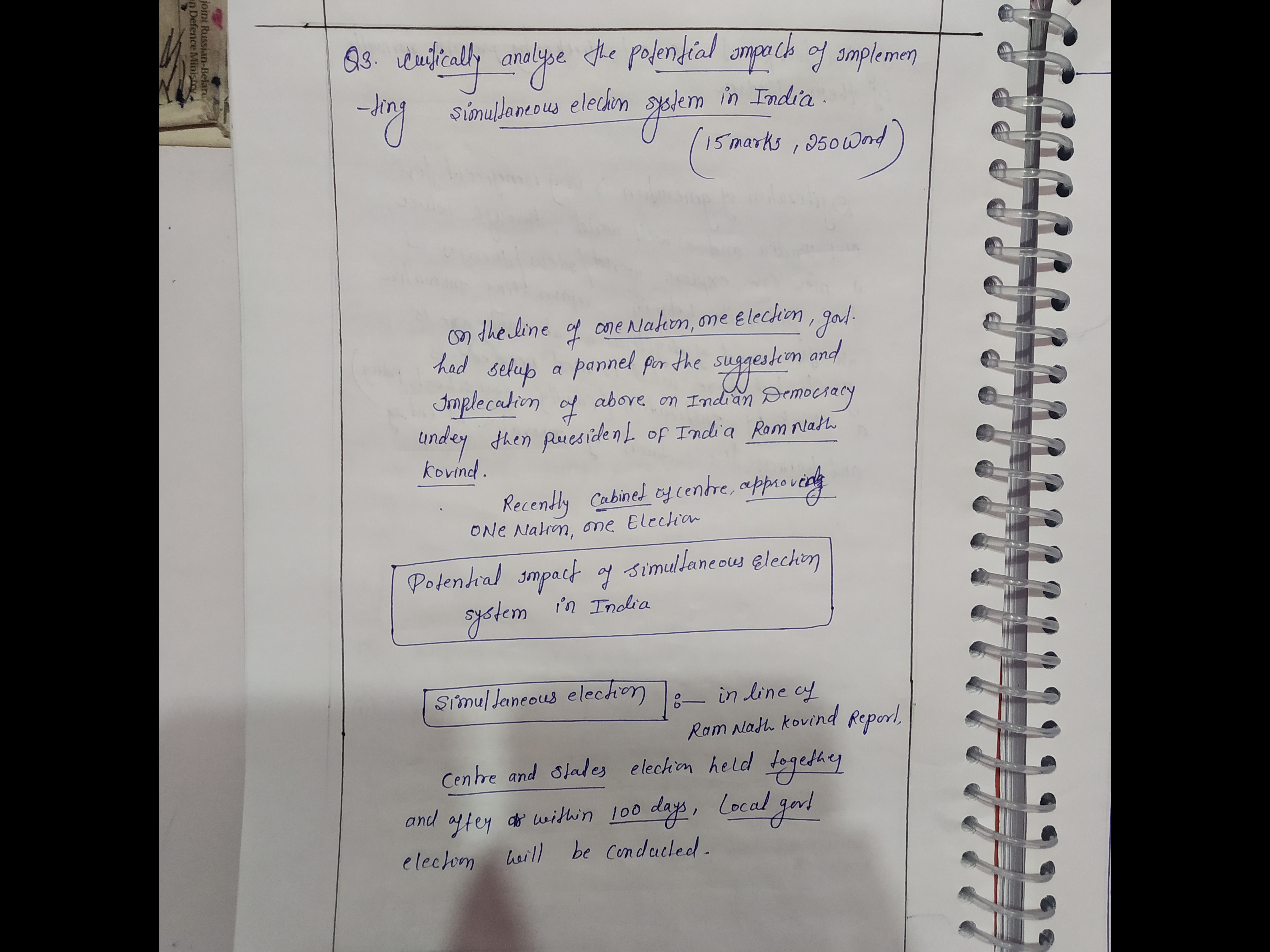 - Analyse the potential impacts of implementing a simultaneous election system in India.