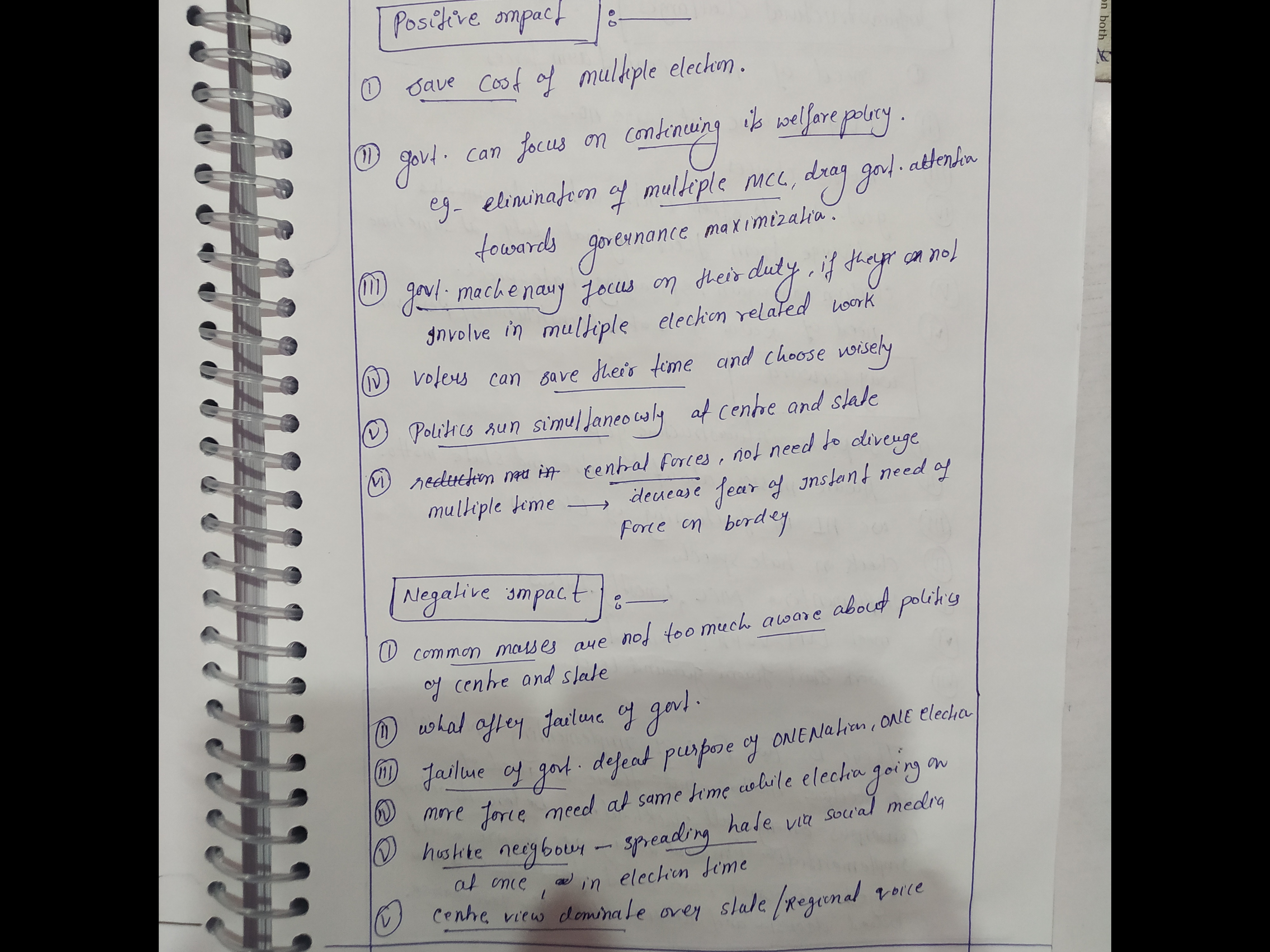 For example: The Election Commission estimates that holding general and state elections together could save billions in operational costs, freeing resources for development.