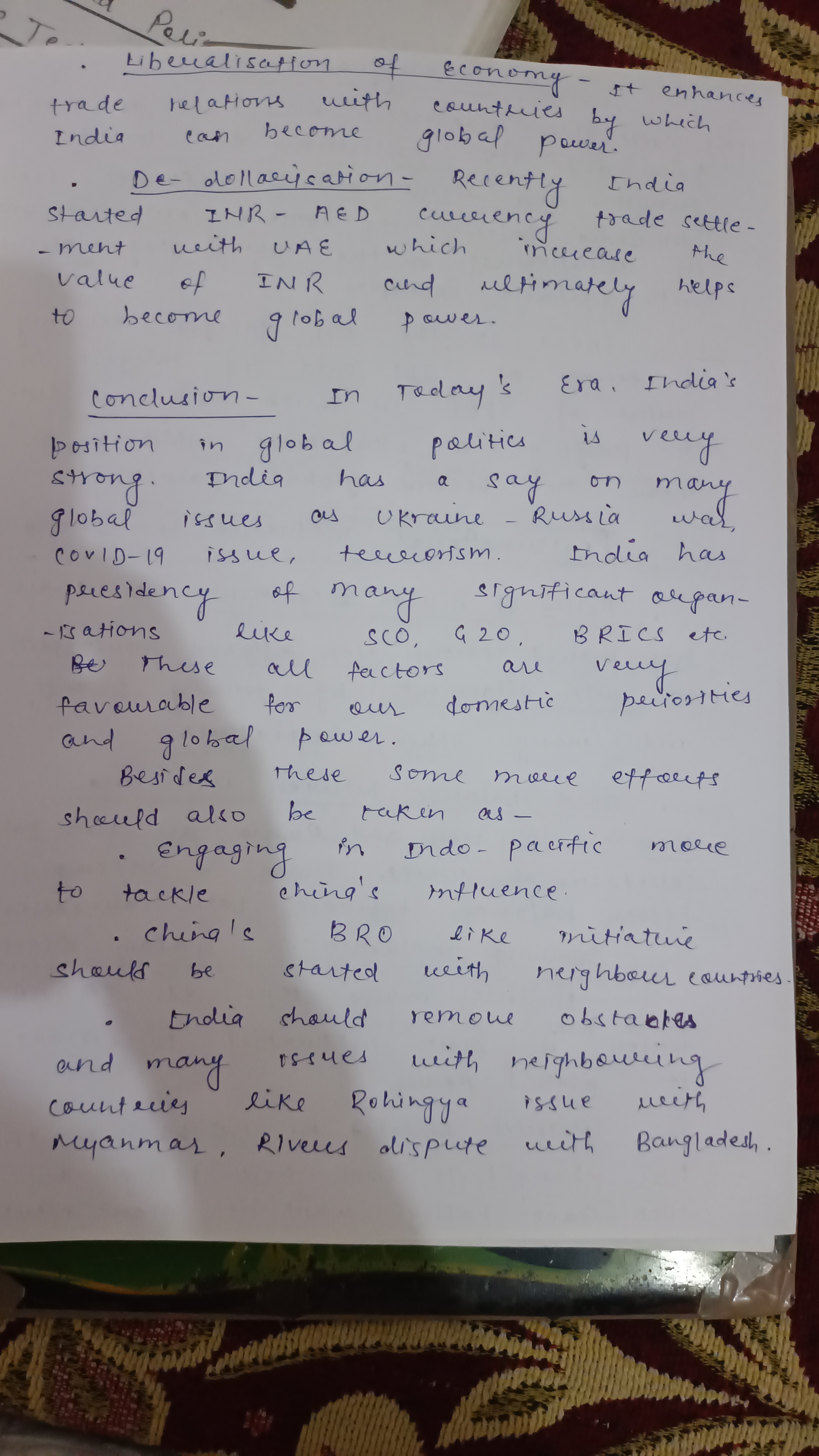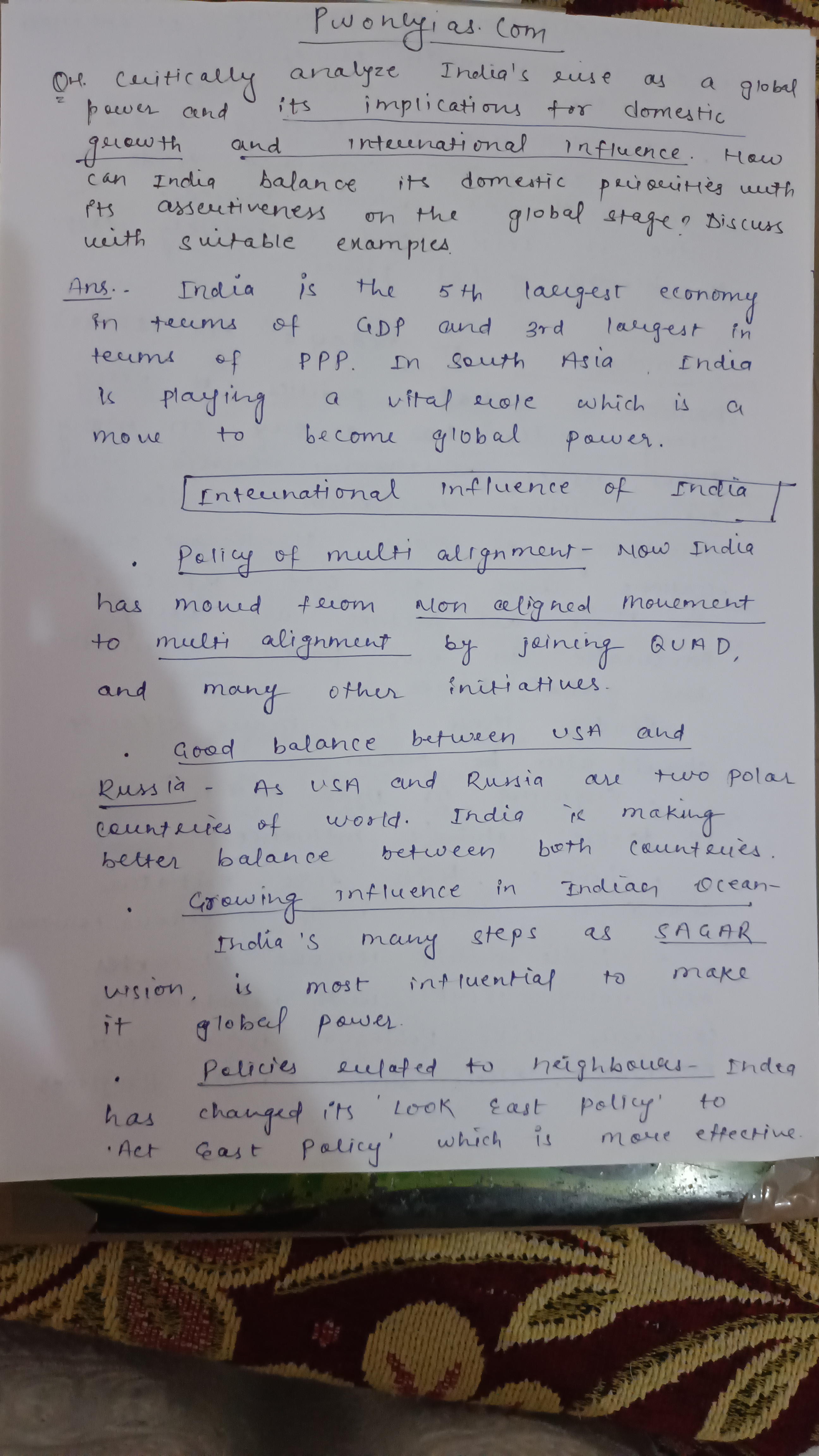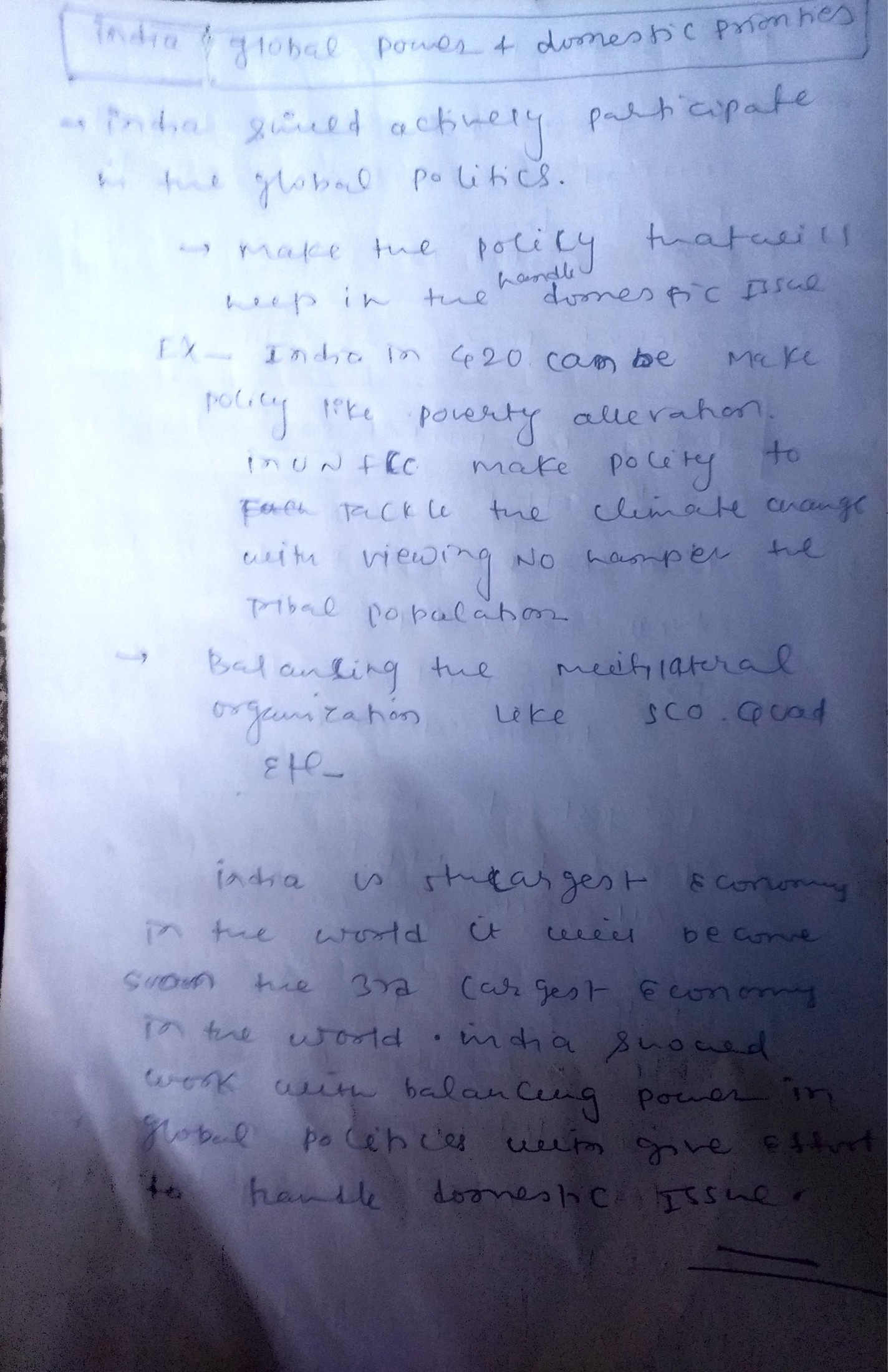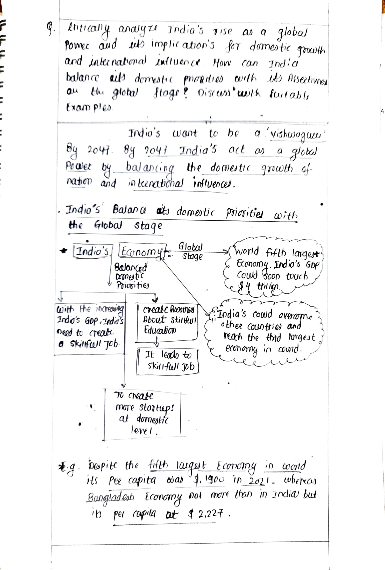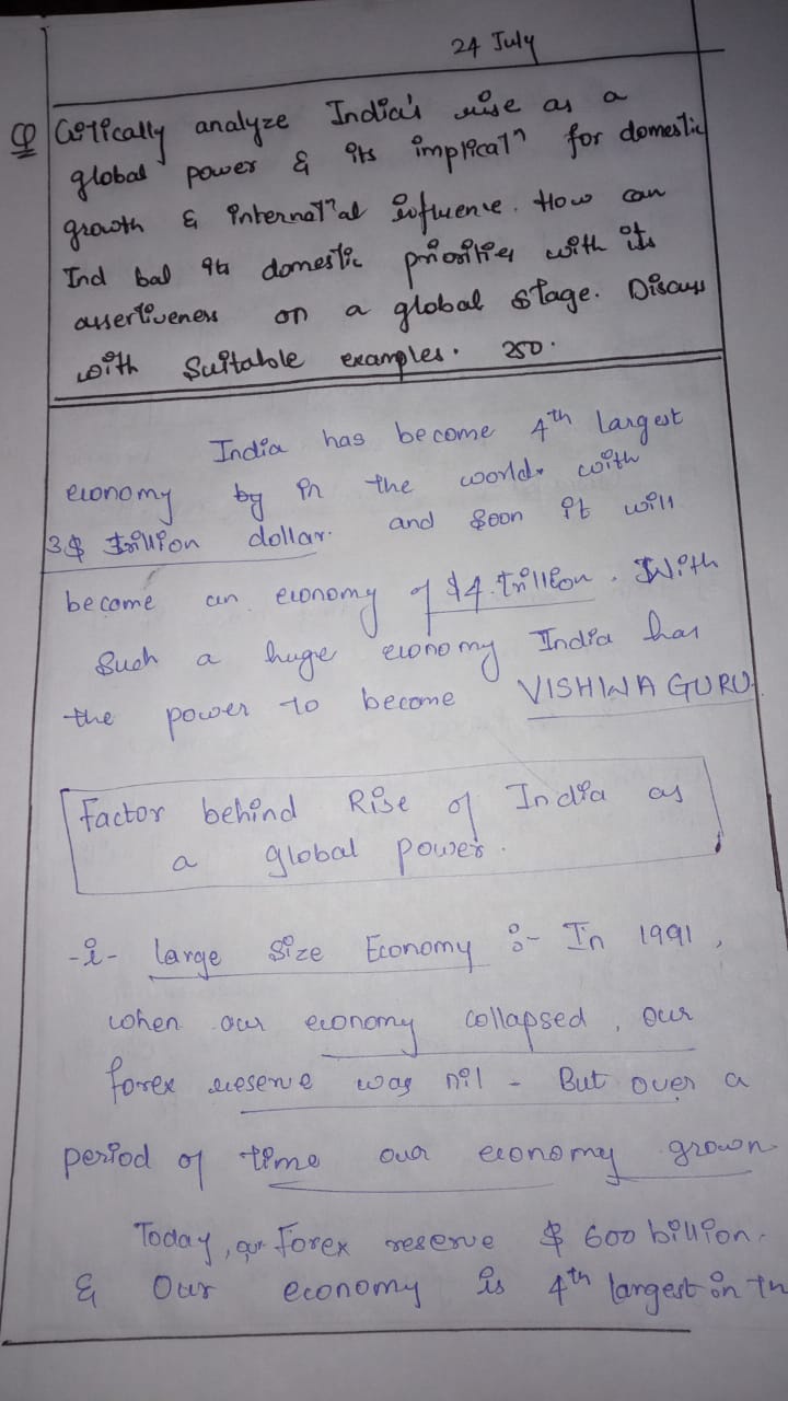 - Conclusion: Conclude, emphasizing the need for a balanced approach to ensure India’s rise as a global power complements its domestic growth.