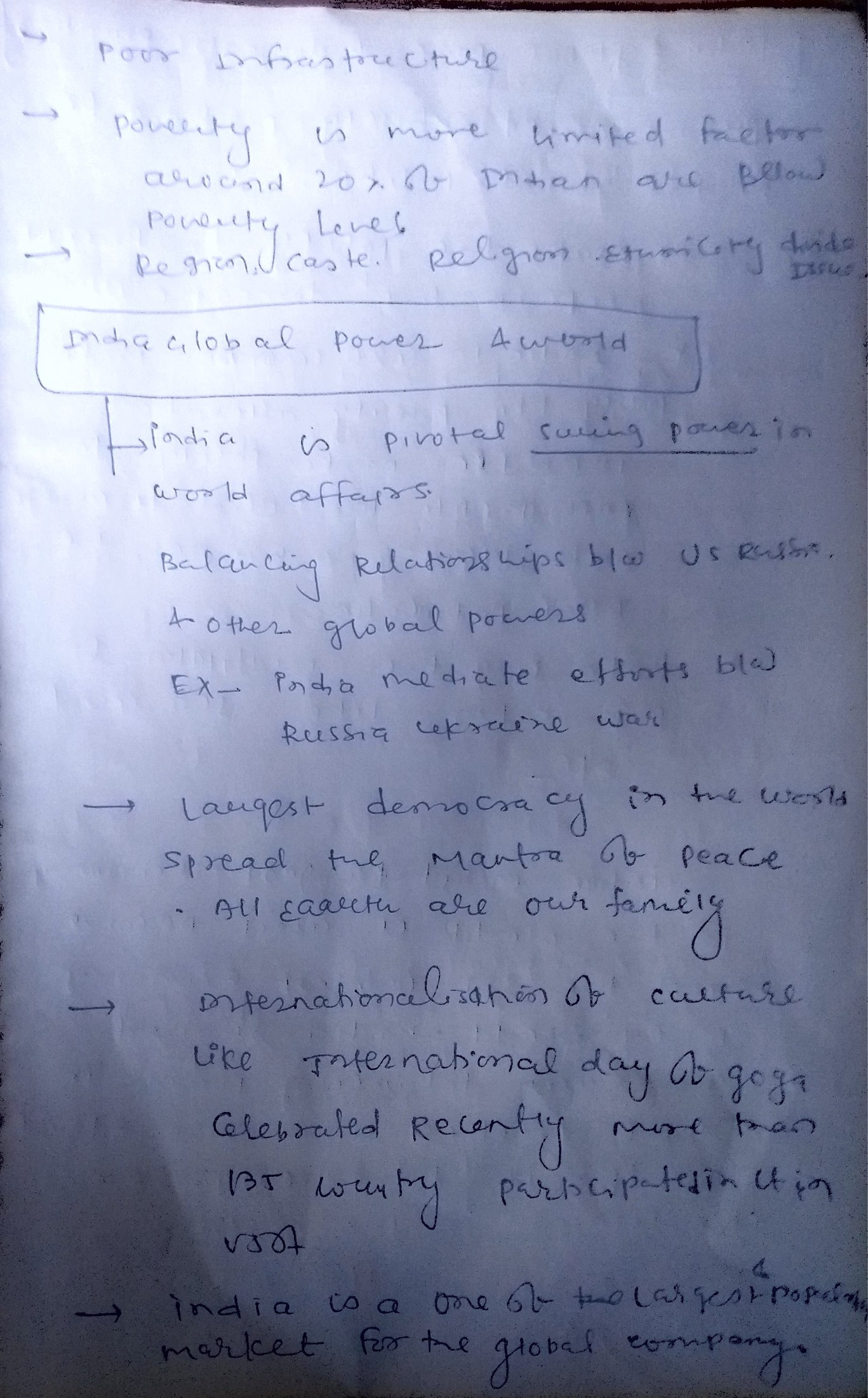 - Through various bilateral and multilateral engagements, India has fortified its global position.