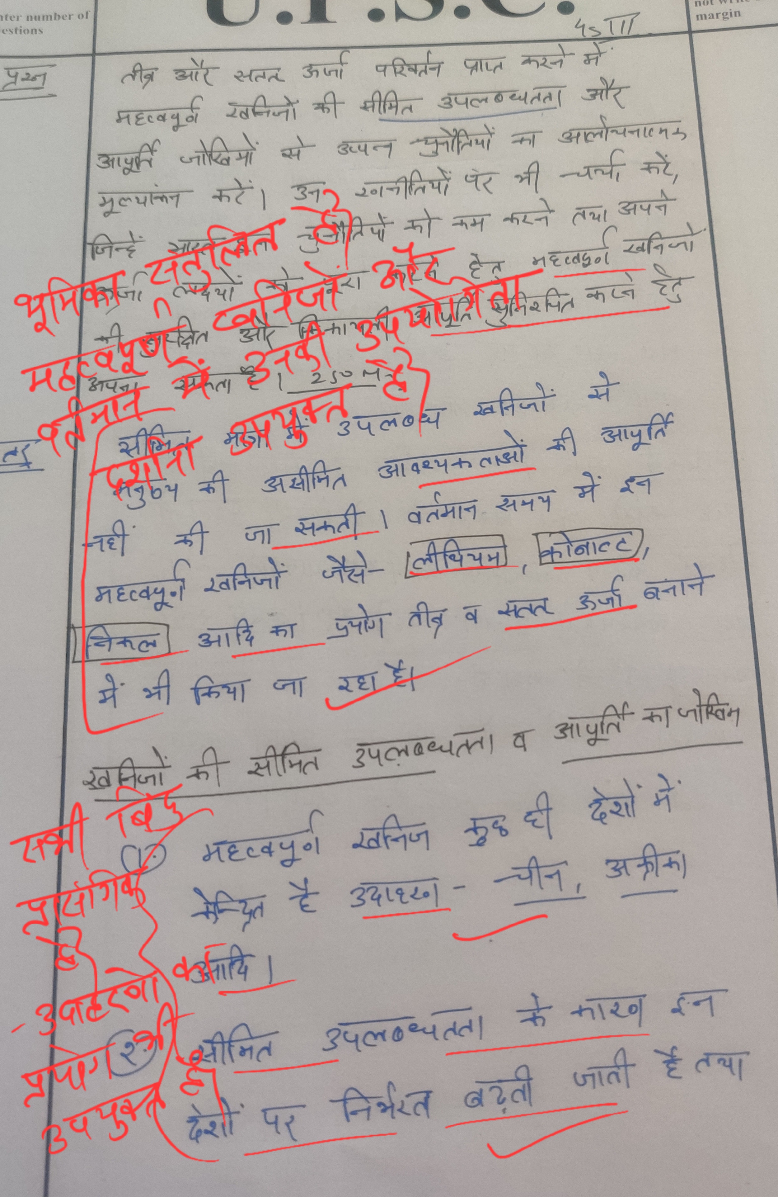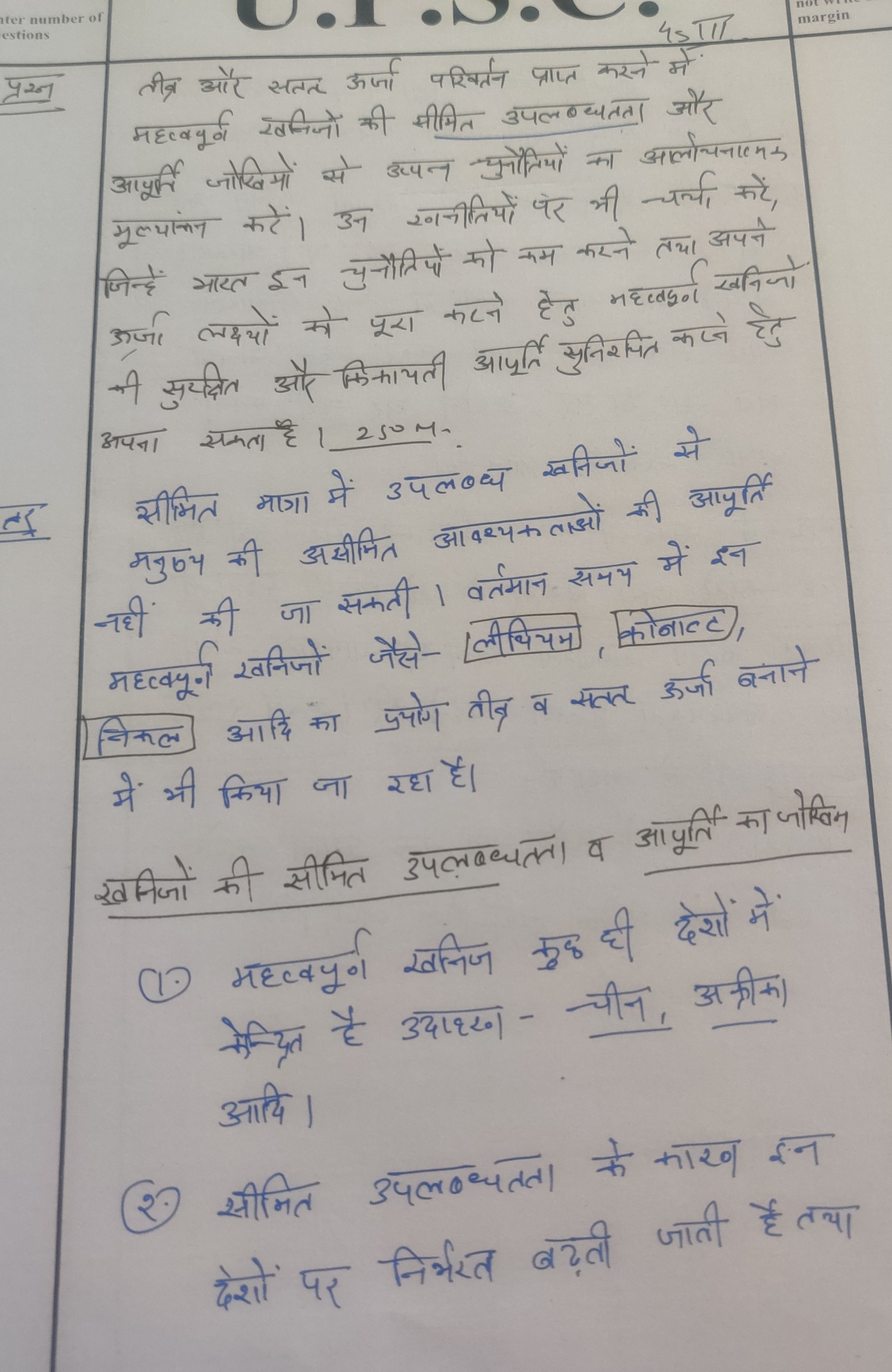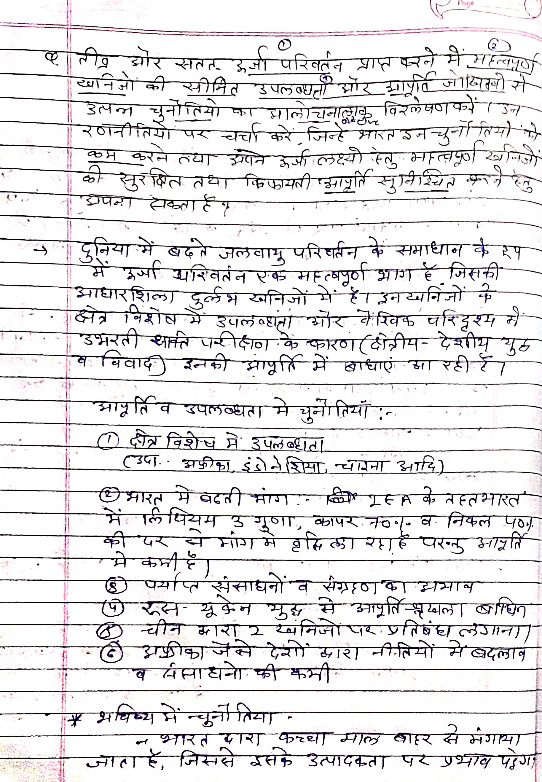- ऊर्जा परिवर्तन को प्राप्त करने में महत्वपूर्ण खनिजों की सीमित उपलब्धता और आपूर्ति जोखिमों से उत्पन्न प्रमुख चुनौतियों पर चर्चा करें।