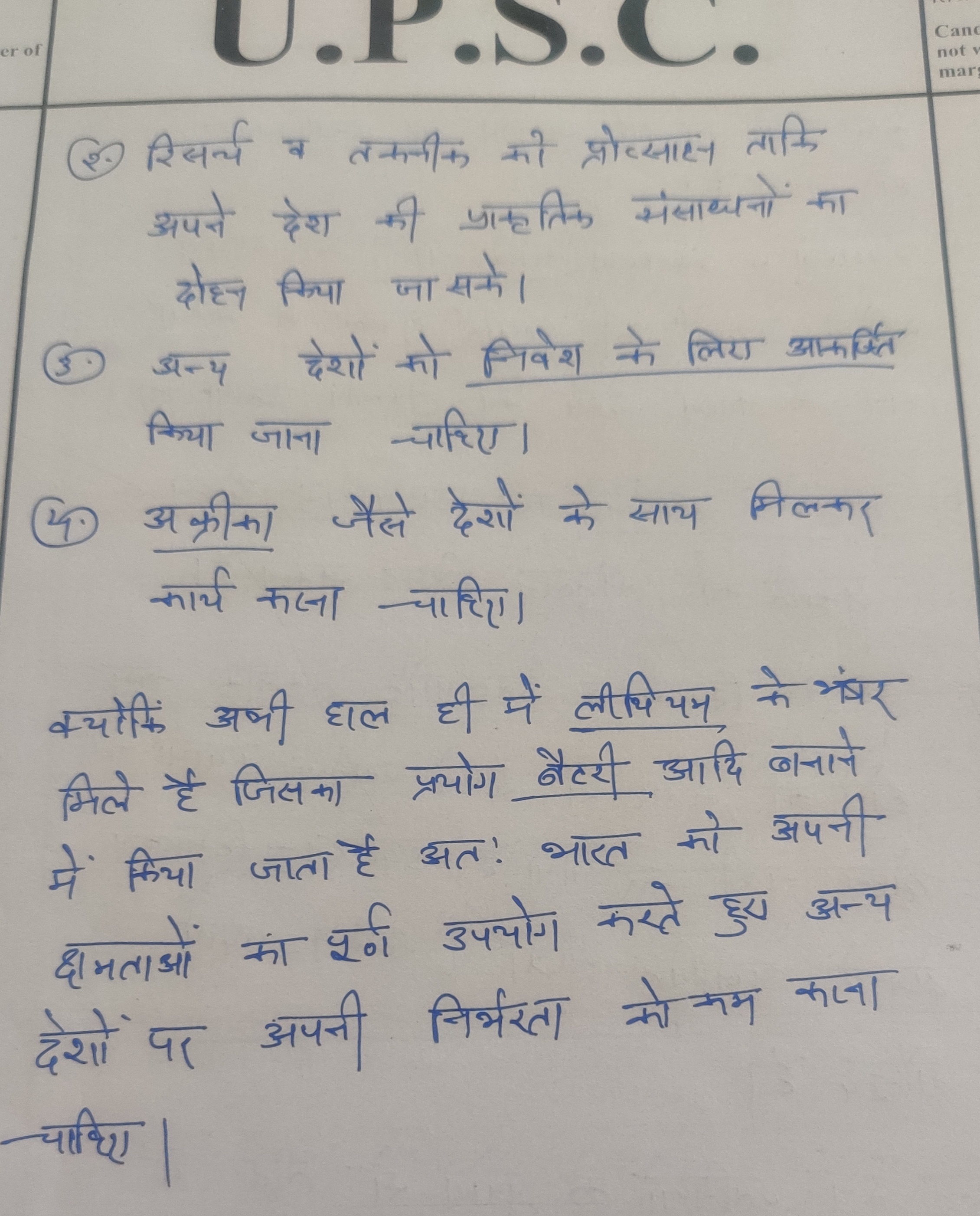 - निष्कर्ष: भारत के ऊर्जा परिवर्तन लक्ष्यों के लिए महत्वपूर्ण खनिजों की स्थायी और किफायती आपूर्ति हासिल करने के महत्व पर जोर देते हुए निष्कर्ष निकालें।