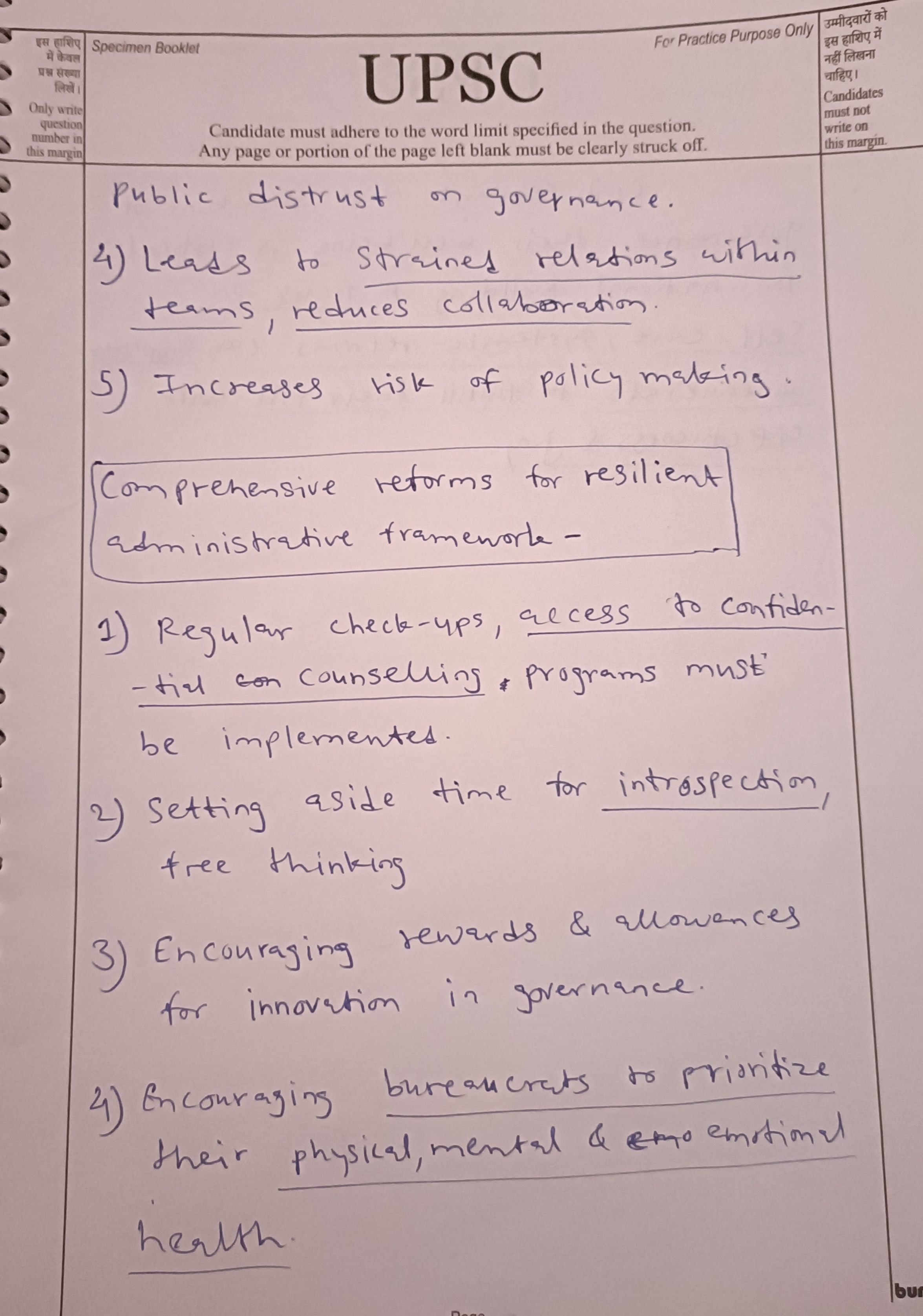 For example: Karnataka’s pilot stress-management workshops for bureaucrats improved officer morale and efficiency in 2023.
