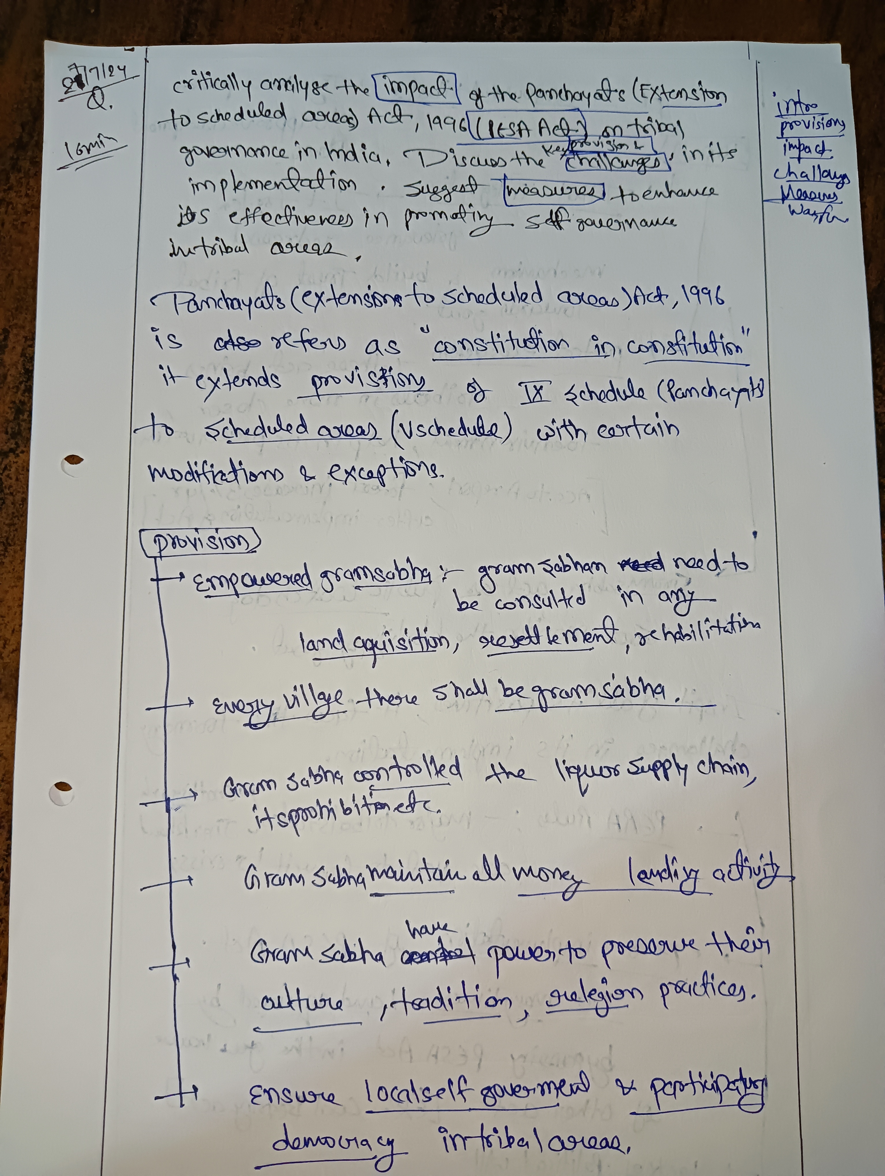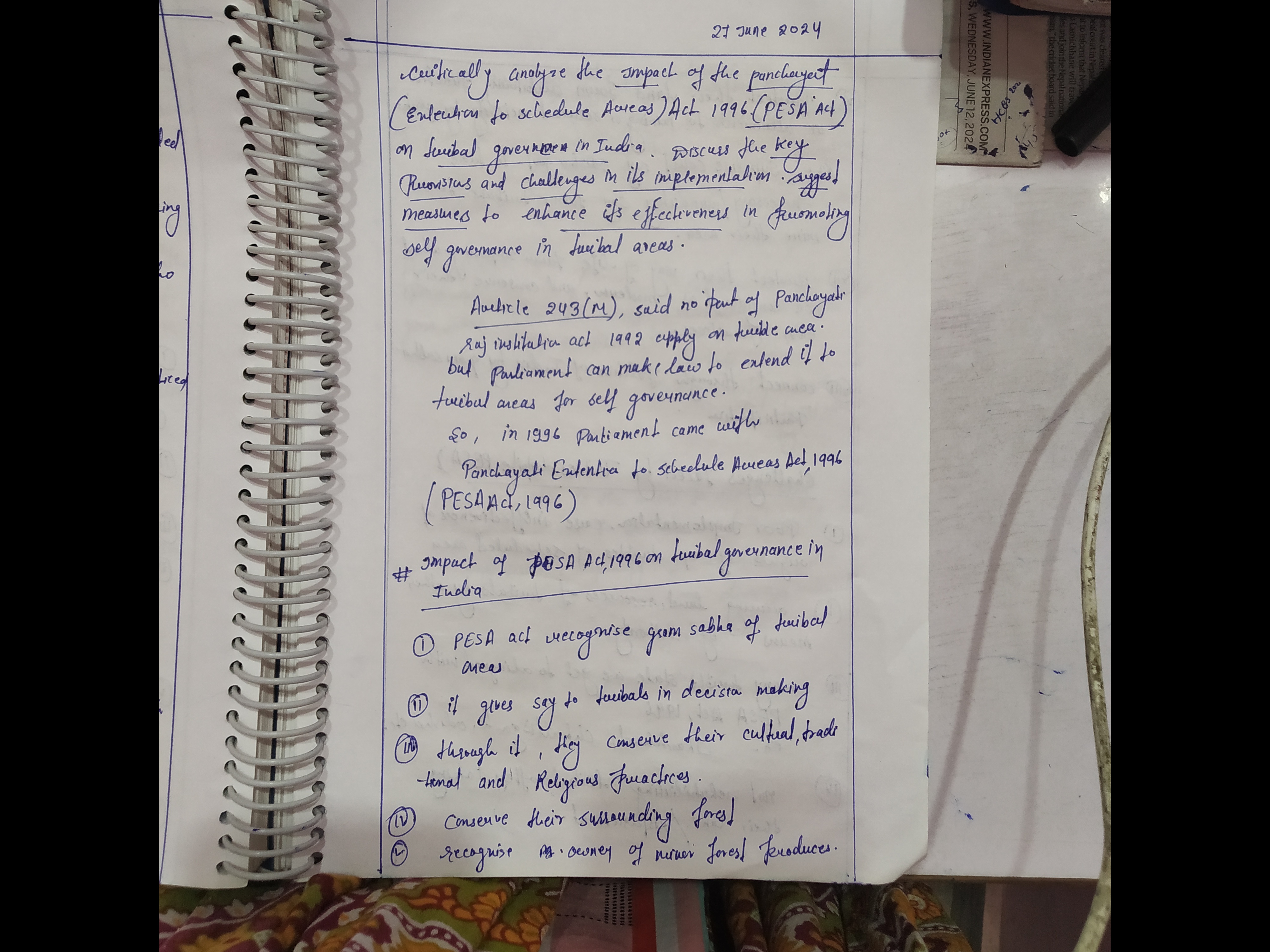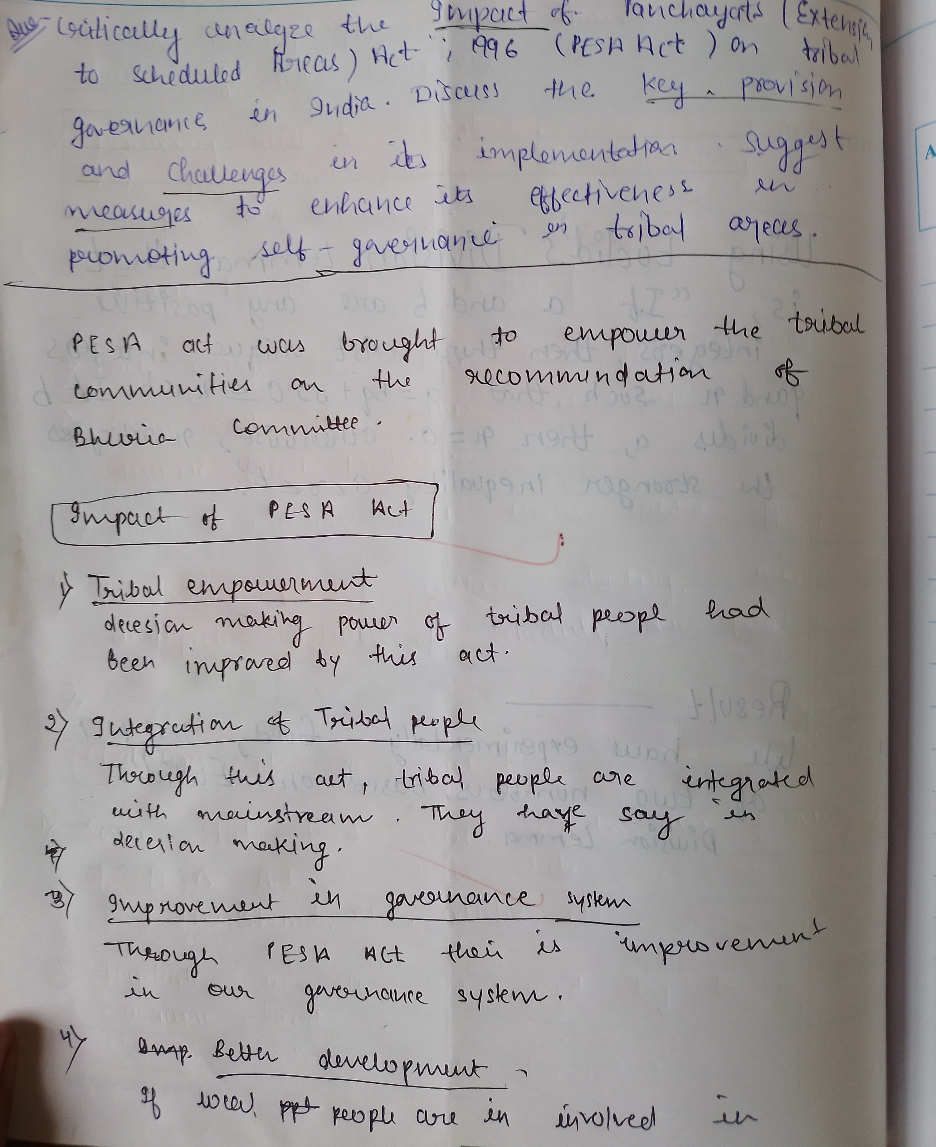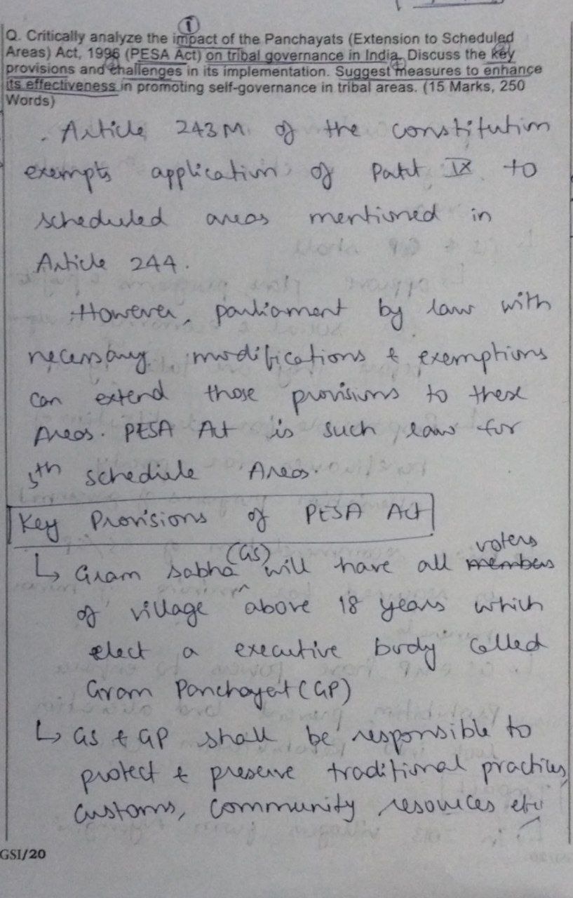 - Critically analyse the impact of PESA on Tribal Governance.