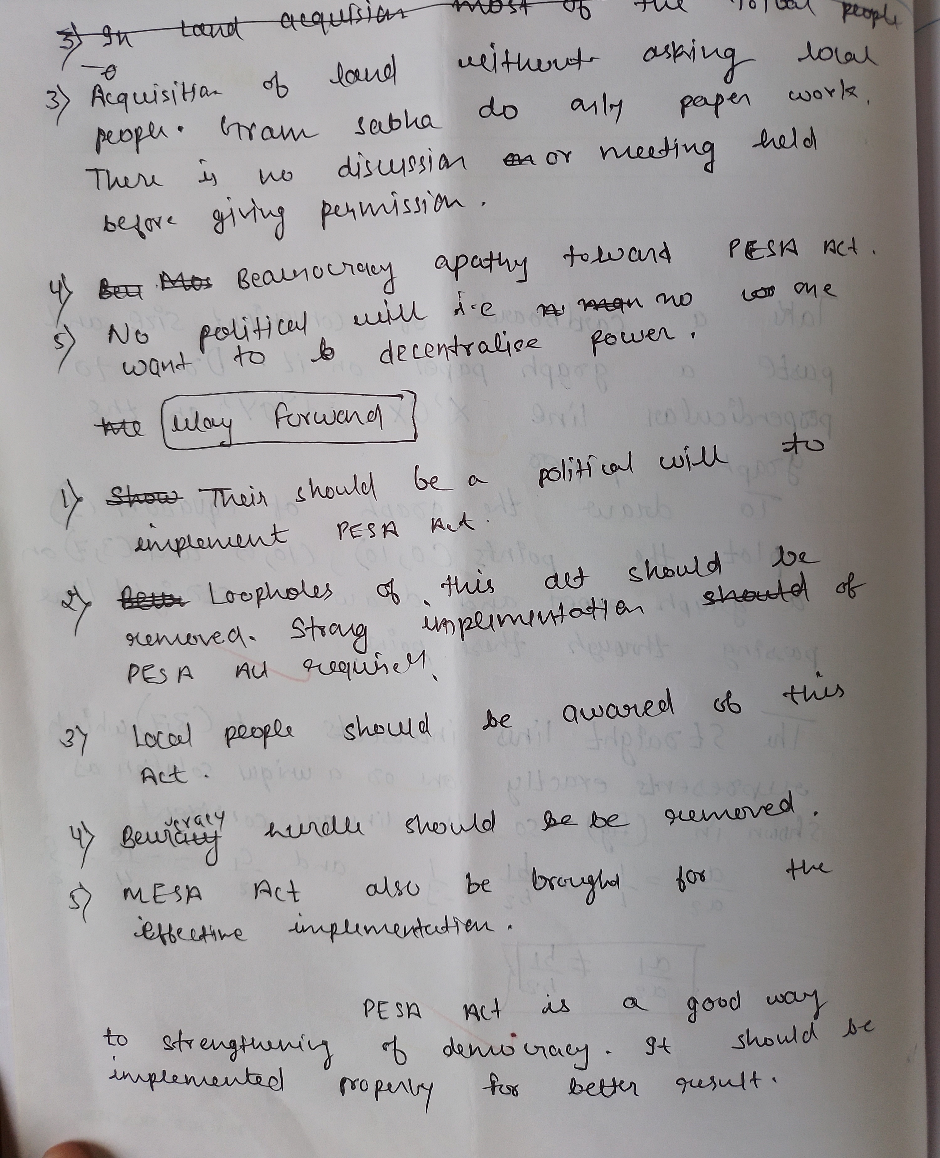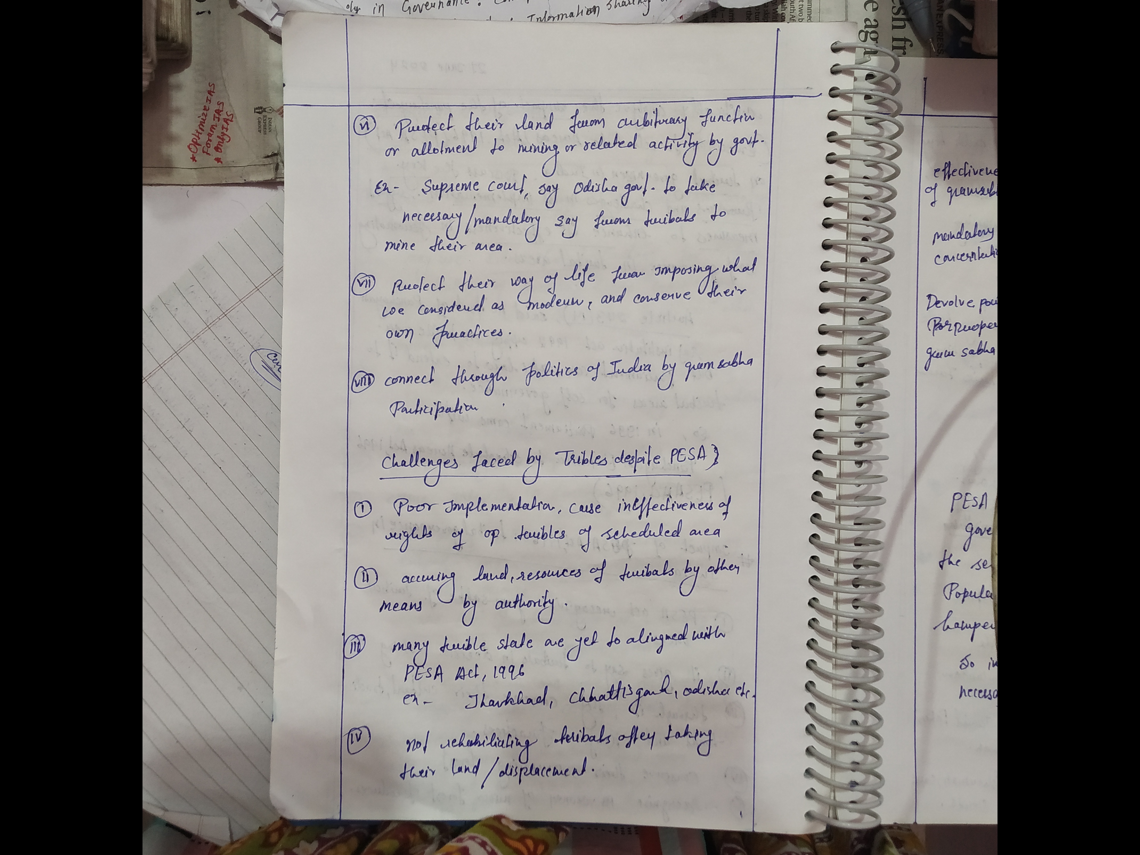 For instance: Many Gram Sabhas are unaware of their rights and powers under PESA, leading to underutilization of the Act’s potential.